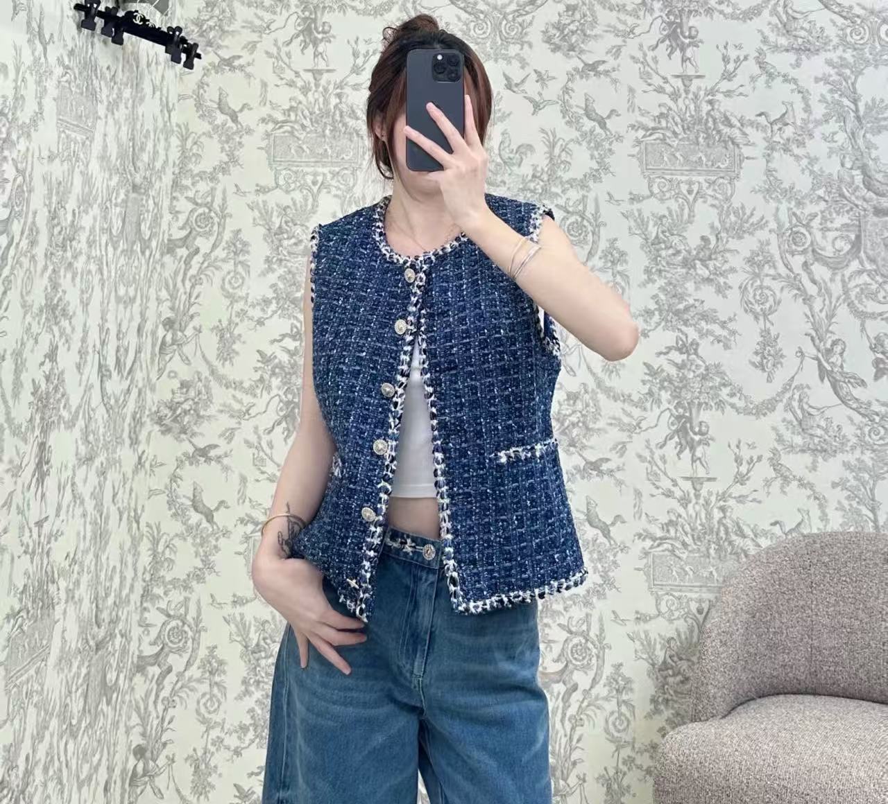 時髦百搭:這件馬甲的剪裁俐落有型,充滿了經典小香風的優雅。無論是內搭襯衫、高領毛衣,或是搭配西裝褲、牛仔褲,都能讓你瞬間提升造型的高級感和時尚度。