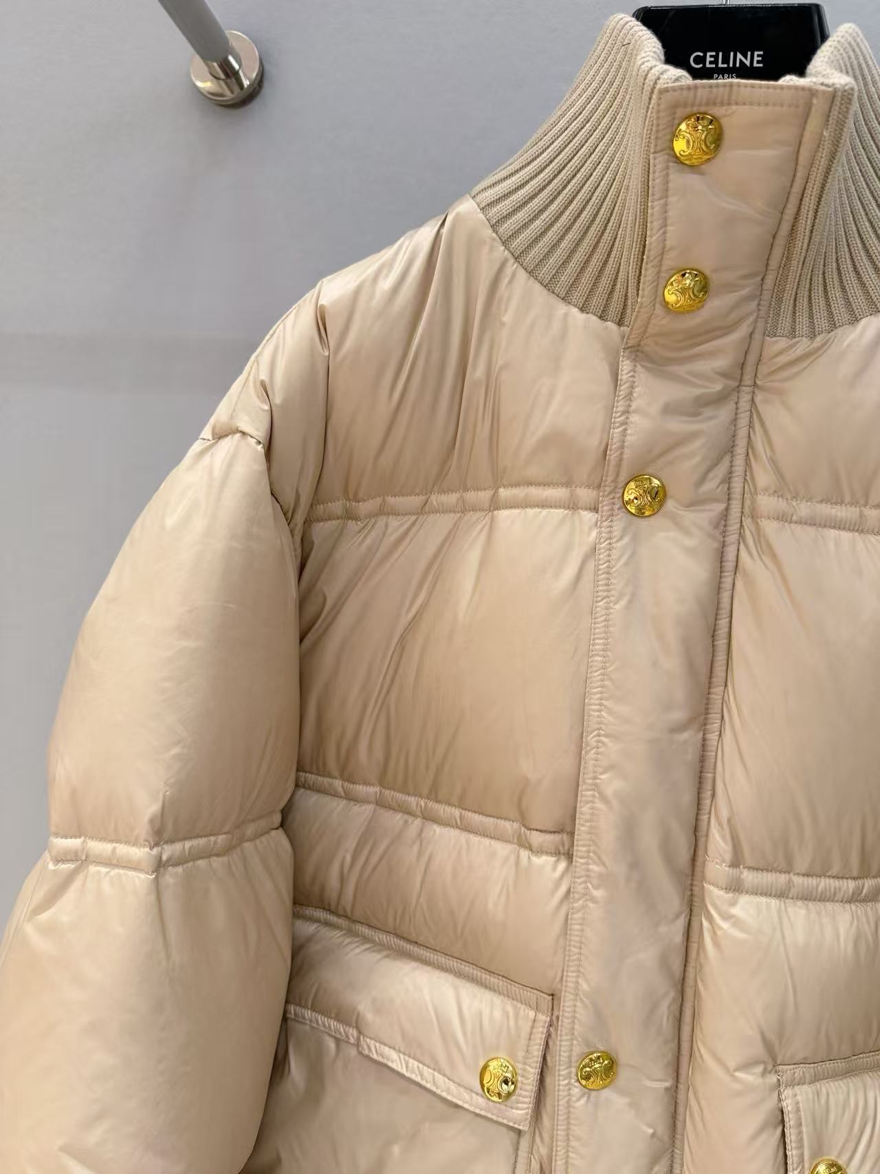 2025早秋 Celine 撞色針織領奢侈品羽绒外套