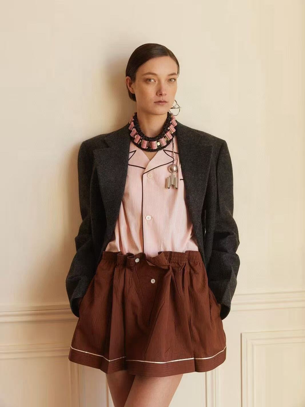 不規則的扭褶剪裁,帶來隨性卻獨特的造型感,讓穿搭不再拘泥於完美比例,反而更顯灑脫。這樣的設計也呼應了「解放身材焦慮」的理念,讓女生可以自在展現自我。在這個時尚界,許多人追逐奢侈品的潮流,但真正的風格往往來自於對設計的理解與詮釋。