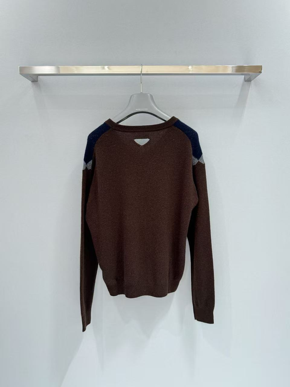 2025早秋 Prada 撞色菱格羊絨針織衫 精品 時尚