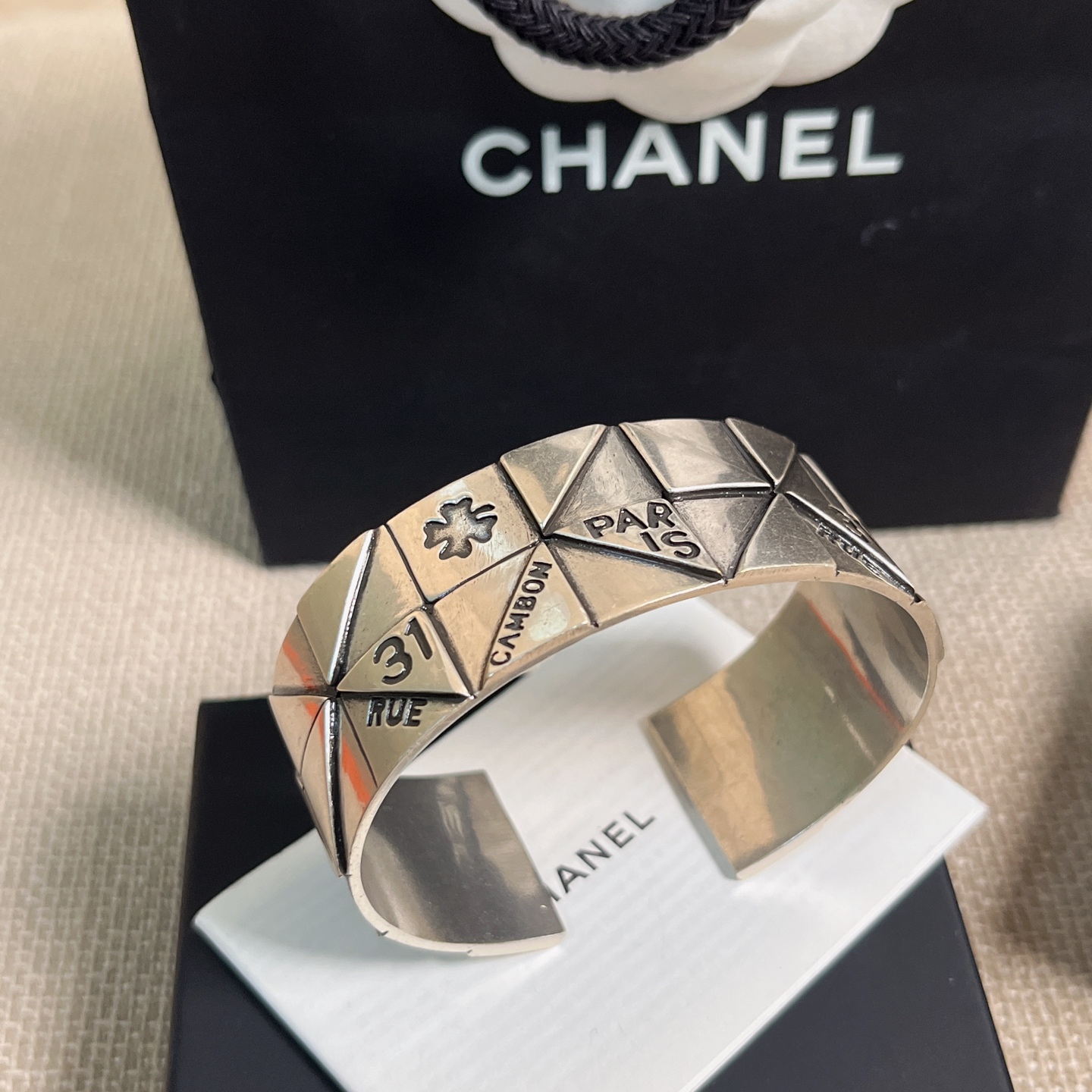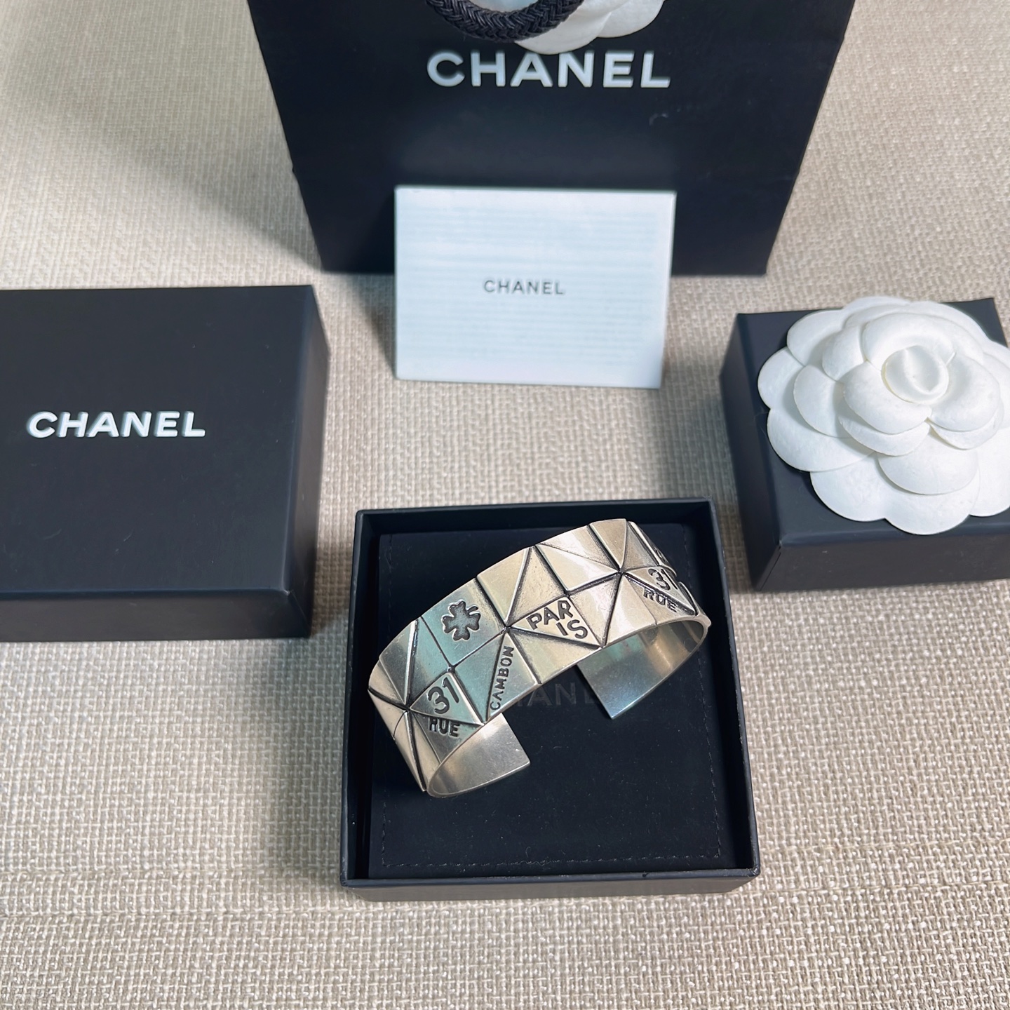 2025秋冬新品 Chanel 做舊方格開口寬手鐲 奢侈品 精品