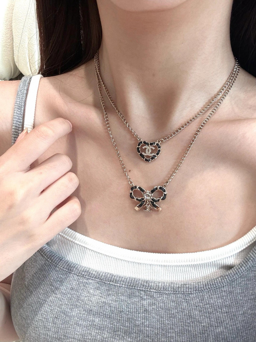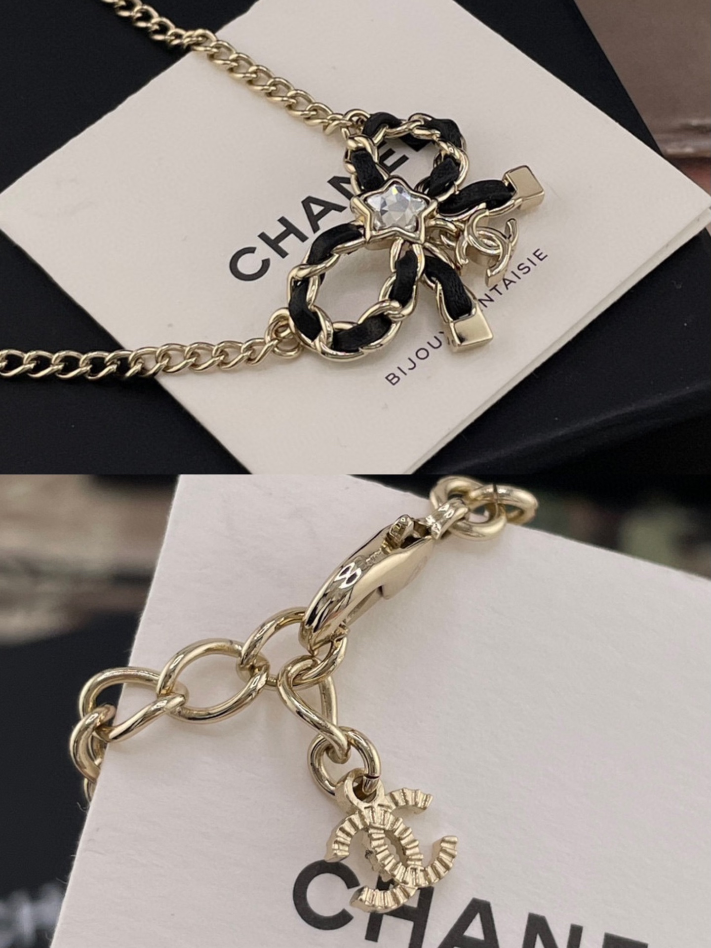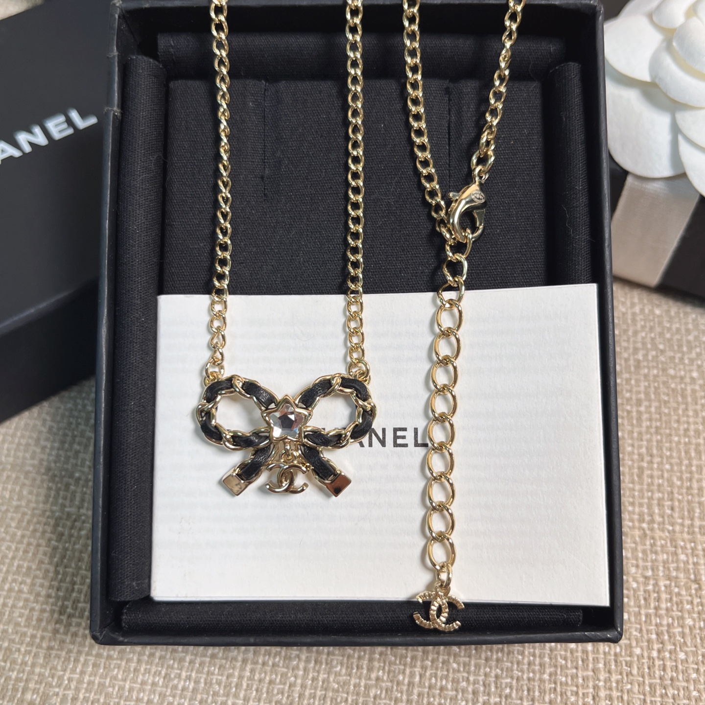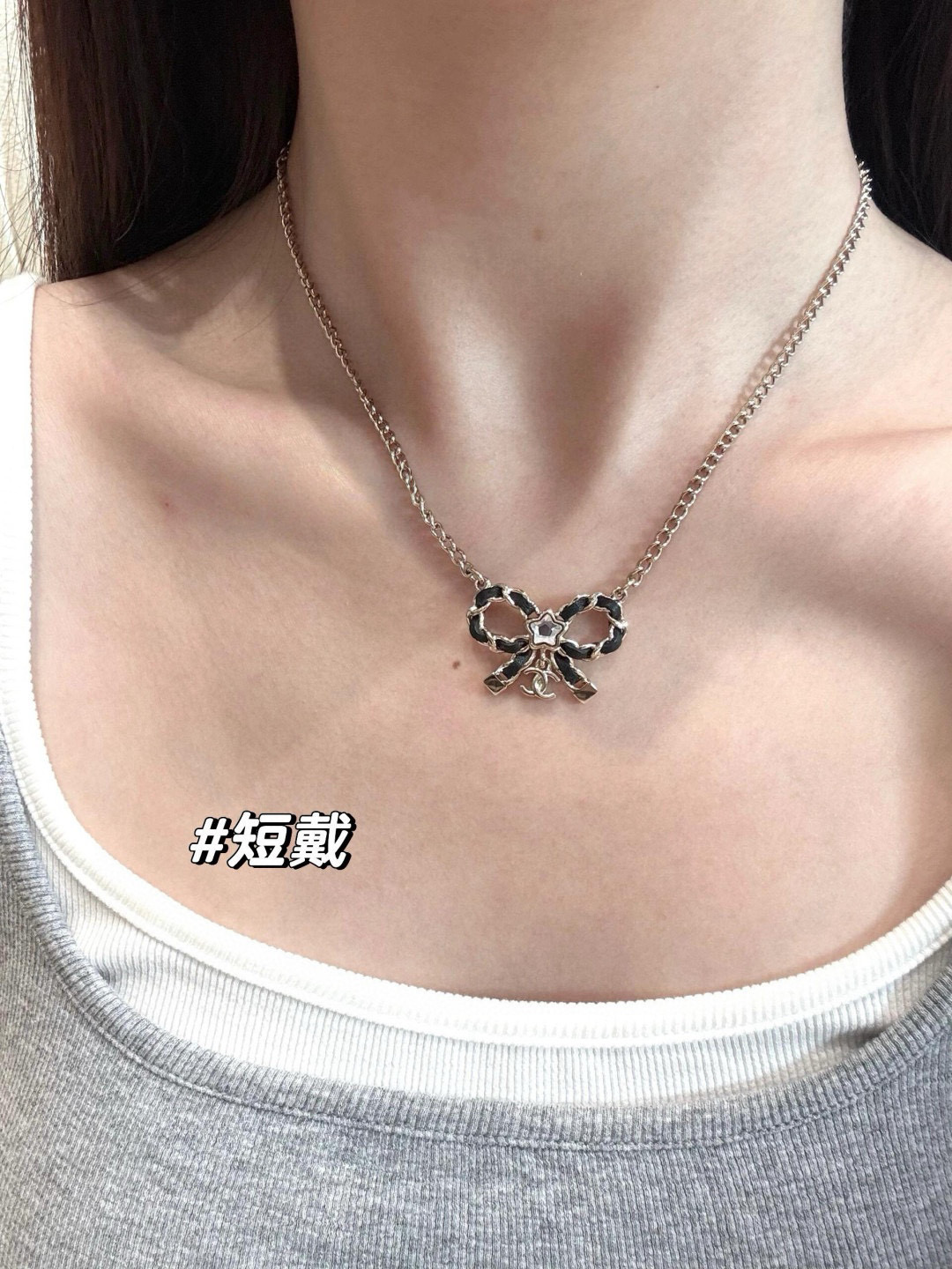 2025秋冬新品 Chanel 星鑽穿皮蝴蝶結項鍊 (奢侈品, 高仿)