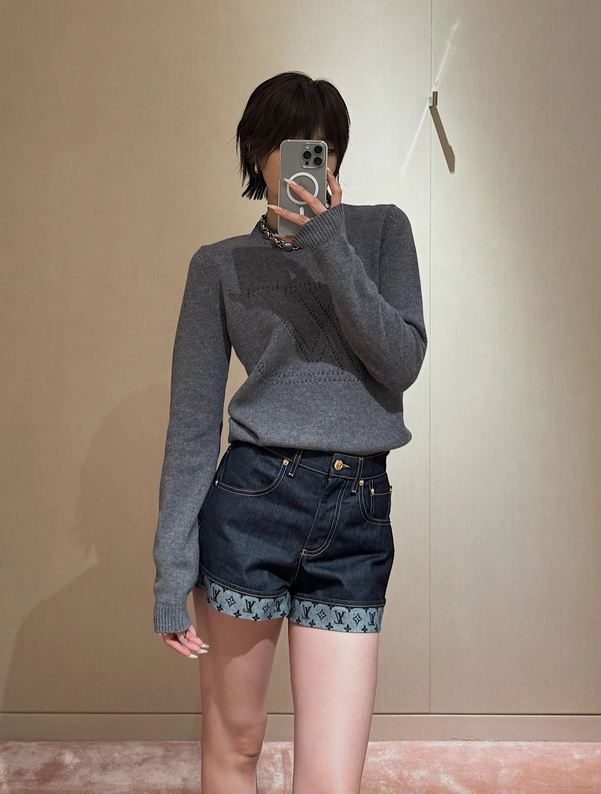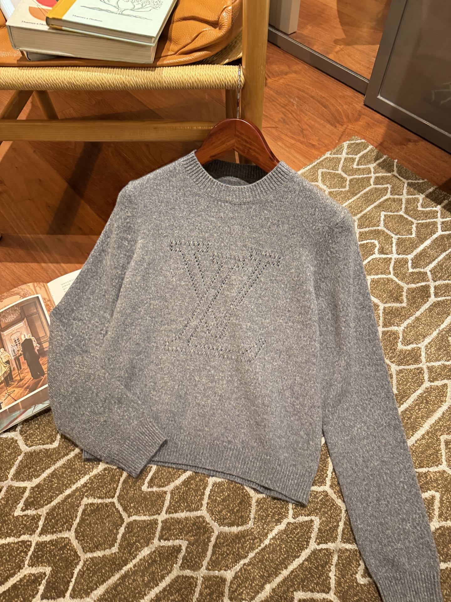 2025秋冬新品 Louis Vuitton 灰色鏤空LOGO針織毛衣 精工 復刻