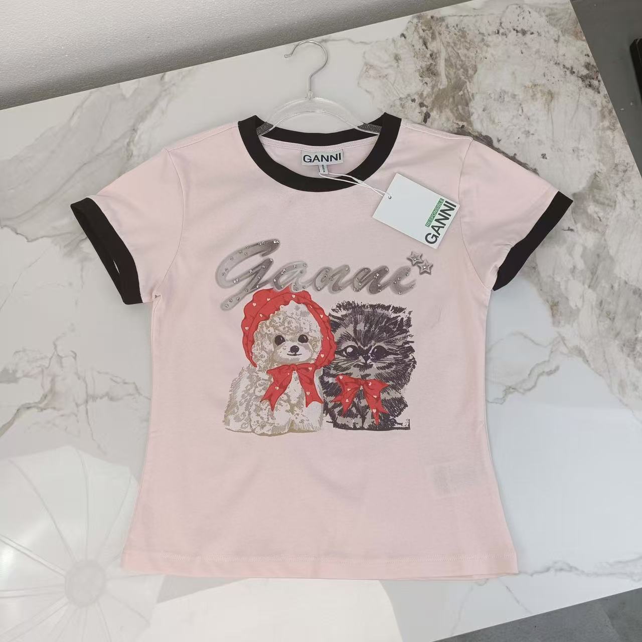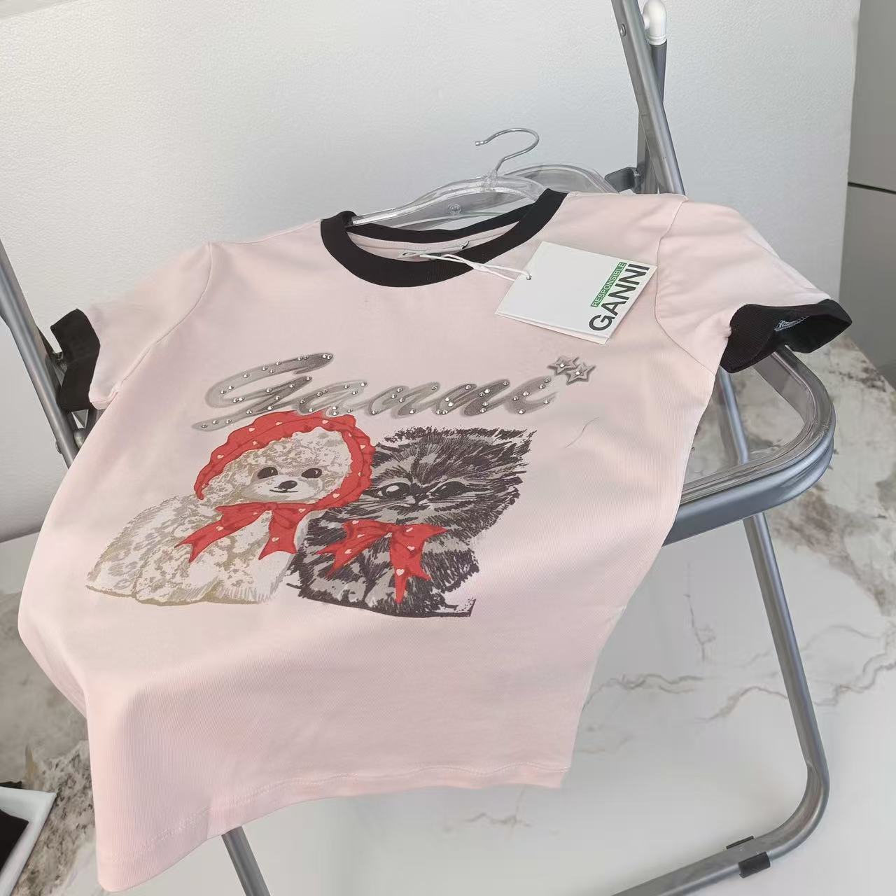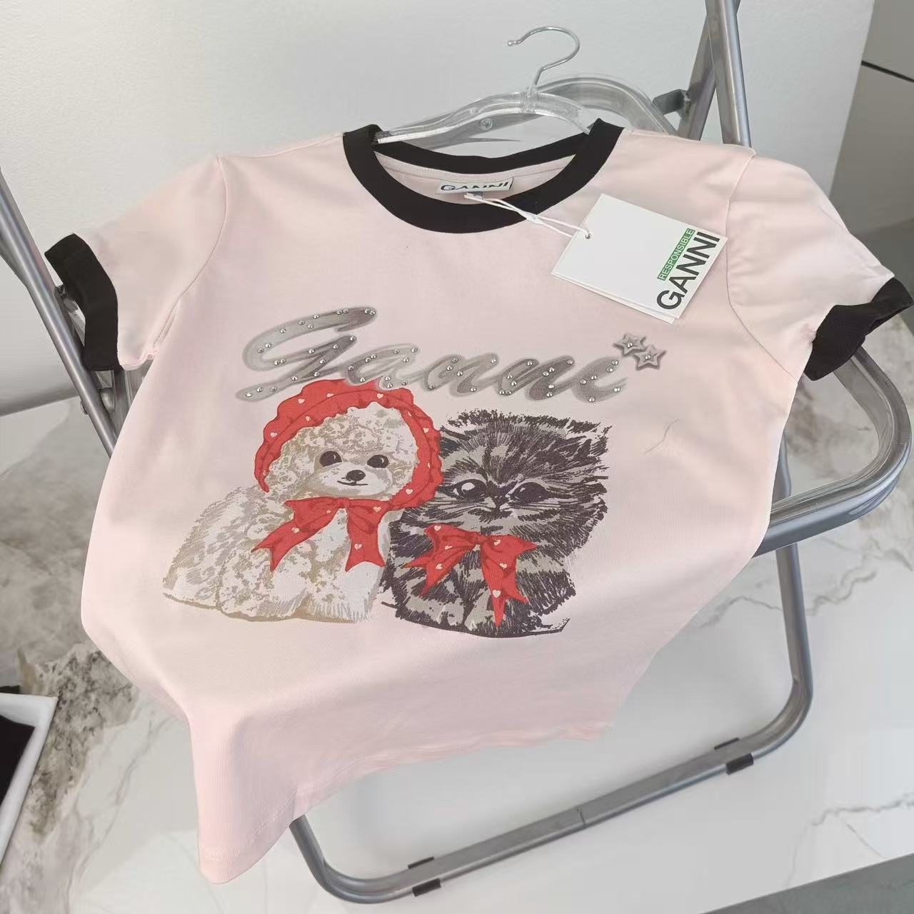 2025早秋新品 Ganni家 小狗貓咪撞色修身短袖