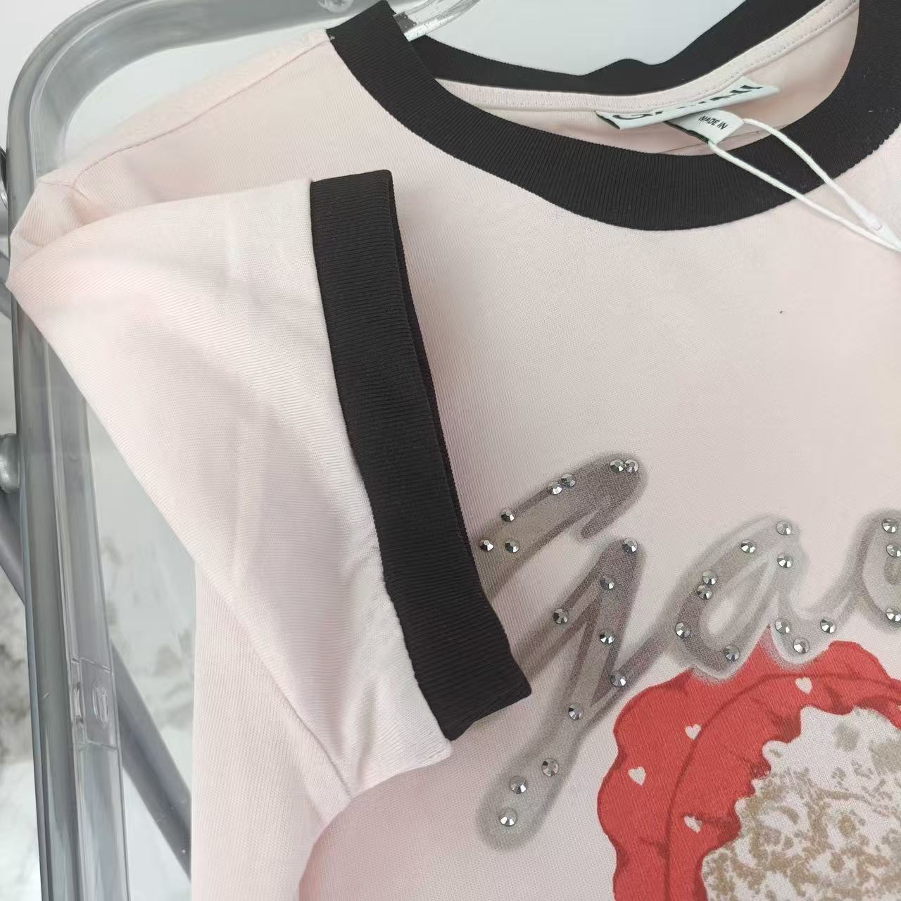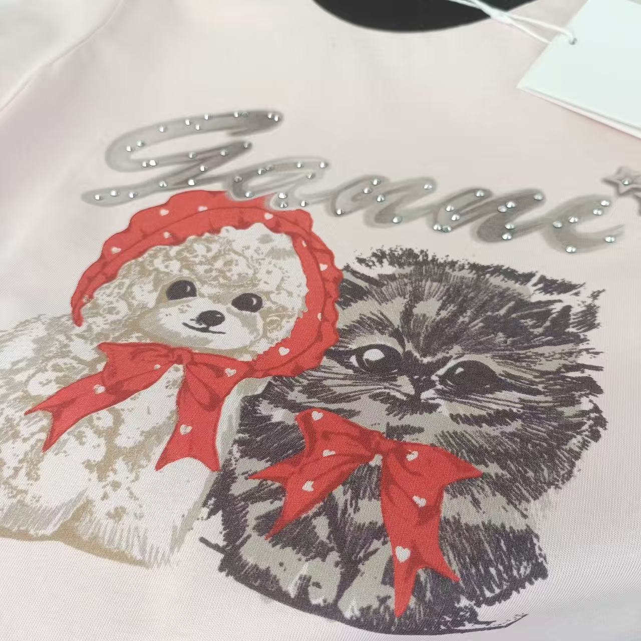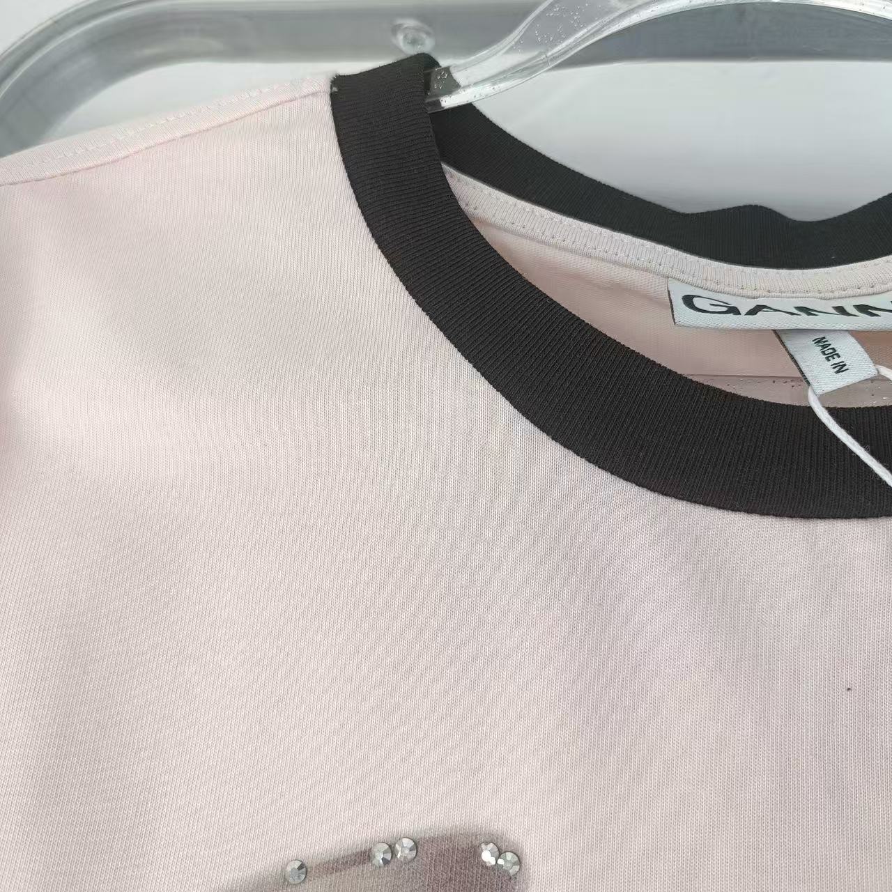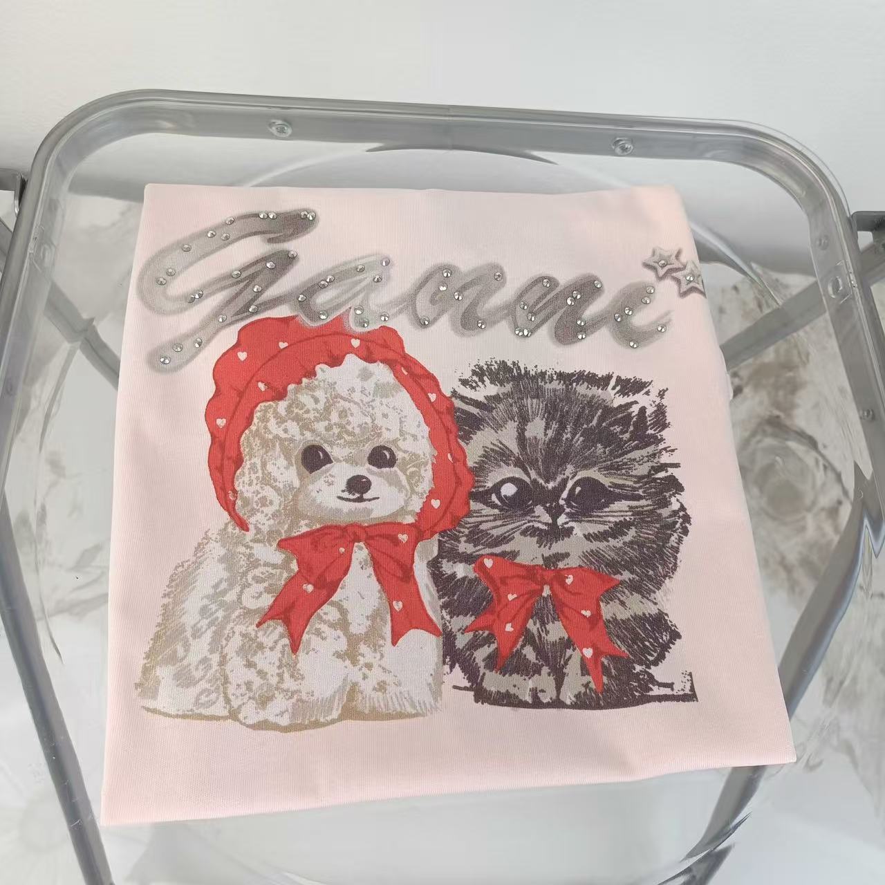 2025早秋新品 Ganni家 小狗貓咪撞色修身短袖