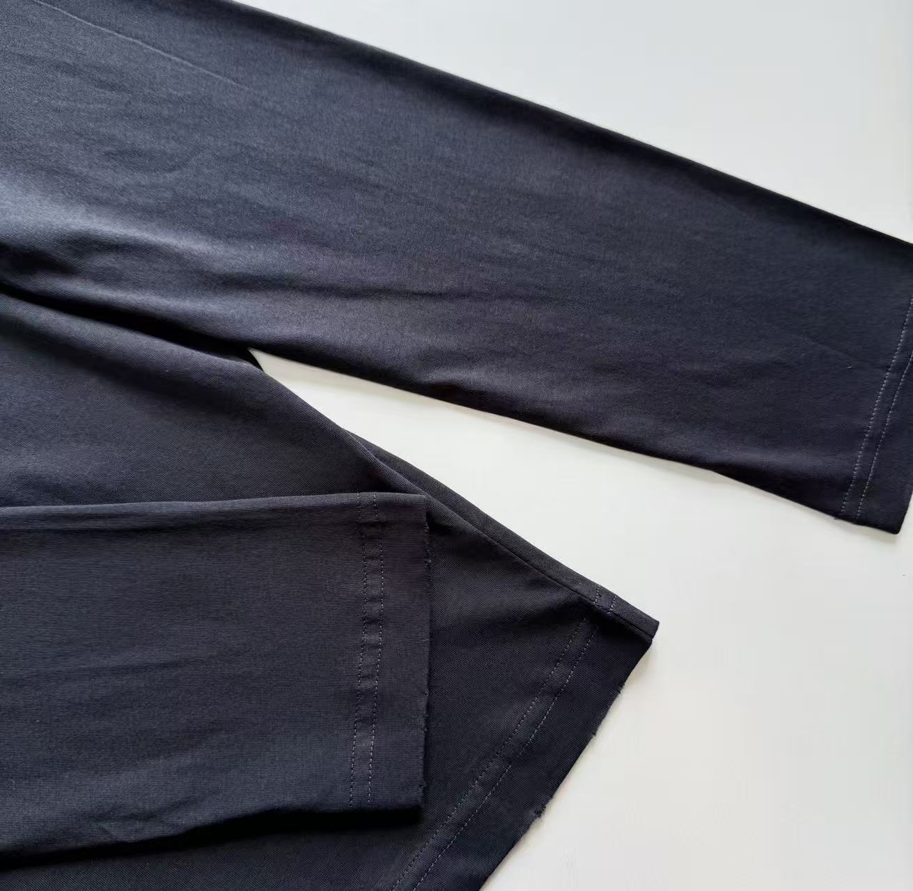 這件長袖的材質真的非常講究!它使用了獨家訂製的 190g 50s 平紋精梳棉材料,摸起來膚感超級舒適,而且非常挺括,穿起來版型超好!而且顏色是訂製的鉛筆灰,完美還原了專櫃的質感,顏色100%一致,質感好到沒話說。