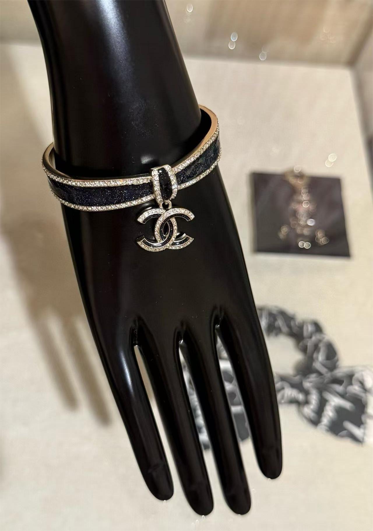 2025早秋  Chanel   蝴蝶結黑金滿鑽手鐲 時尚 精品