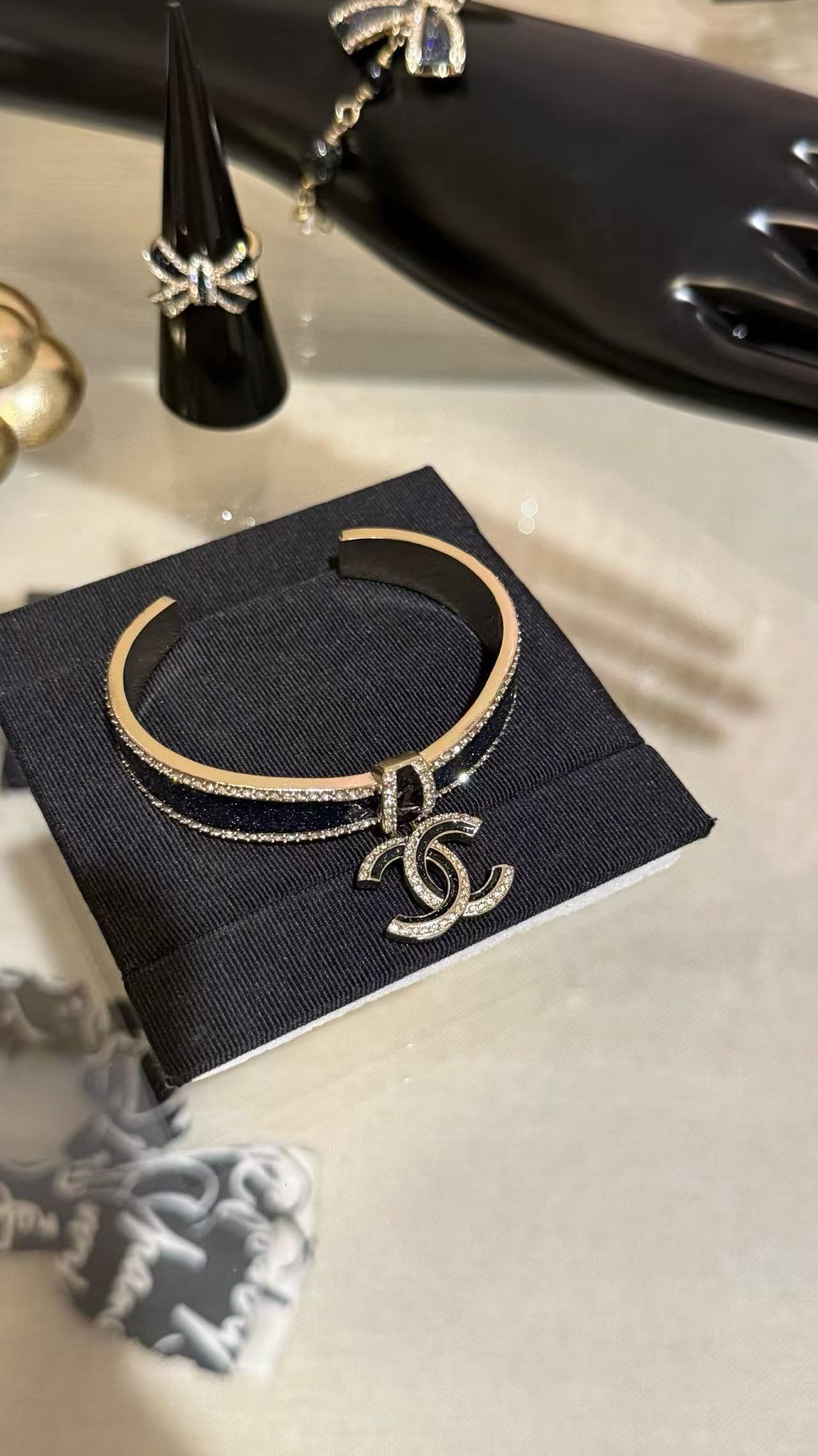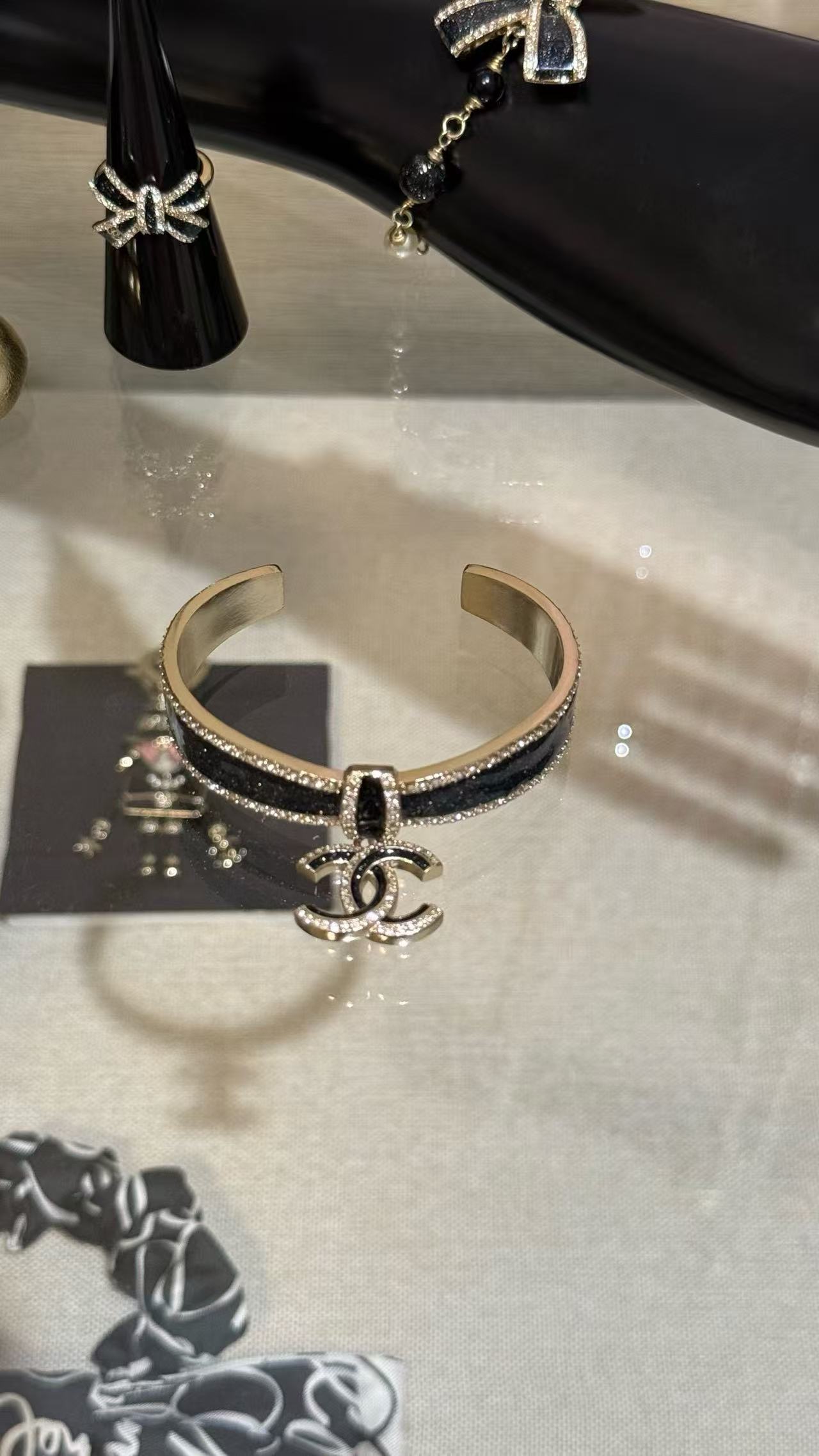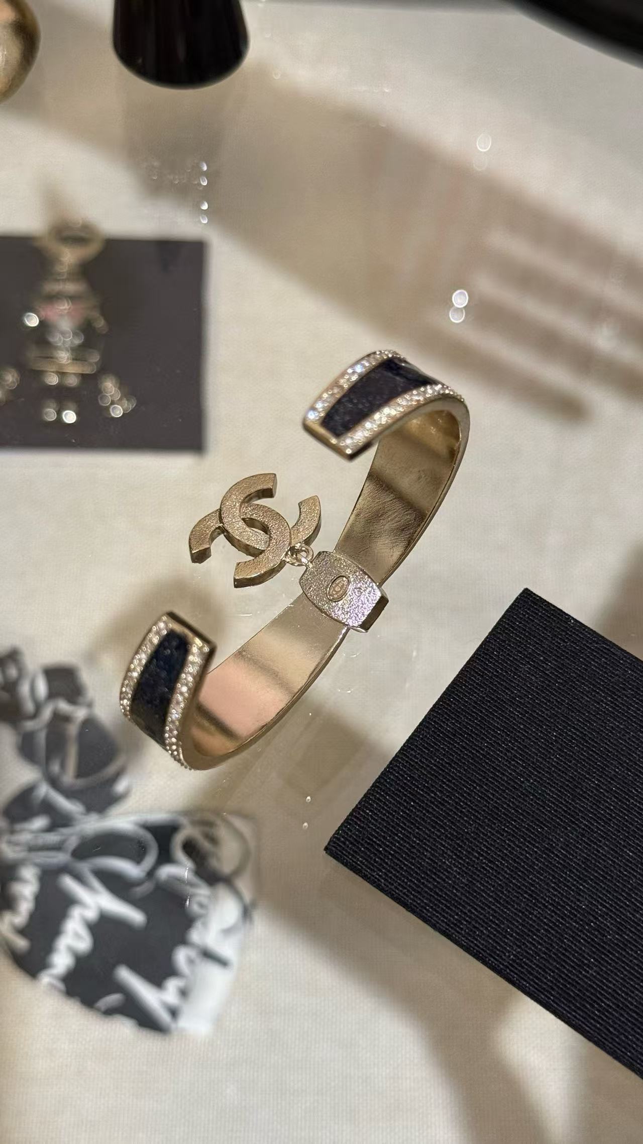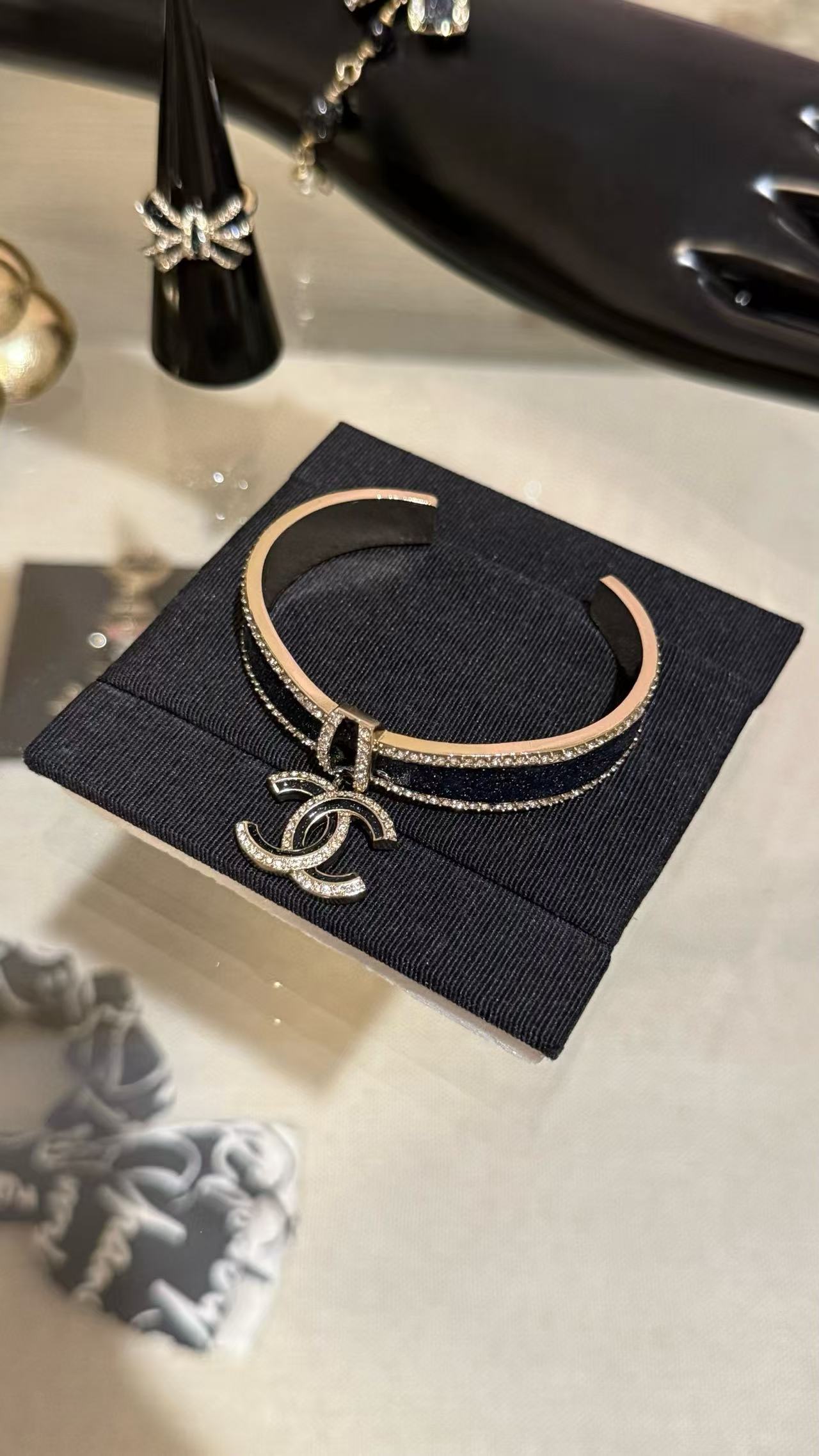Chanel 蝴蝶結黑金滿鑽手鐲 時尚 精品