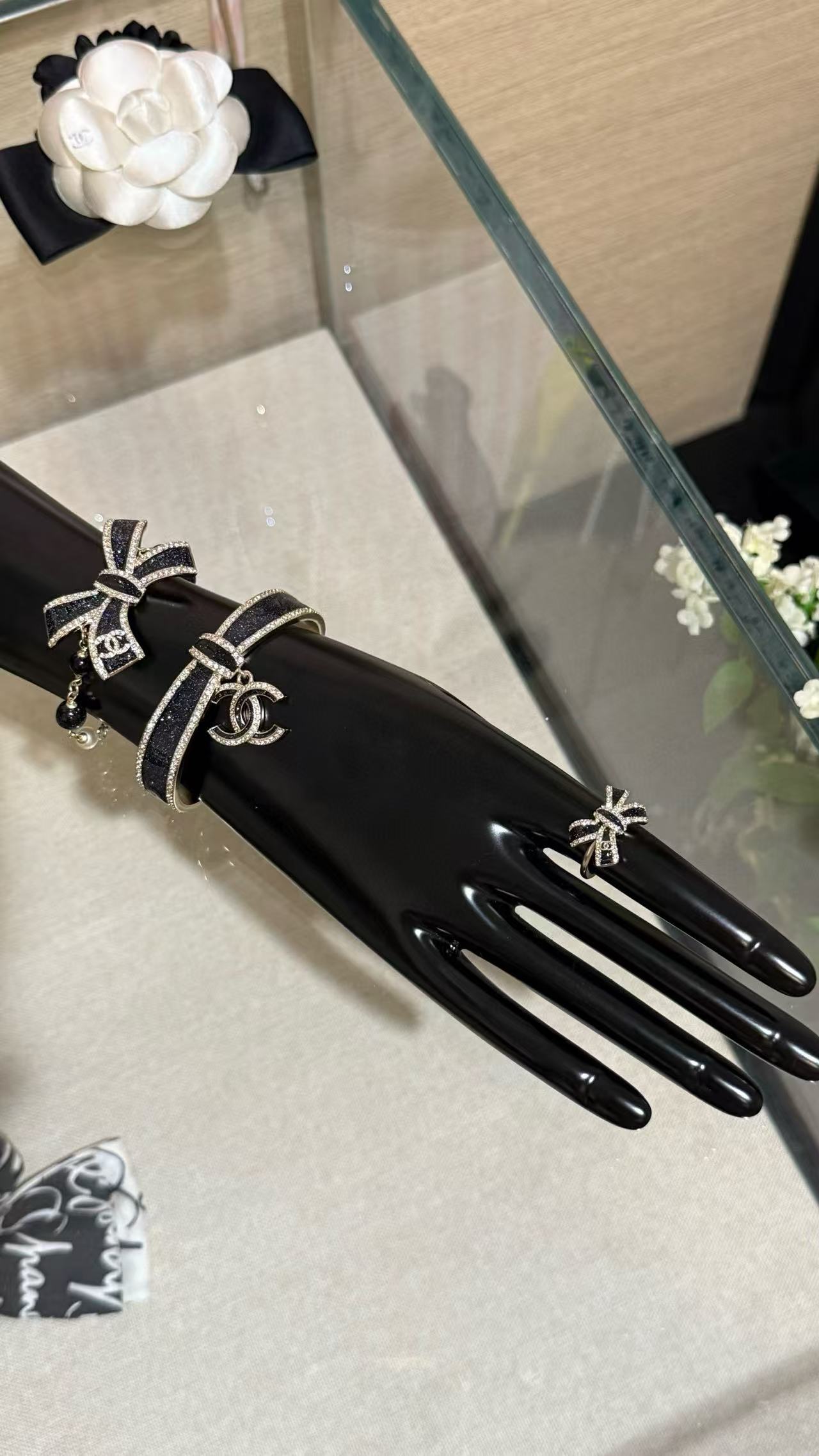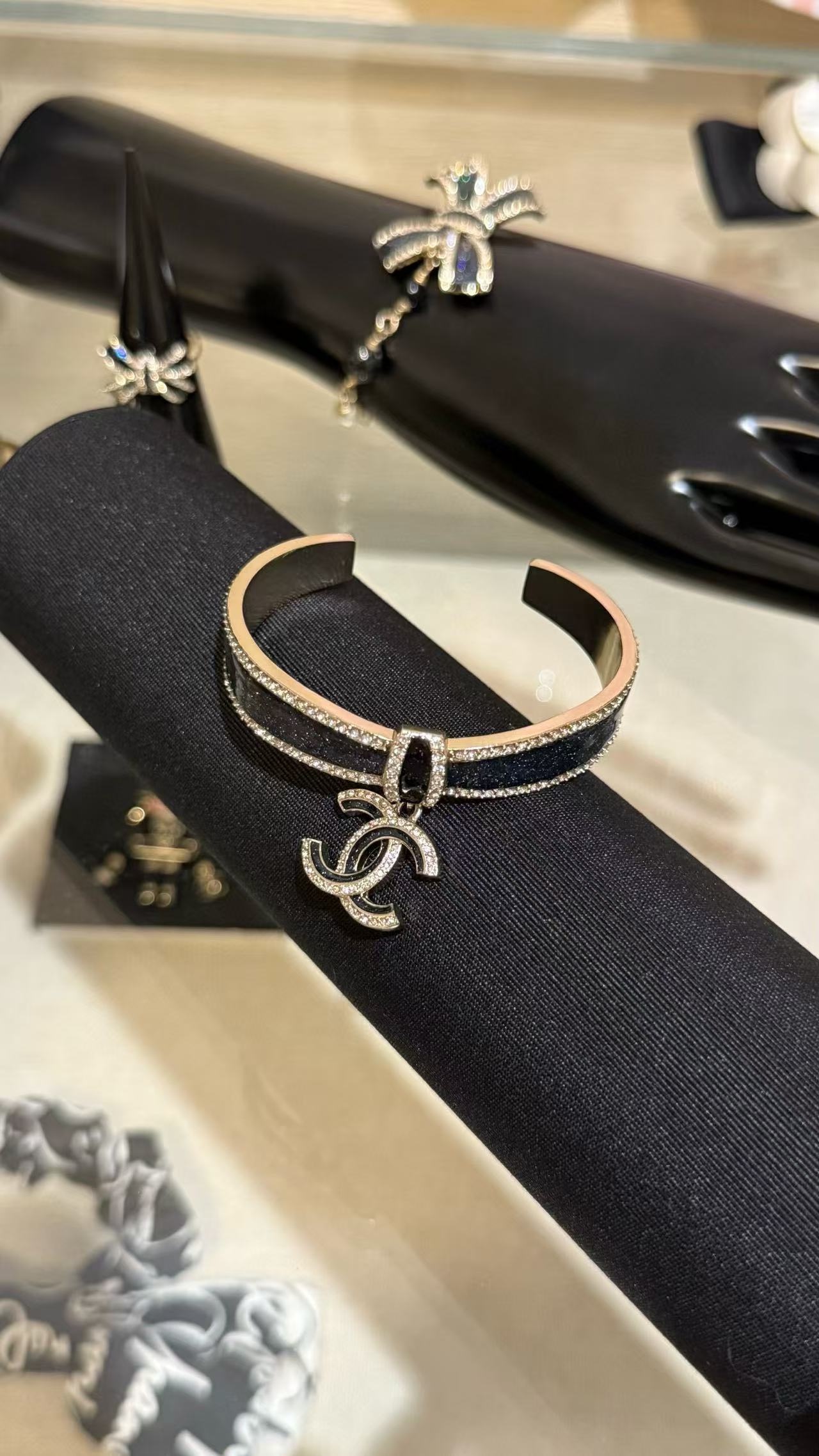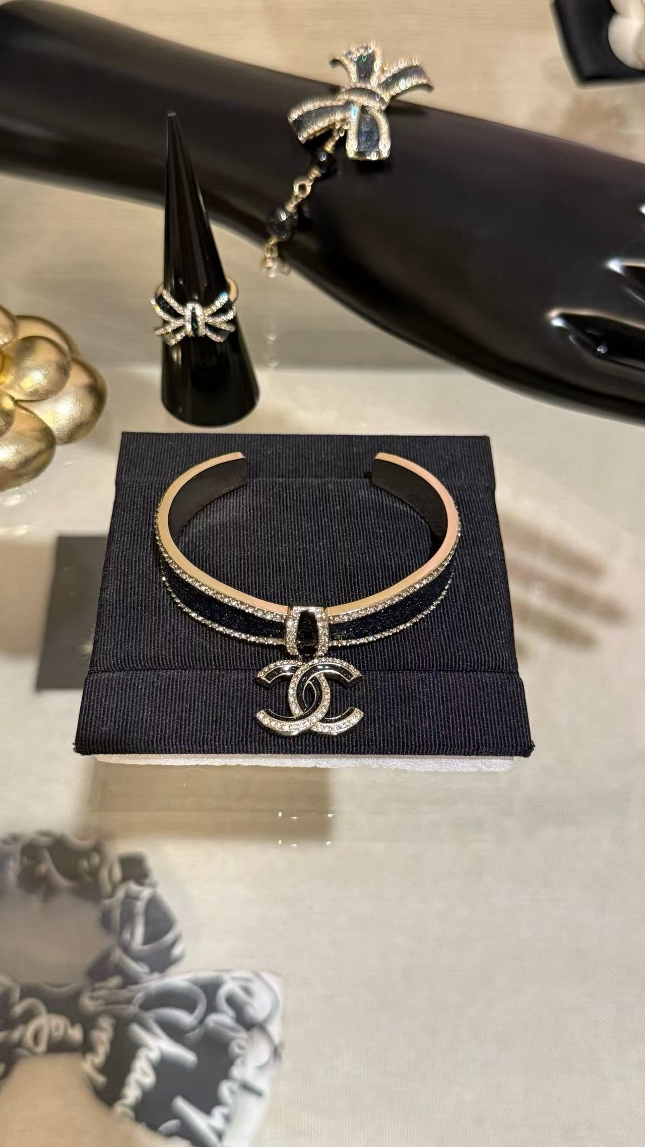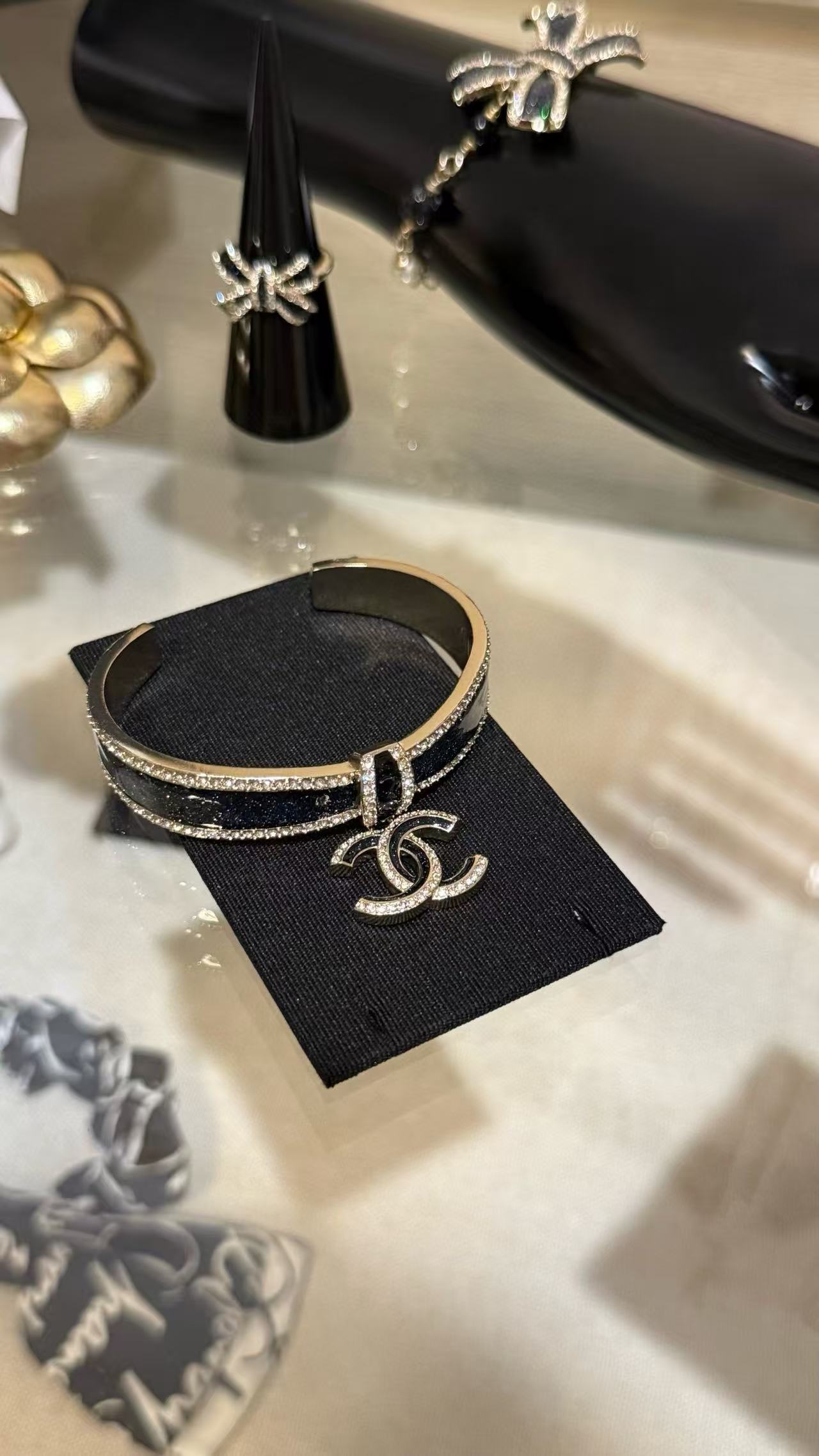 Chanel 蝴蝶結黑金滿鑽手鐲 時尚 精品