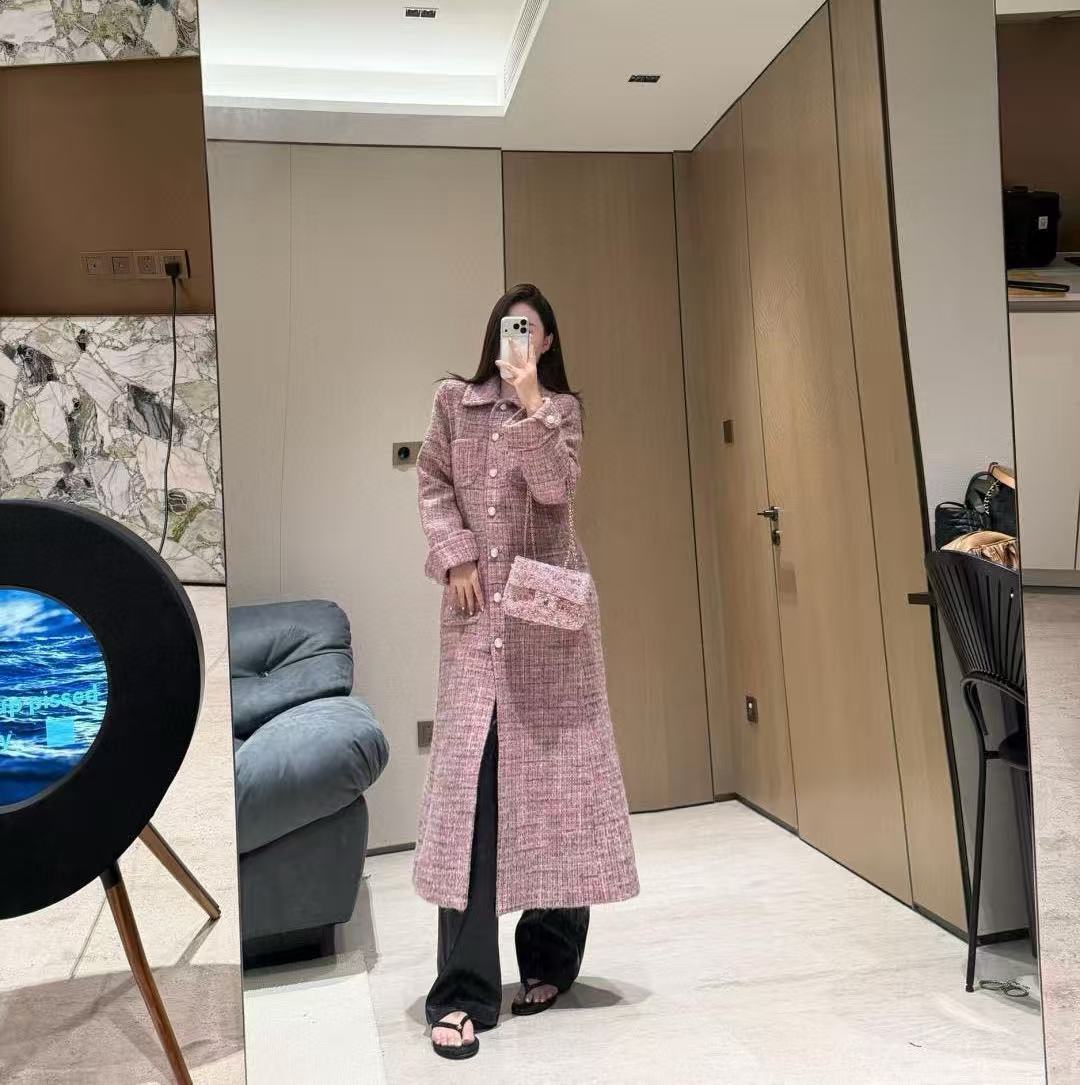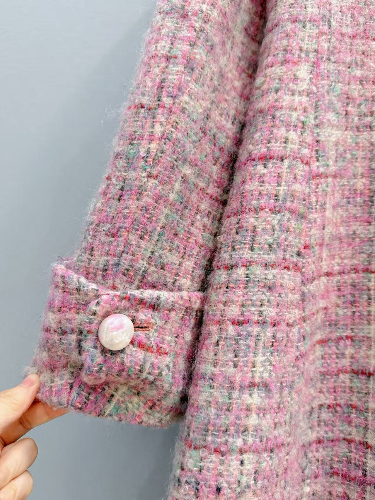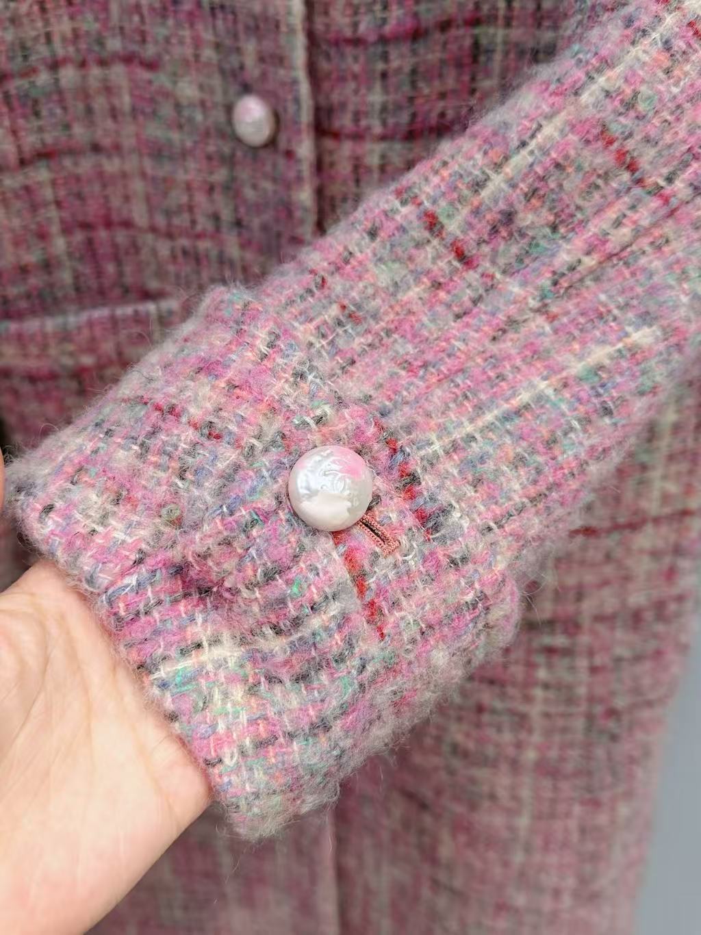2025早秋 Chanel 粉色粗花呢大衣 高仿 精工,名媛風穿搭首選