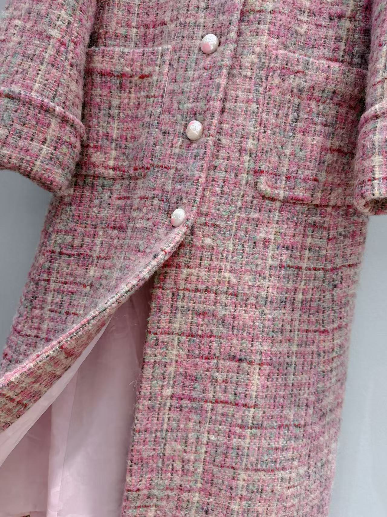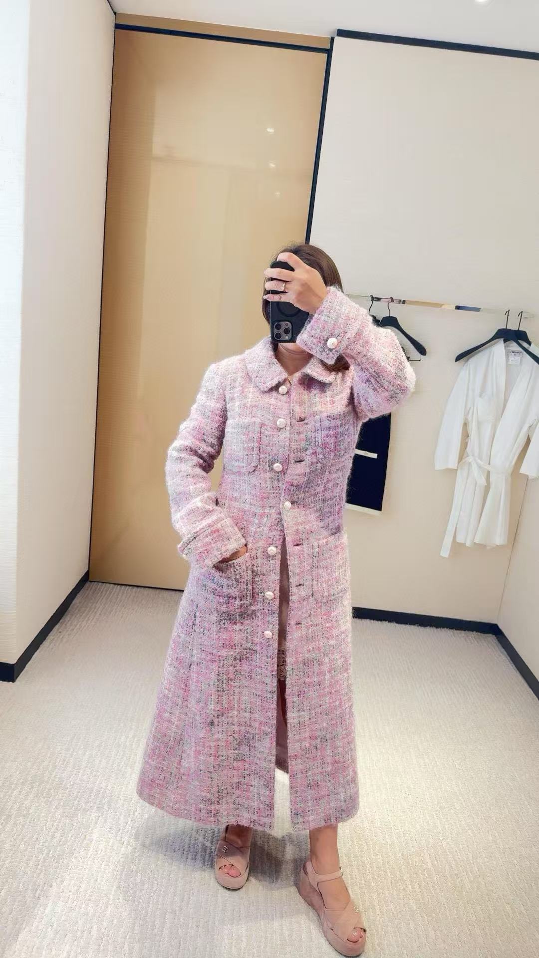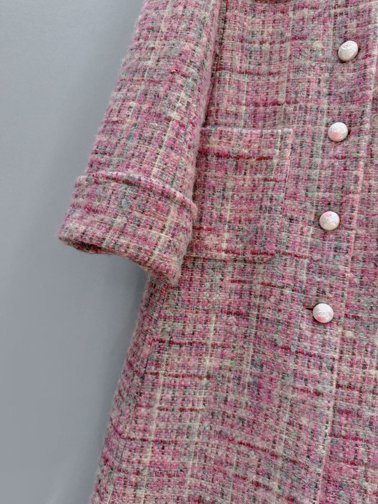 2025早秋 Chanel 粉色粗花呢大衣 高仿 精工,名媛風穿搭首選