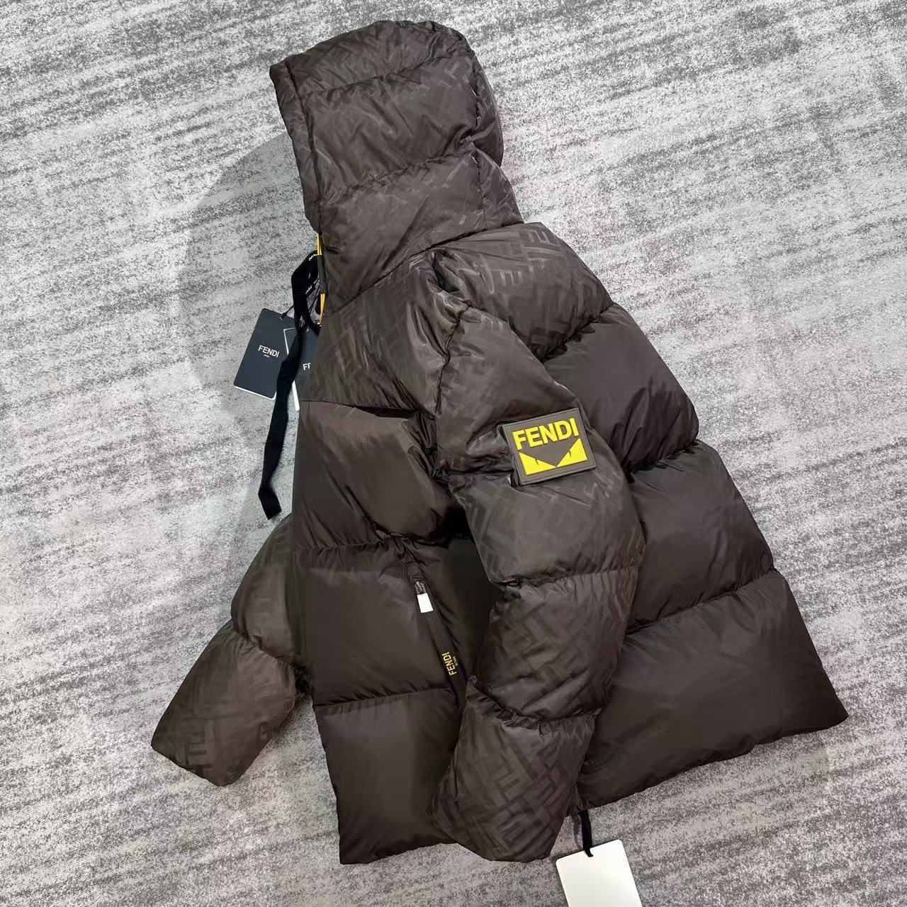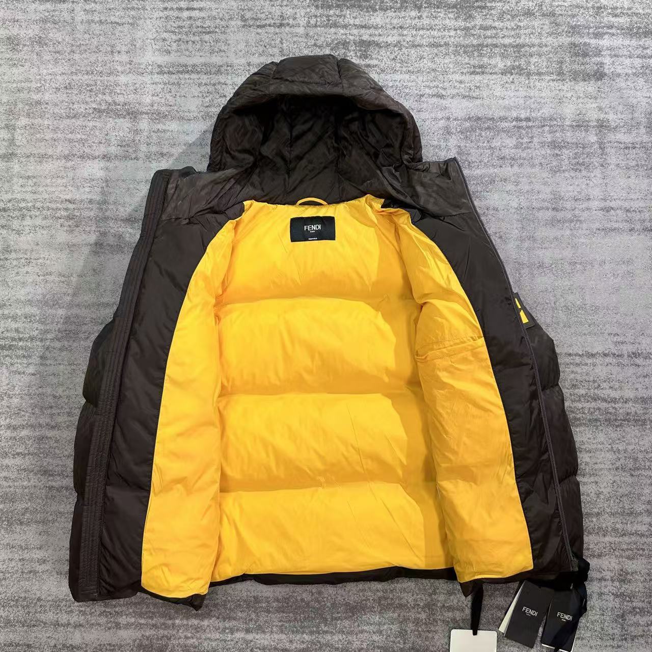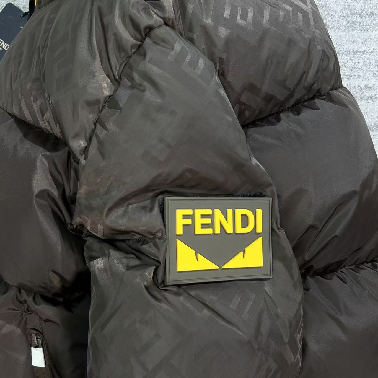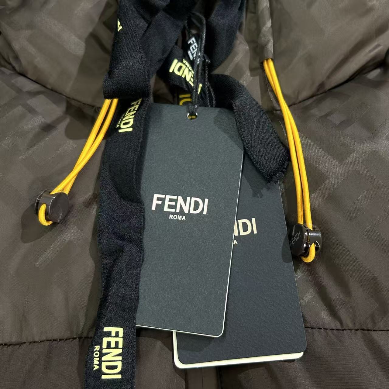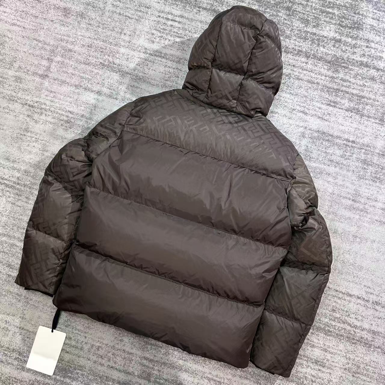 2025早秋新品 Fendi 暗紋雙F拼接連帽羽絨外套 精品 時尚