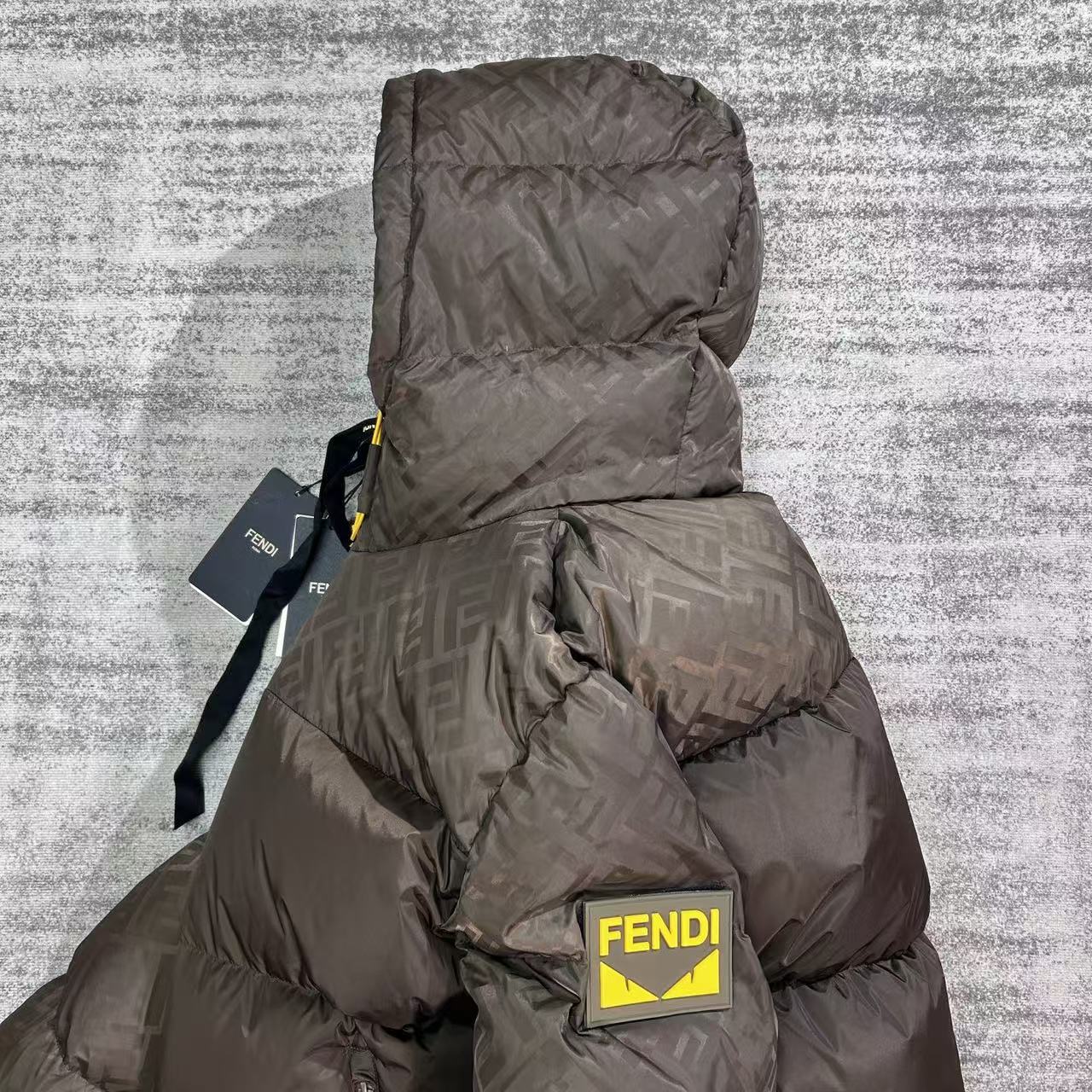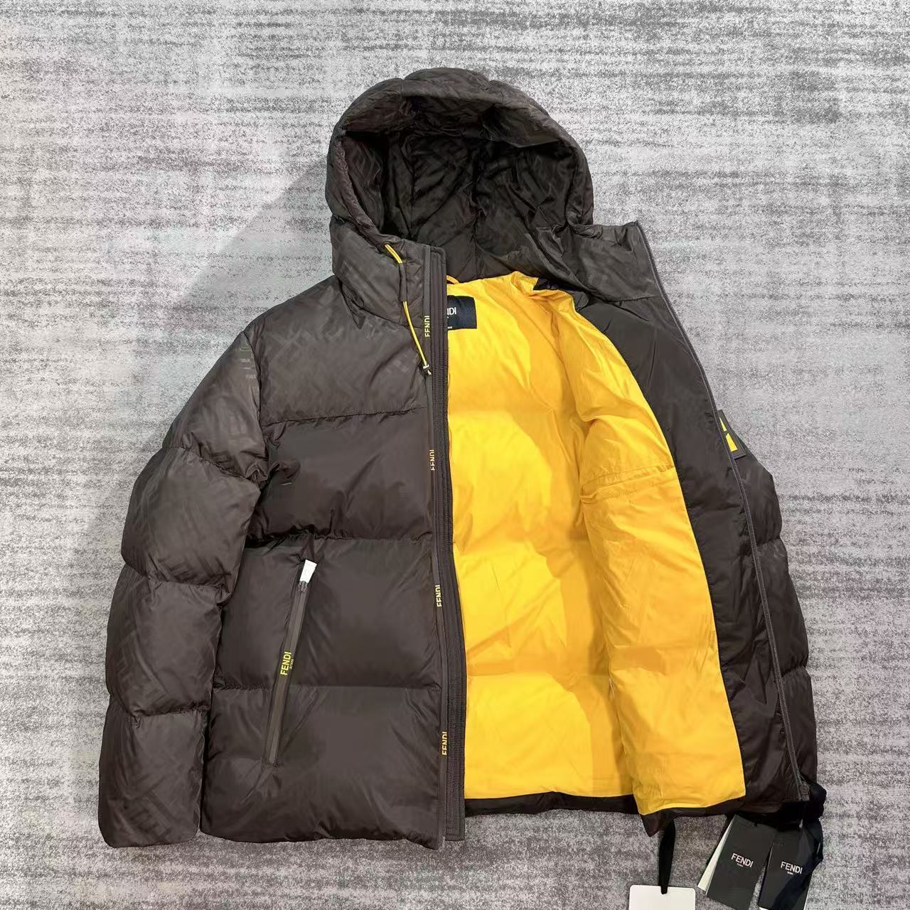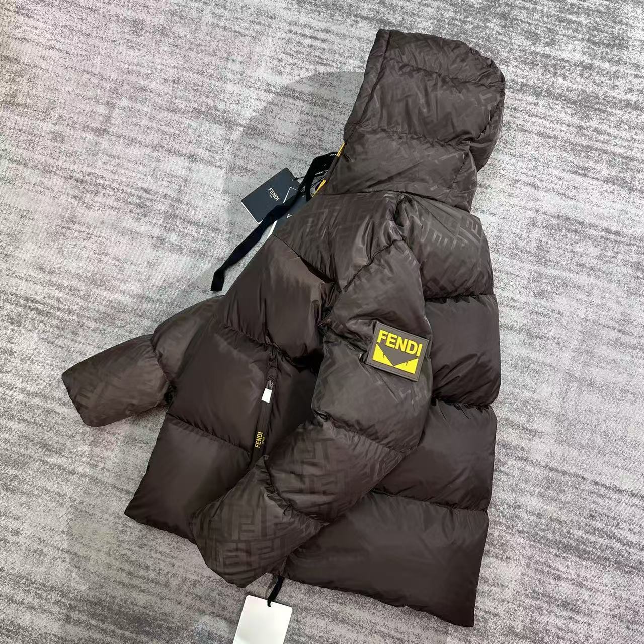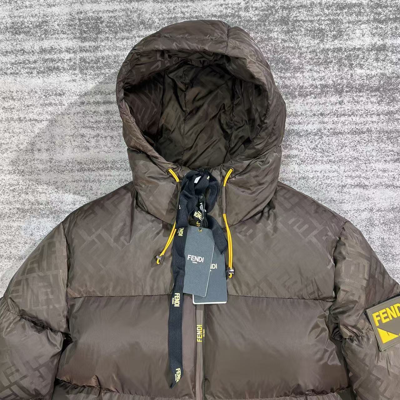 2025早秋新品 Fendi 暗紋雙F拼接連帽羽絨外套 精品 時尚