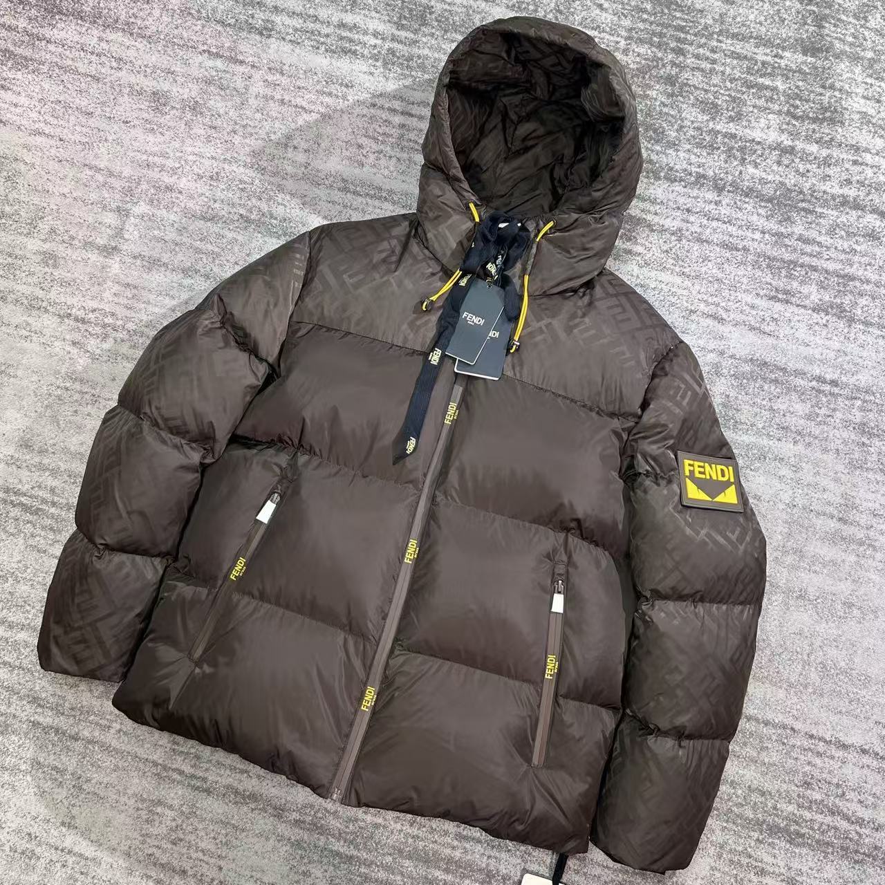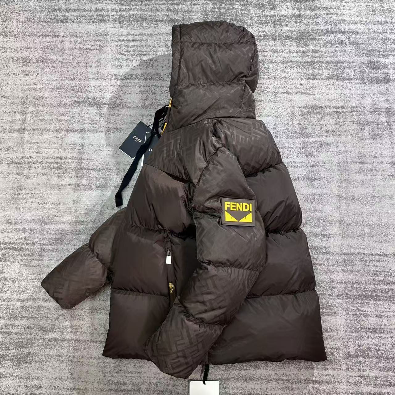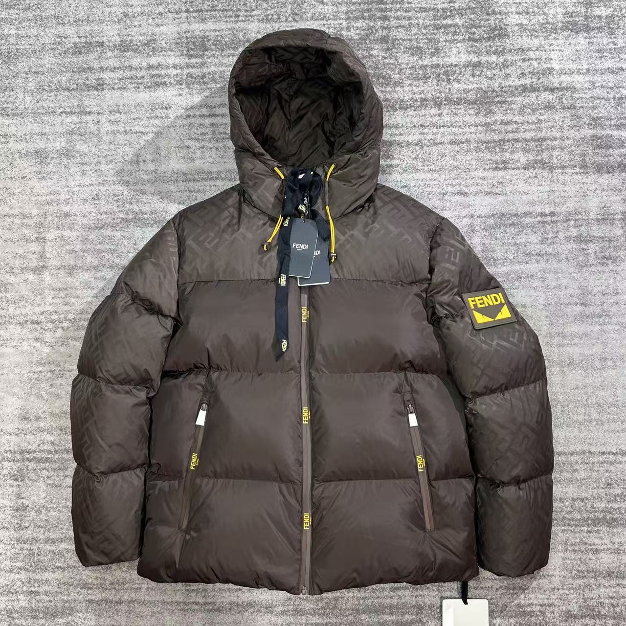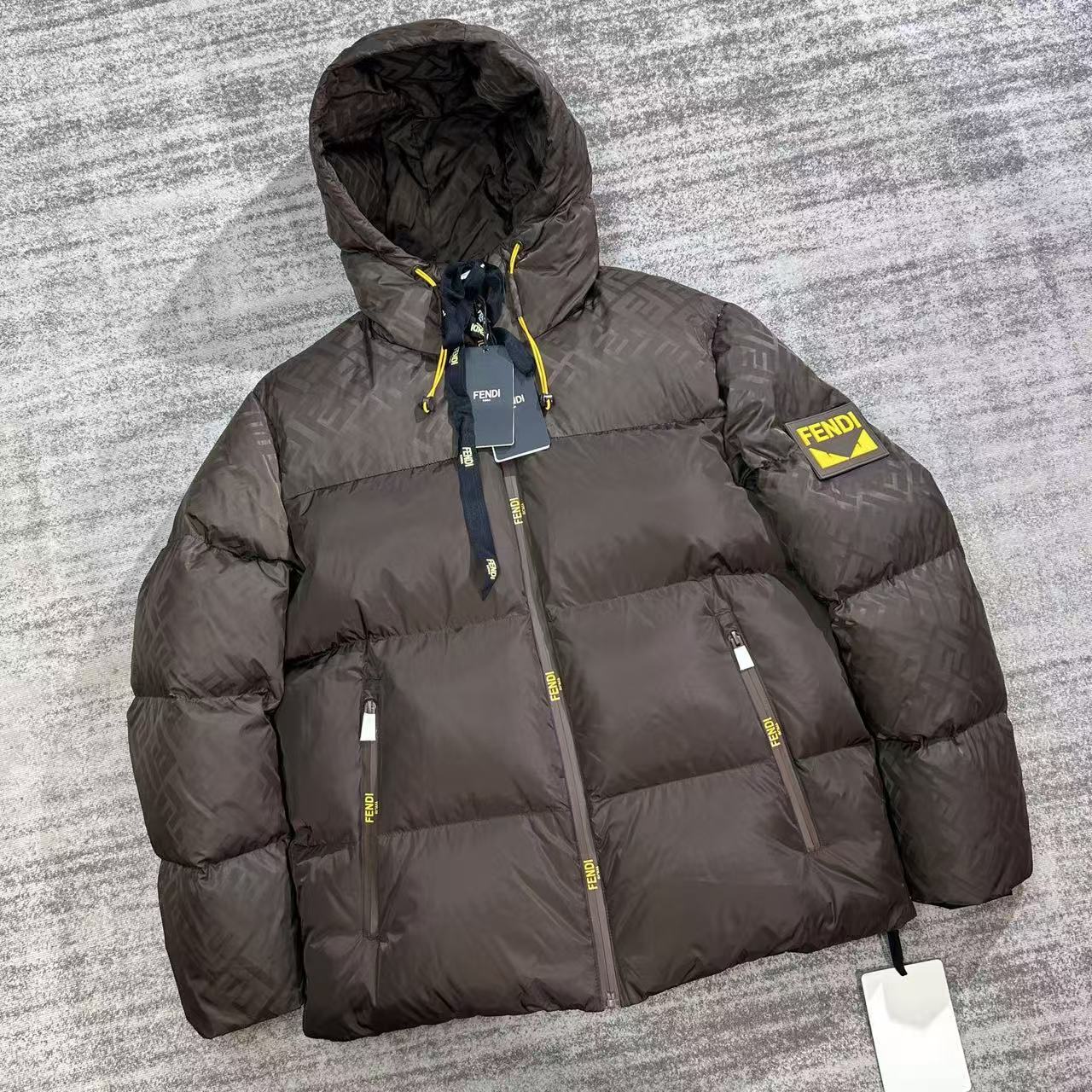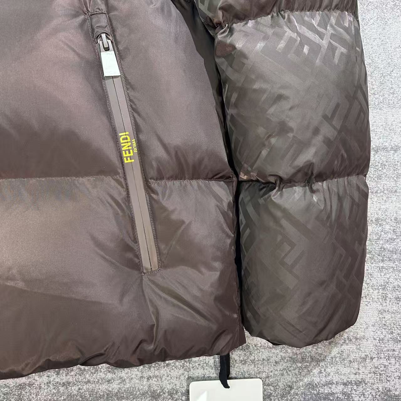 2025早秋新品 Fendi 暗紋雙F拼接連帽羽絨外套 精品 時尚