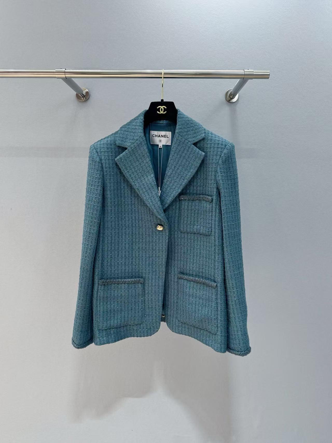 2025早秋 Chanel 復古肌理孔雀綠西裝外套 精品 精工