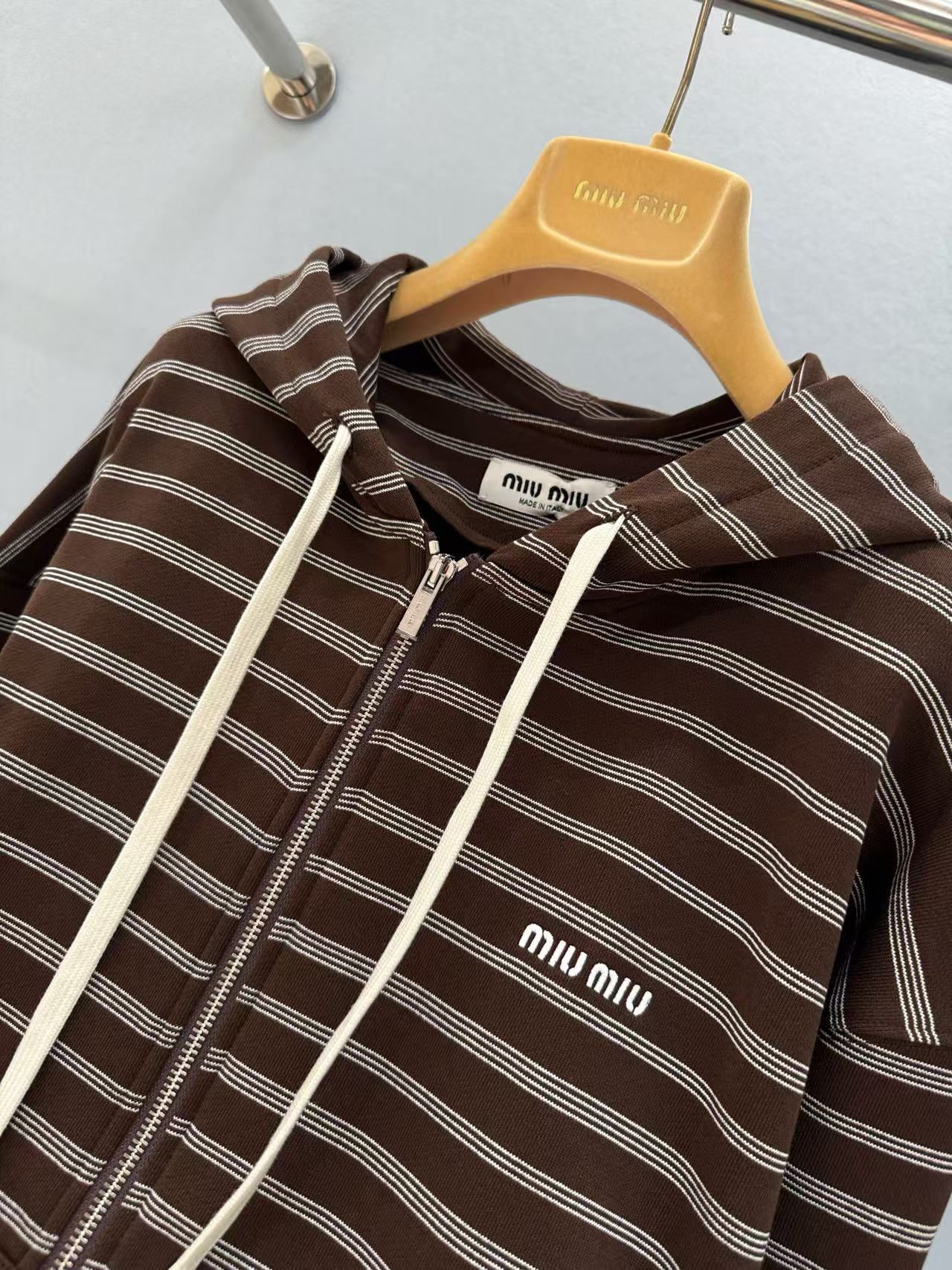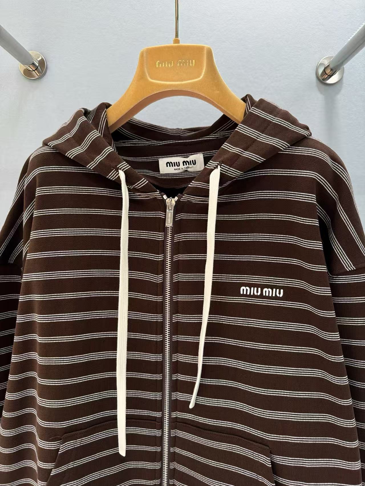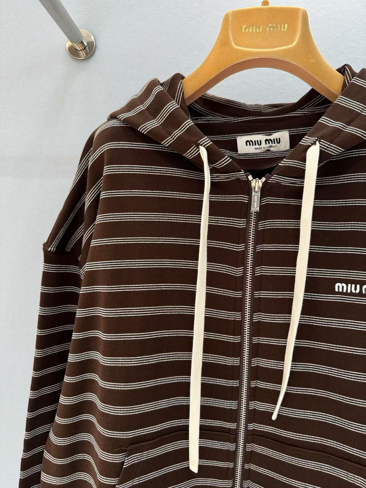 2025早秋 MIU MIU 咖色條紋棉質拉鍊外套 高仿 精品