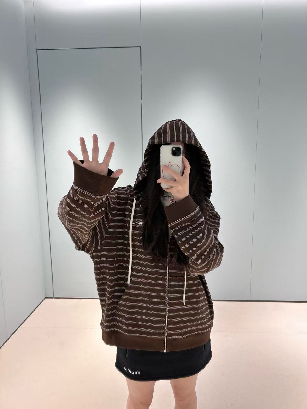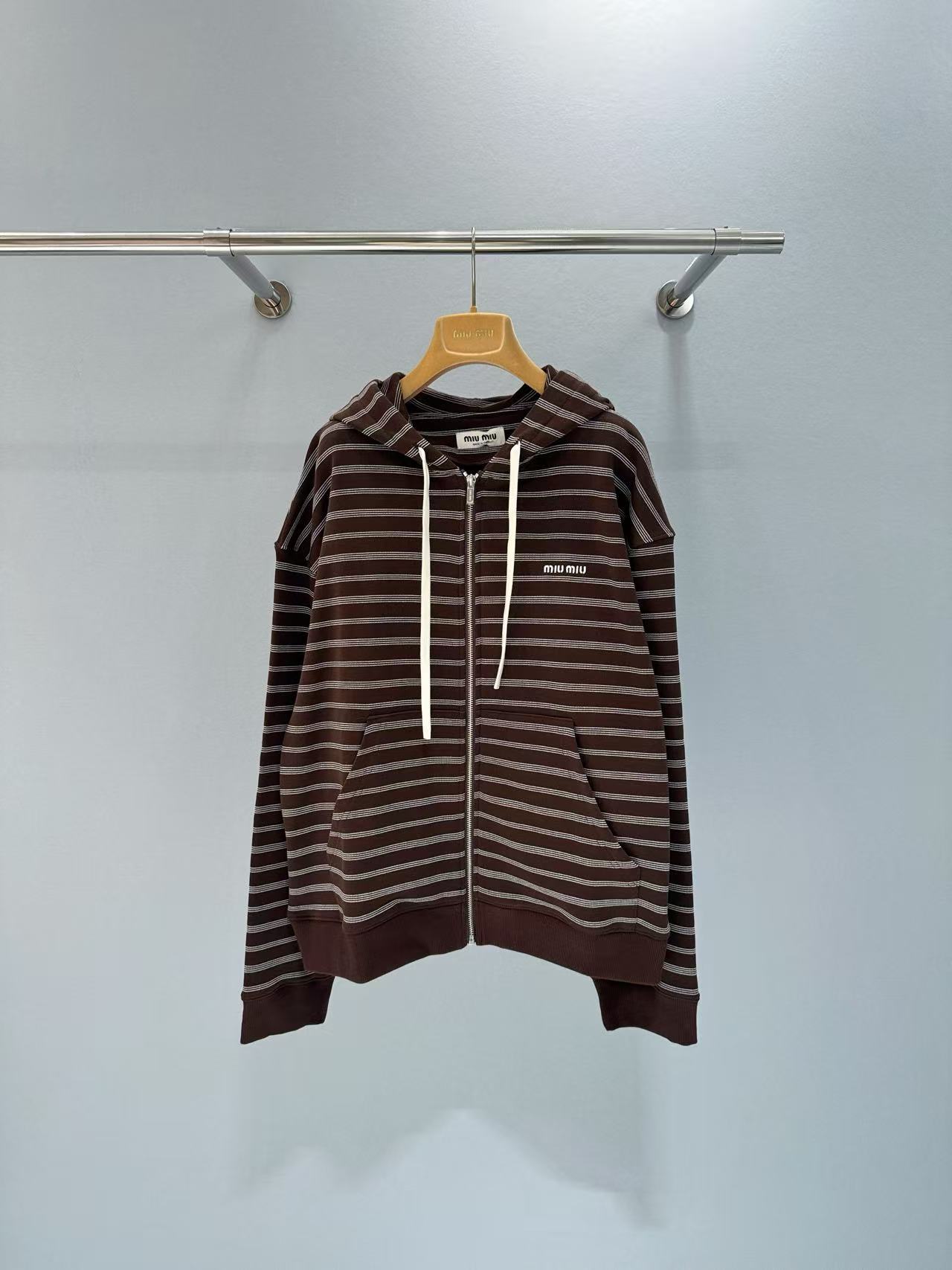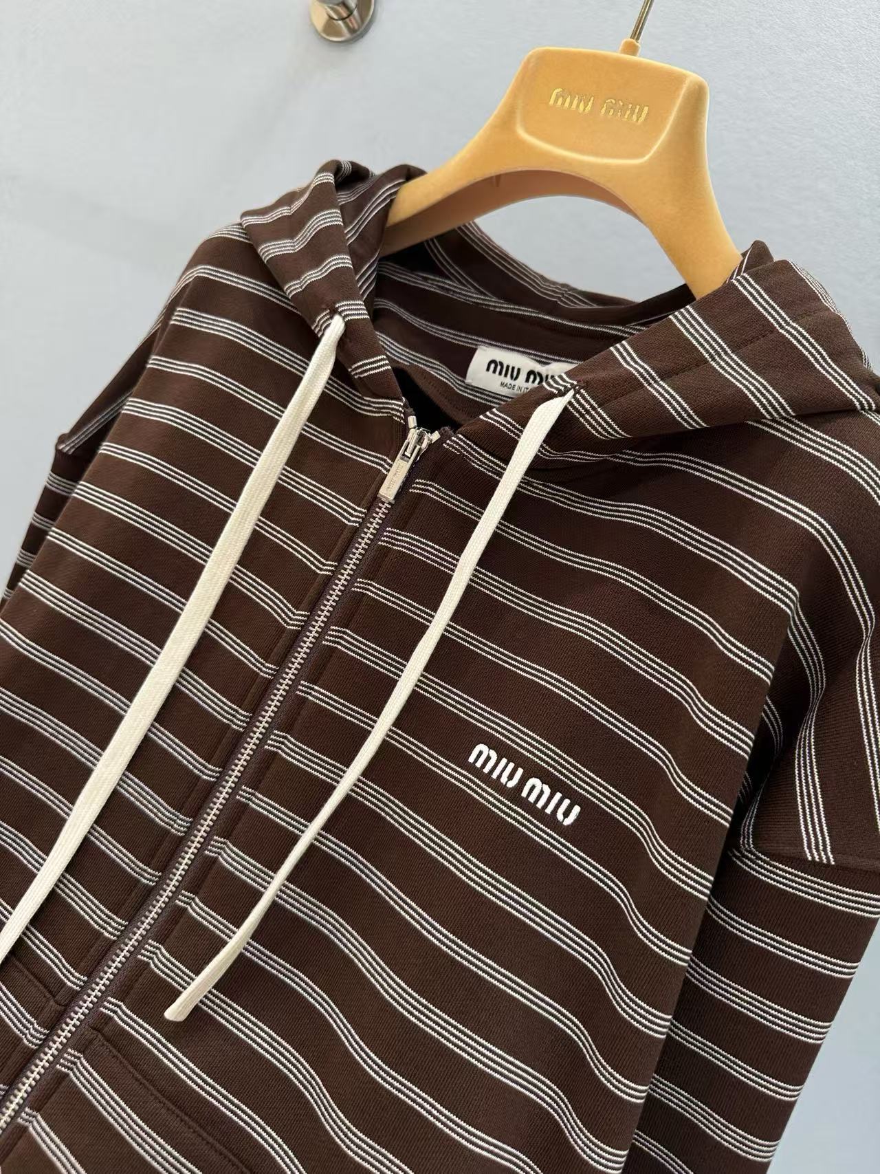 2025早秋 MIU MIU 咖色條紋棉質拉鍊外套 高仿 精品