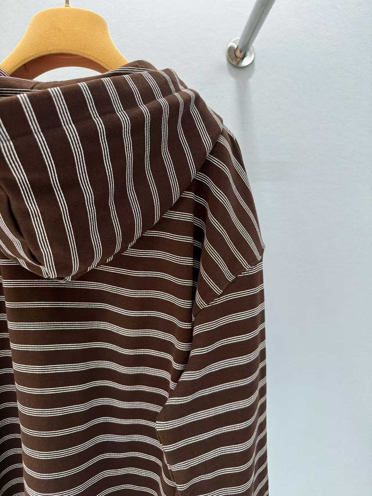 這件衛衣外套完全是早秋的舒適首選!榛果巧克力色調的條紋元素,復古中又帶點慵懶氛圍,怎麼搭都不會膩。