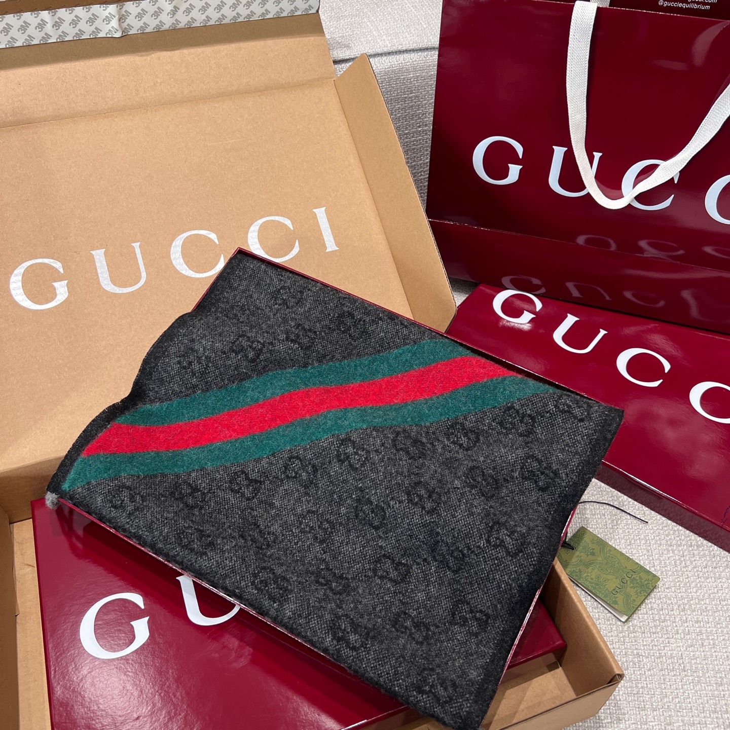 最吸睛的細節在於圍巾一側的紅綠織帶裝飾,低調中藏著滿滿品牌靈魂,搭配任何外套都能瞬間提升造型層次。不論是日常通勤還是出國旅行,都能輕鬆駕馭。