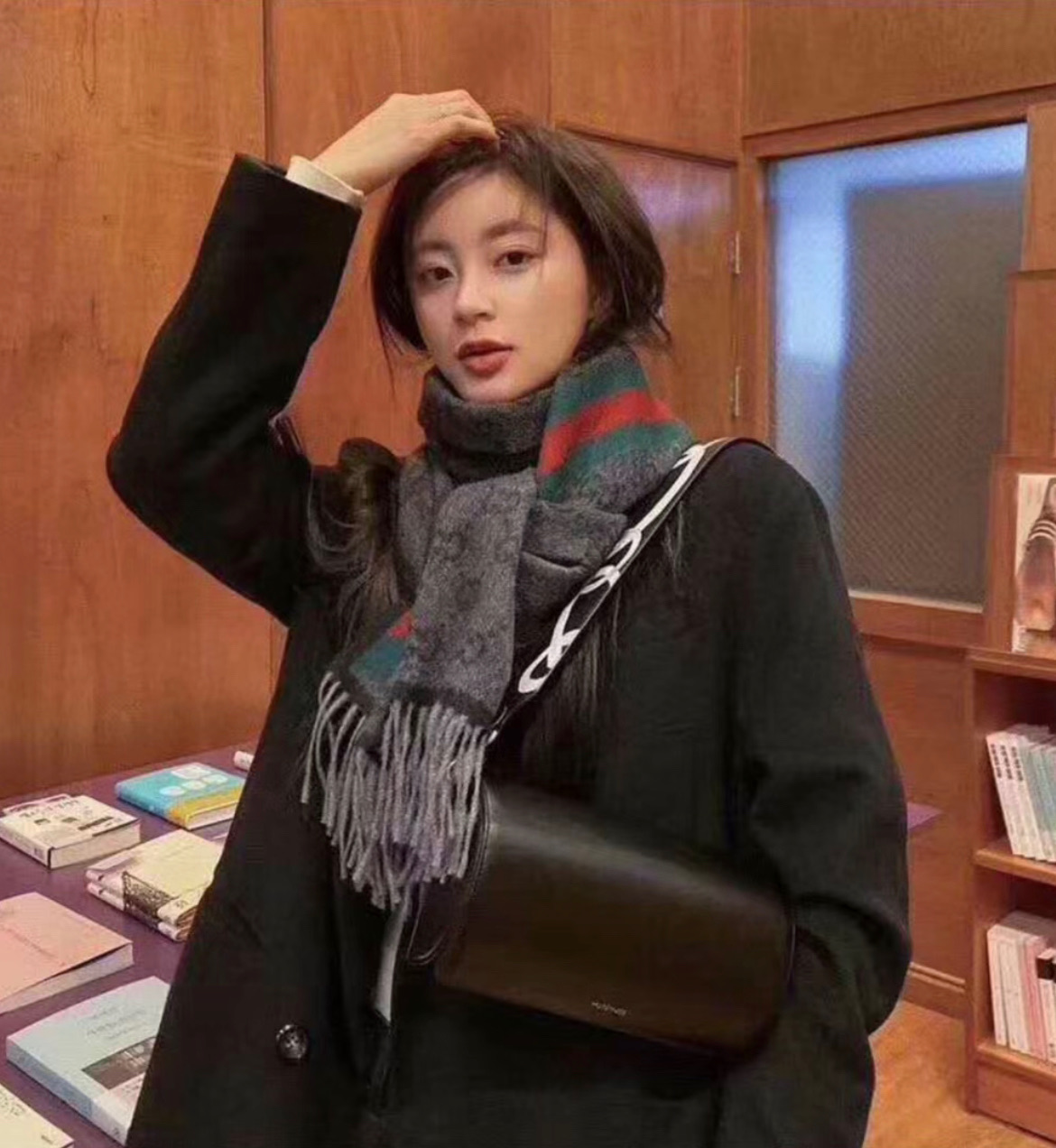 這條圍巾真的超級經典又百搭!採用標誌性的雙G提花設計,整體低調卻不失辨識度,那種一眼就能看出的高級質感,讓人完全無法忽視。