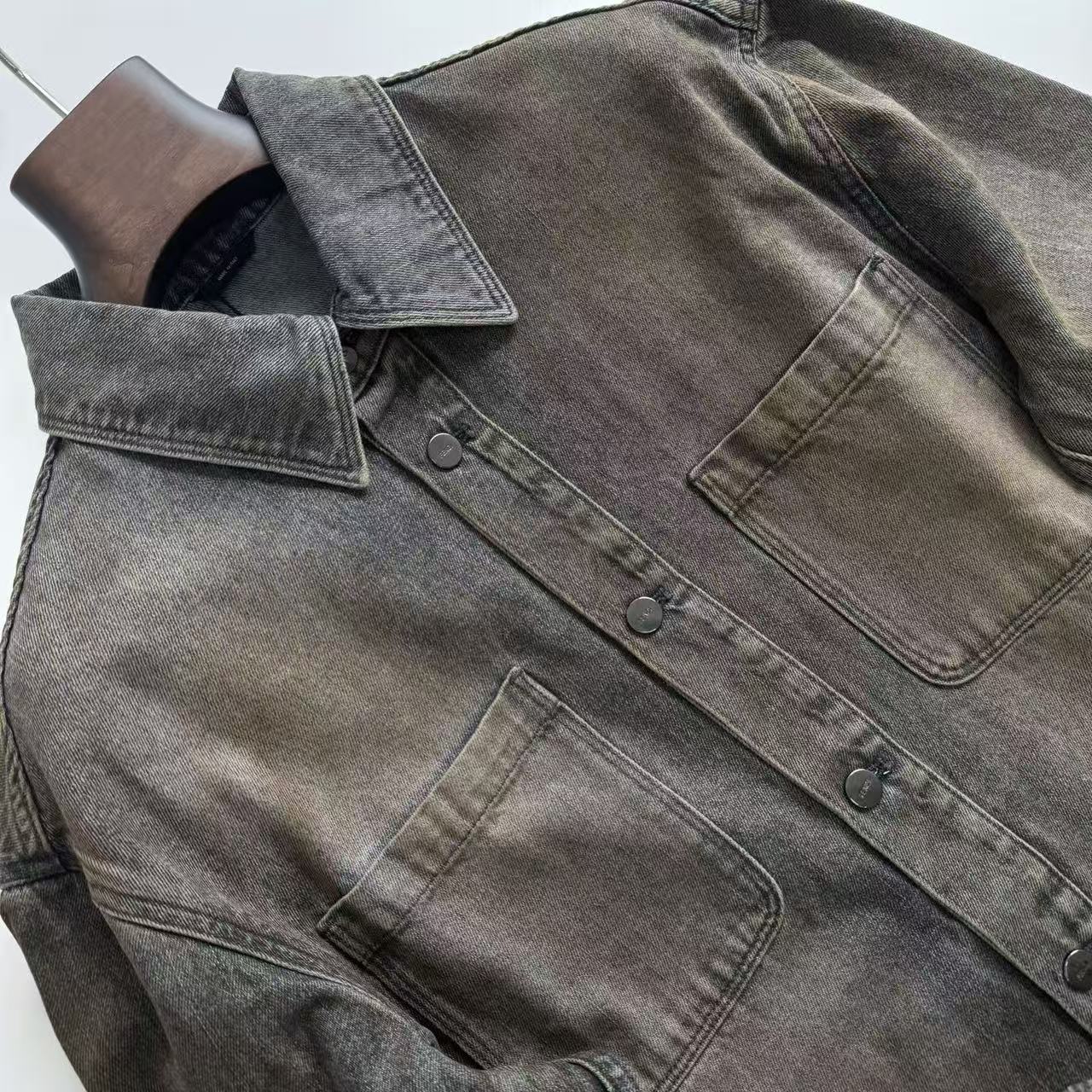 這款牛仔外套以經典翻領剪裁與直筒版型為基調,線條俐落、結構感強,輕鬆修飾身形比例。局部漸變效果透過高壓噴槍在特定部位摩擦,層次自然不突兀;磨砂技術製造獨有紋理圖案,每件外套都像手工藝術品。做工複雜耗力,卻讓毛鬚與色塊完美融合,復古街頭感直接拉滿。無論單穿還是內搭毛衣,這件高仿外套都能為你的造型注入滿滿的個性做舊風情!