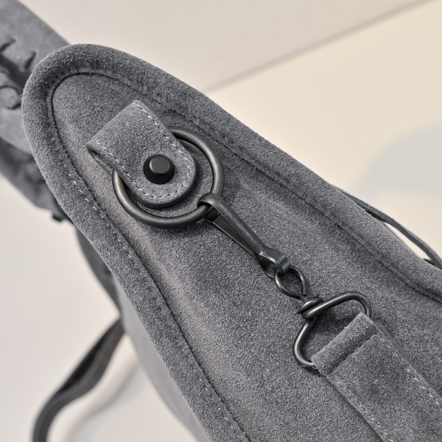 材質介紹|義大利進口麂皮,這款包採用的高仿材質,手感細膩柔軟,質感高級。麂皮的表面帶有自然霧面光澤,讓整體包型更顯復古氛圍,同時也保有BLCG一貫的酷帥感。