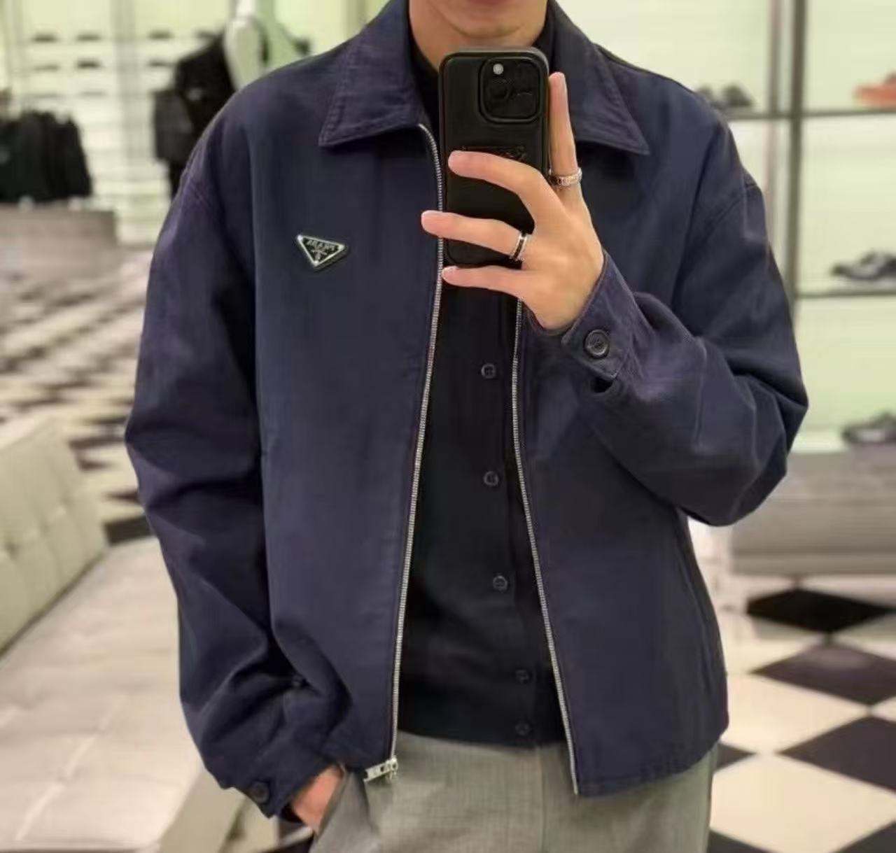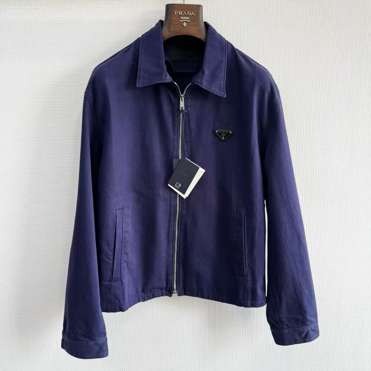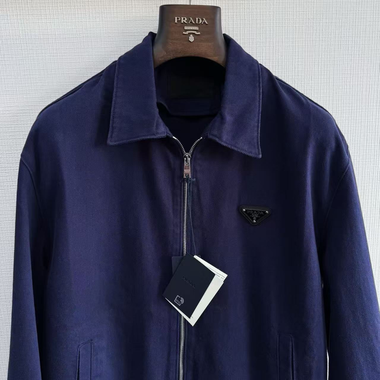 2025早秋新品 Prada 三角標做舊牛仔翻領外套 精品 精工