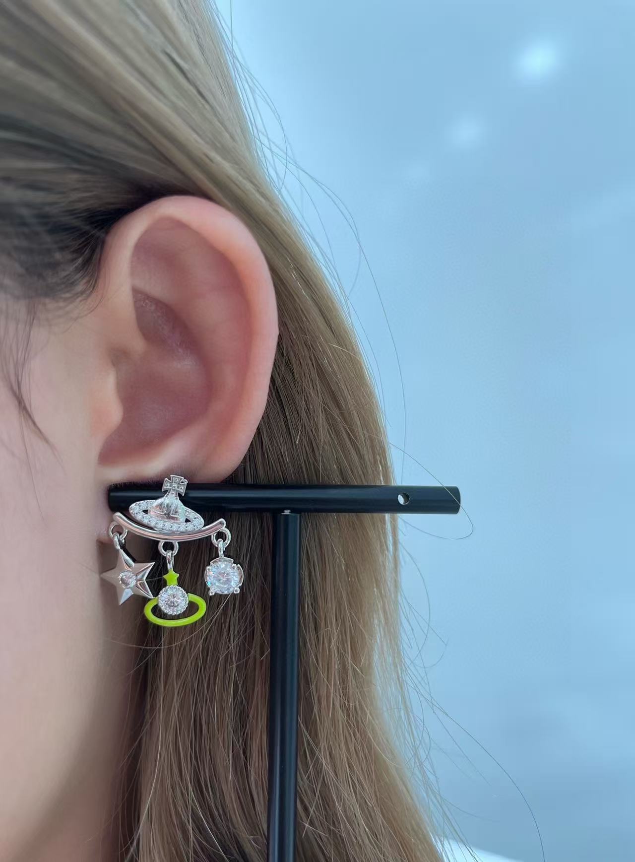這款牛油果綠珐琅土星水晶耳環,以銀色土星搭配清新牛油果綠,完美融合復古與現代感。這些設計靈感來自於奢侈品的藝術品味,讓每個細節都不容小覷。