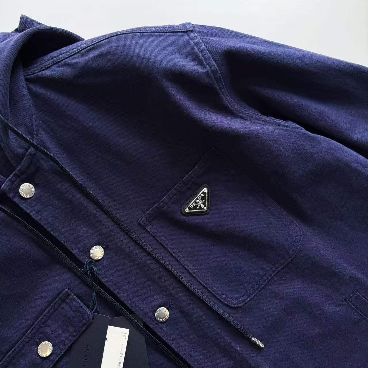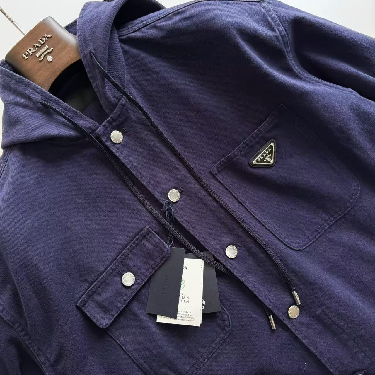 2025早秋新品 Prada 三角標做舊連帽牛仔夾克 精品 高仿