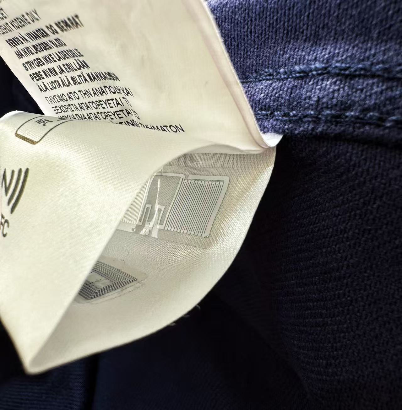 奈米精紡面料:外套使用了定制的奈米精紡牛仔布,以品藍色為底色,這種面料不僅手感舒適挺括,而且充滿了高級的質感。