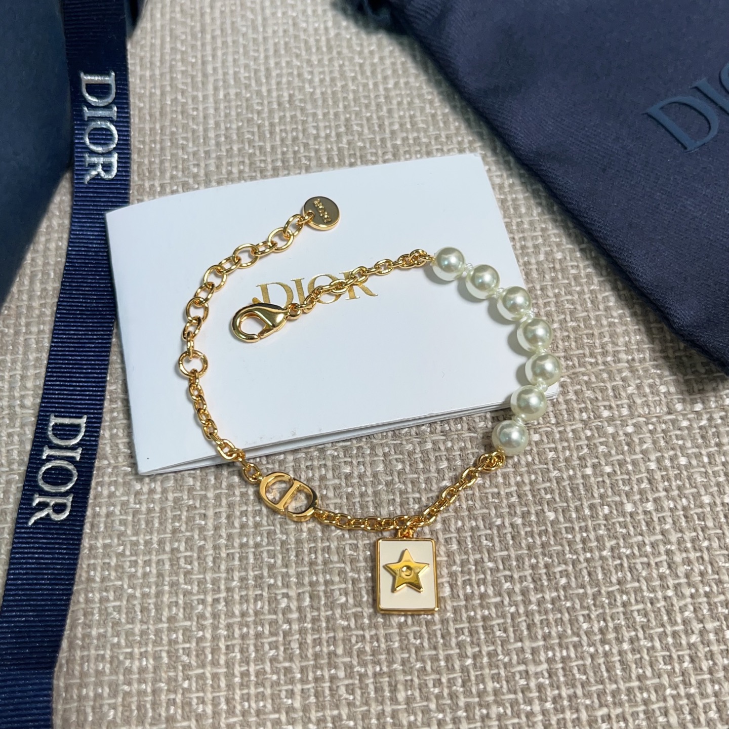 2025春夏新品 Dior 小白方牌珍珠手鍊 复刻 精品