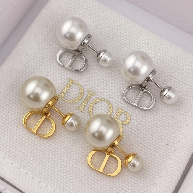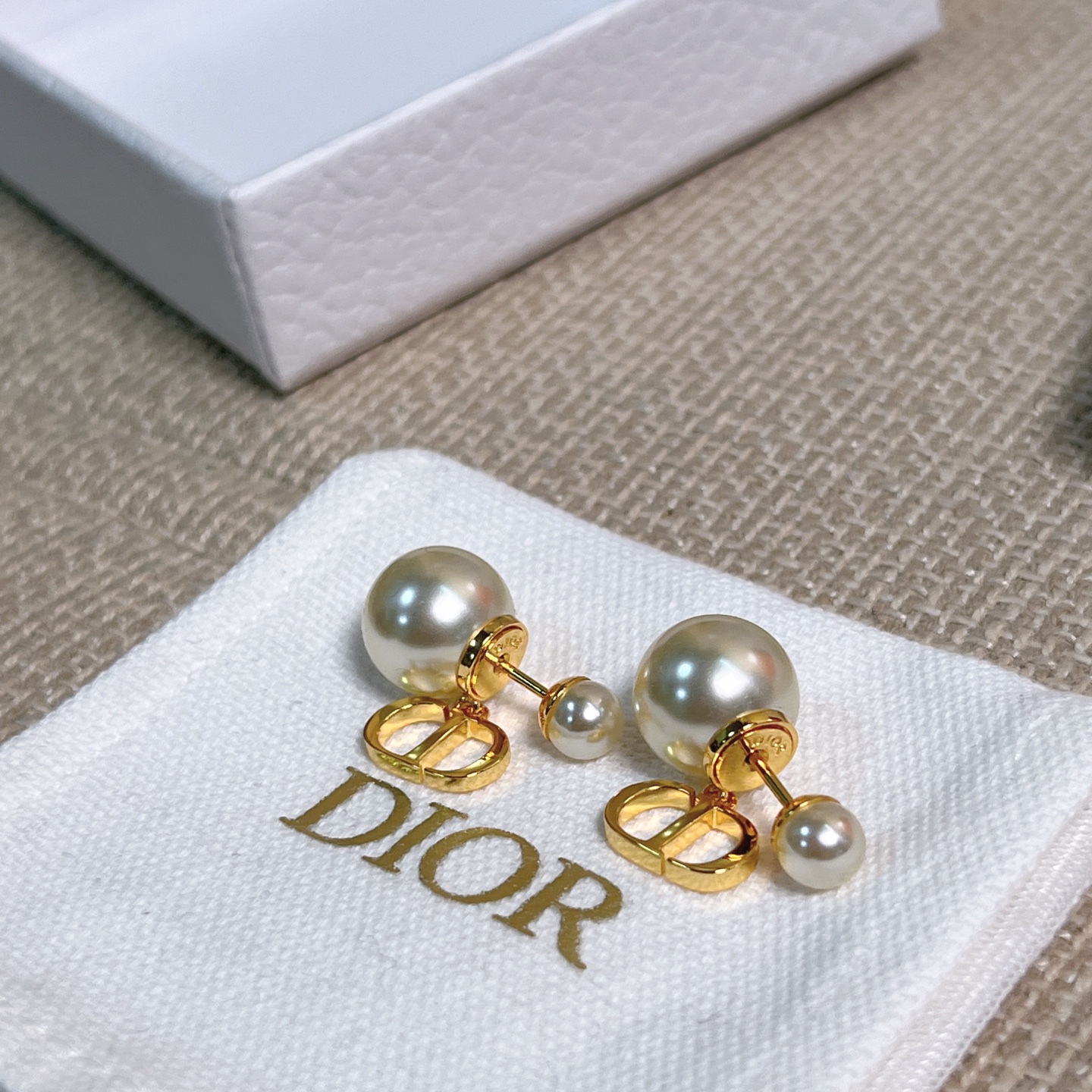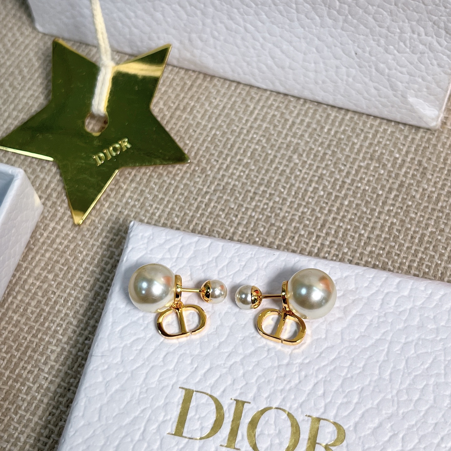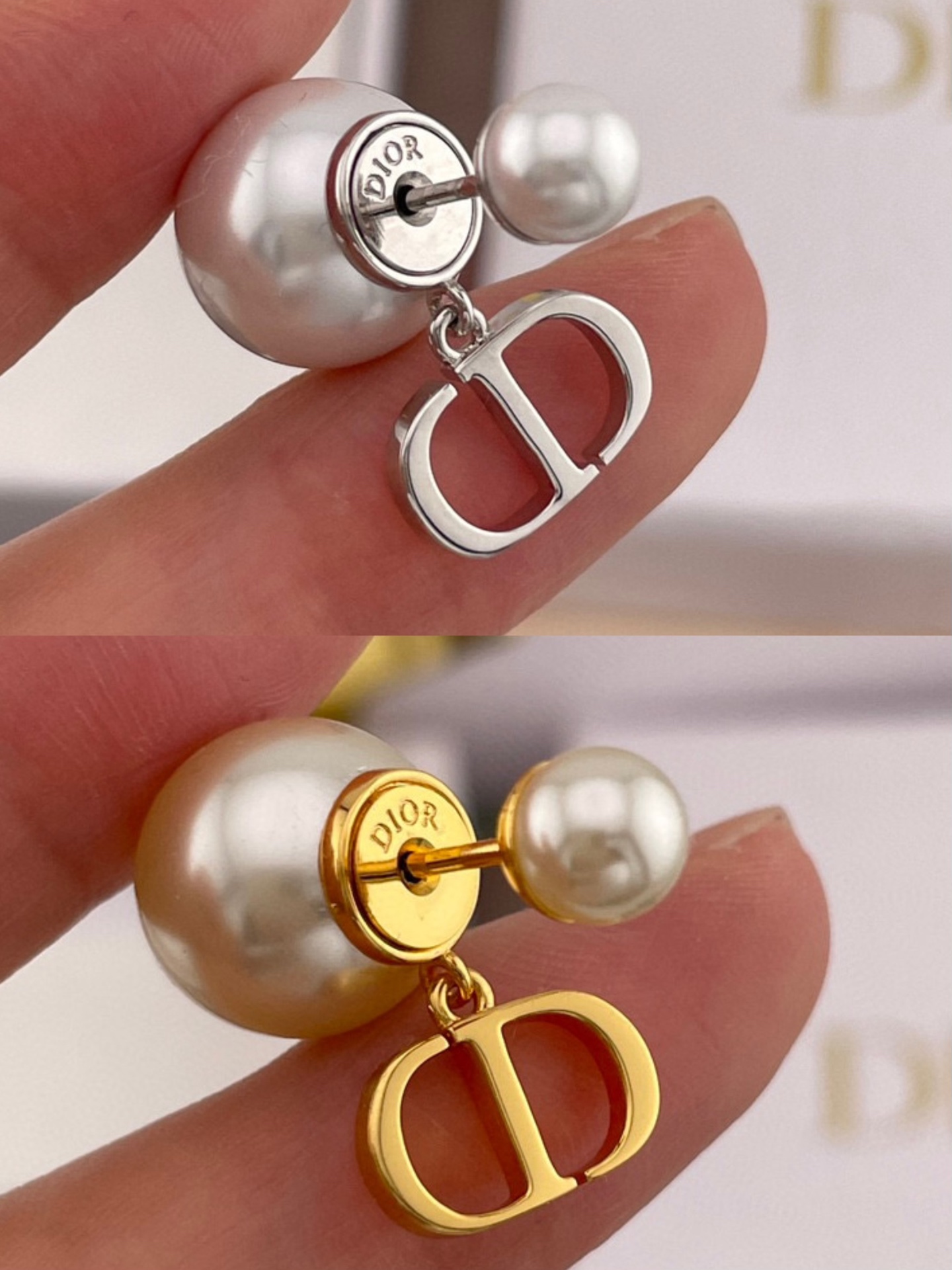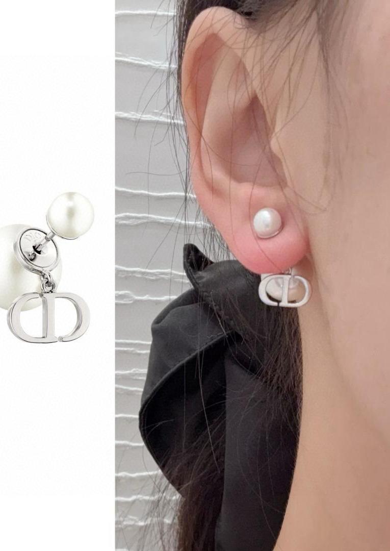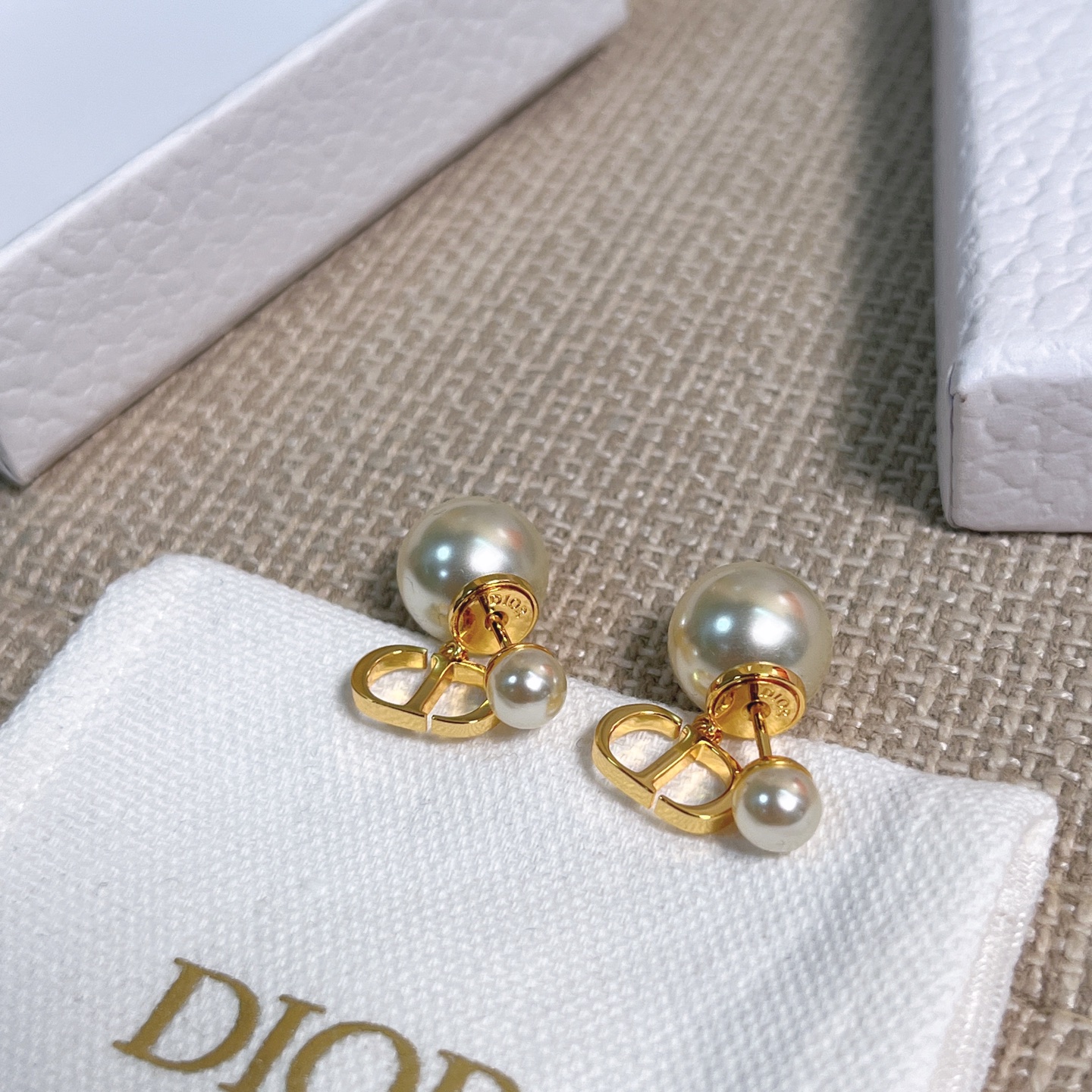 2025秋冬新品 Dior 無鑽小CD雙珠耳環 精品 高仿
