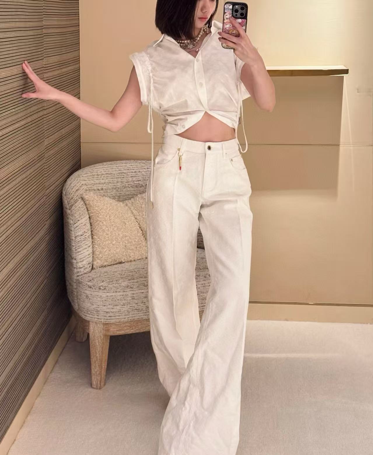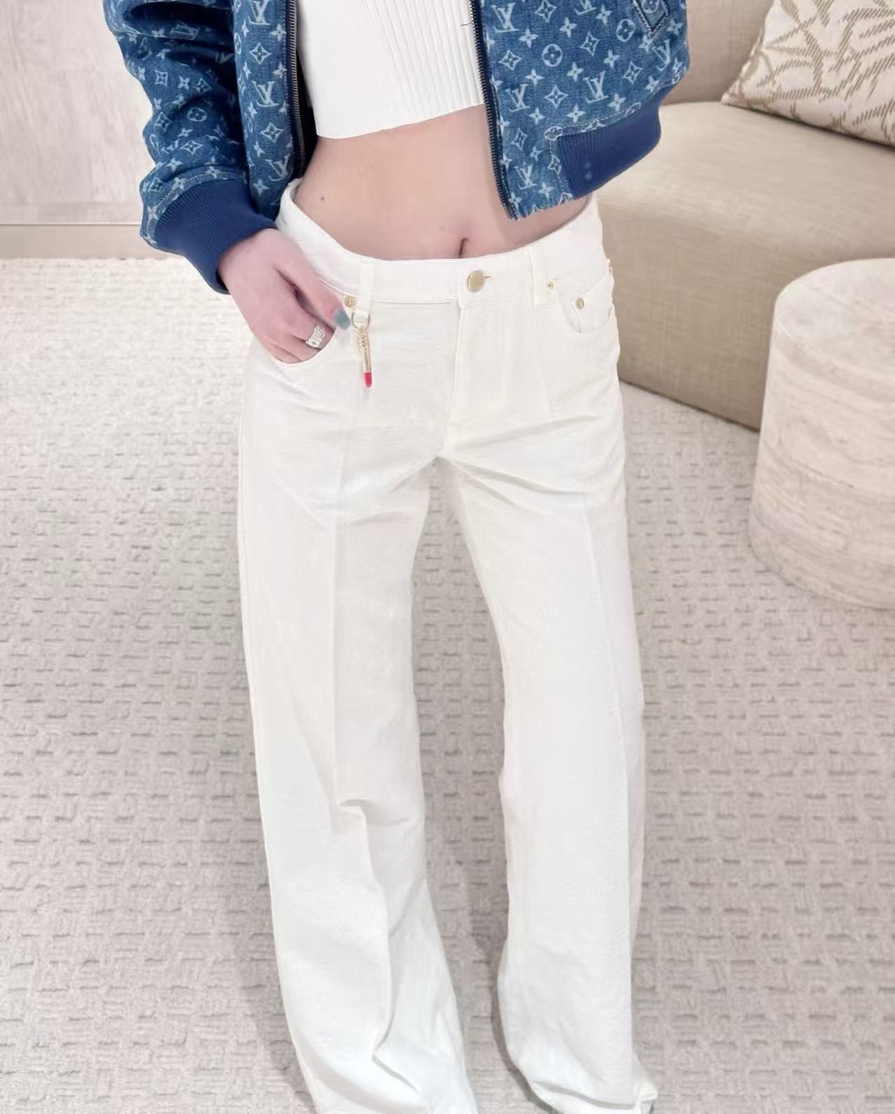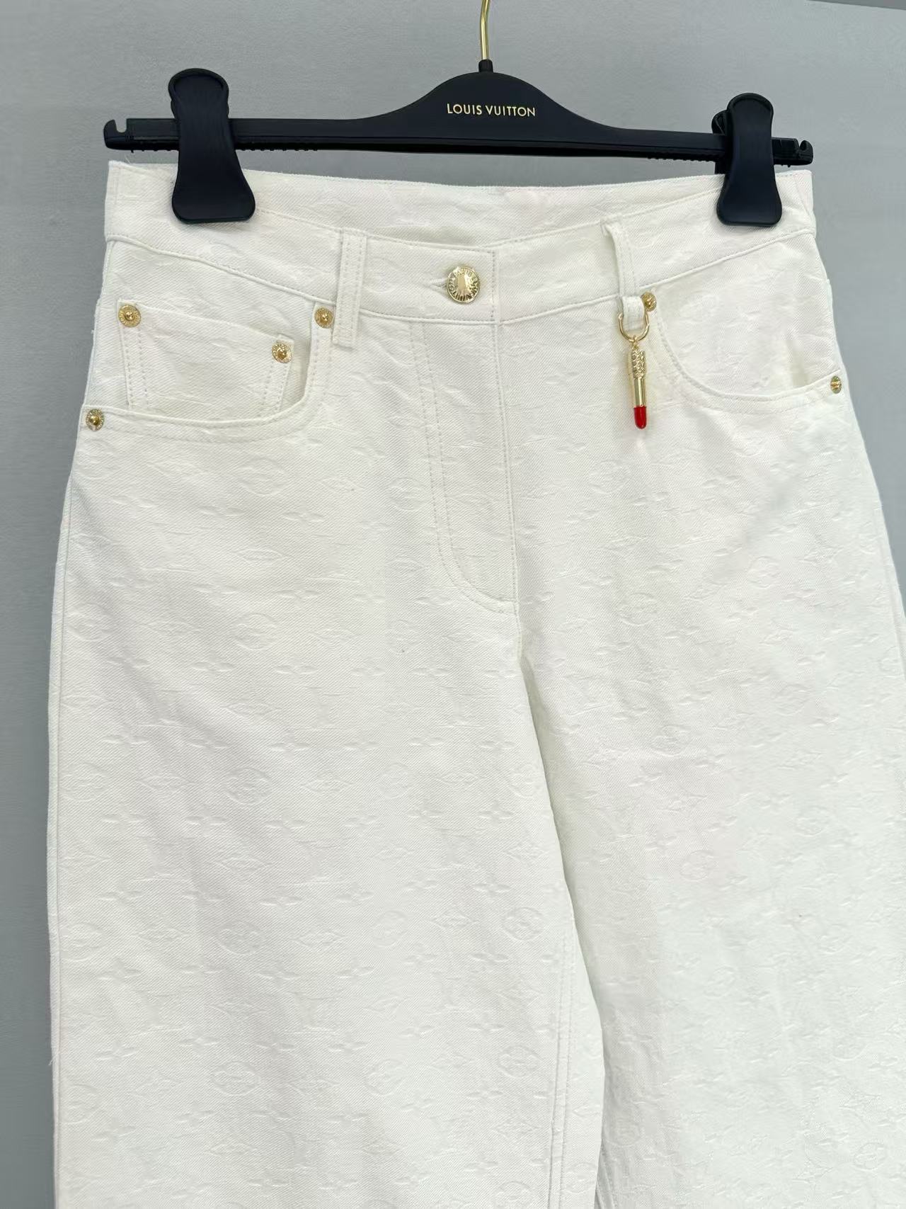 2025早秋 Louis Vuitton 白色滿版壓花牛仔褲 精品 高仿 ,低調奢華的時尚單品!
