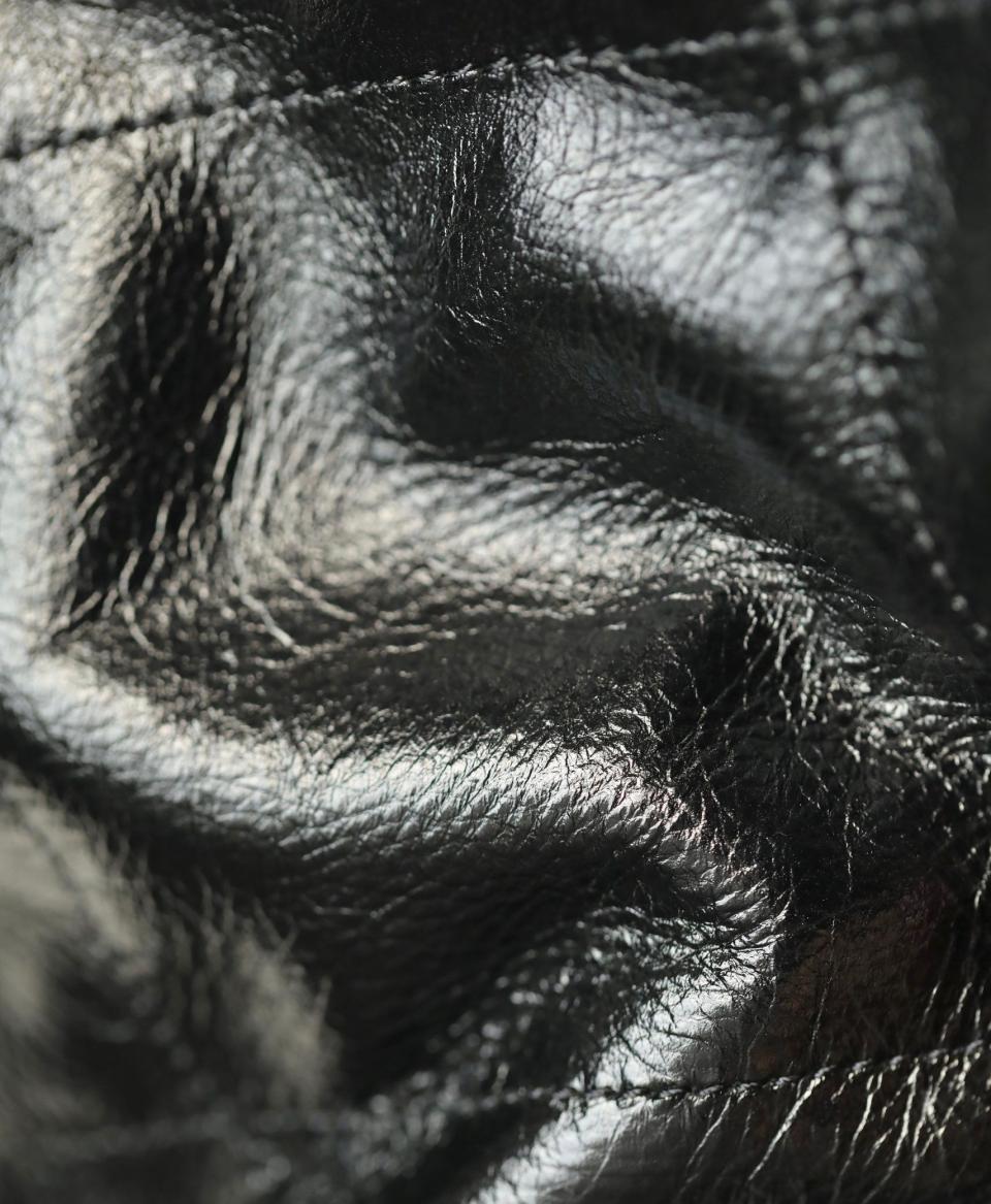 材質:摺皺亮面牛皮搭配復古五金