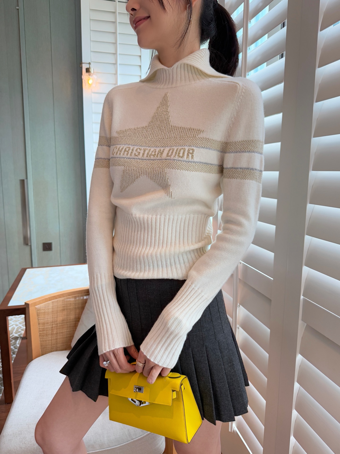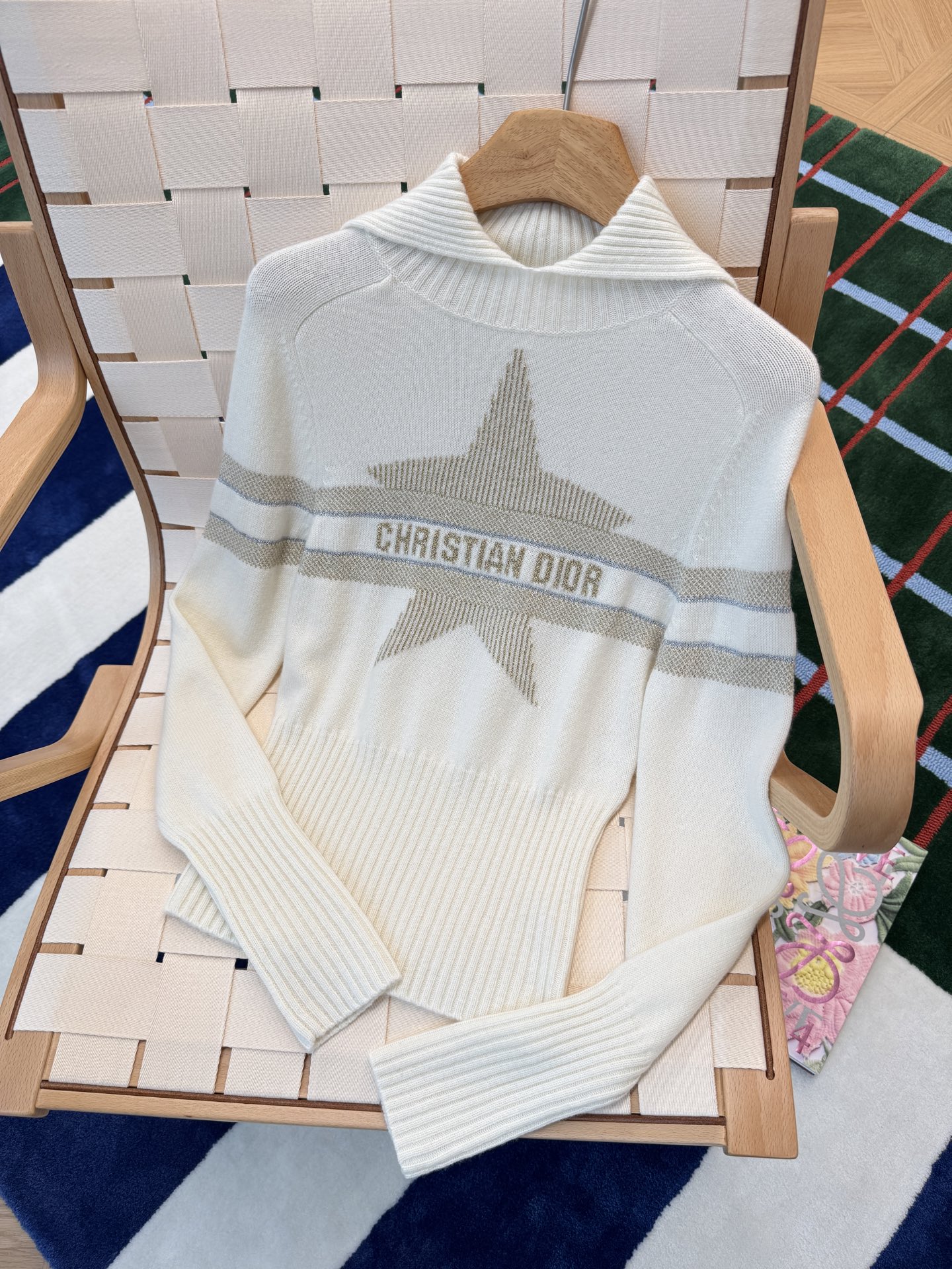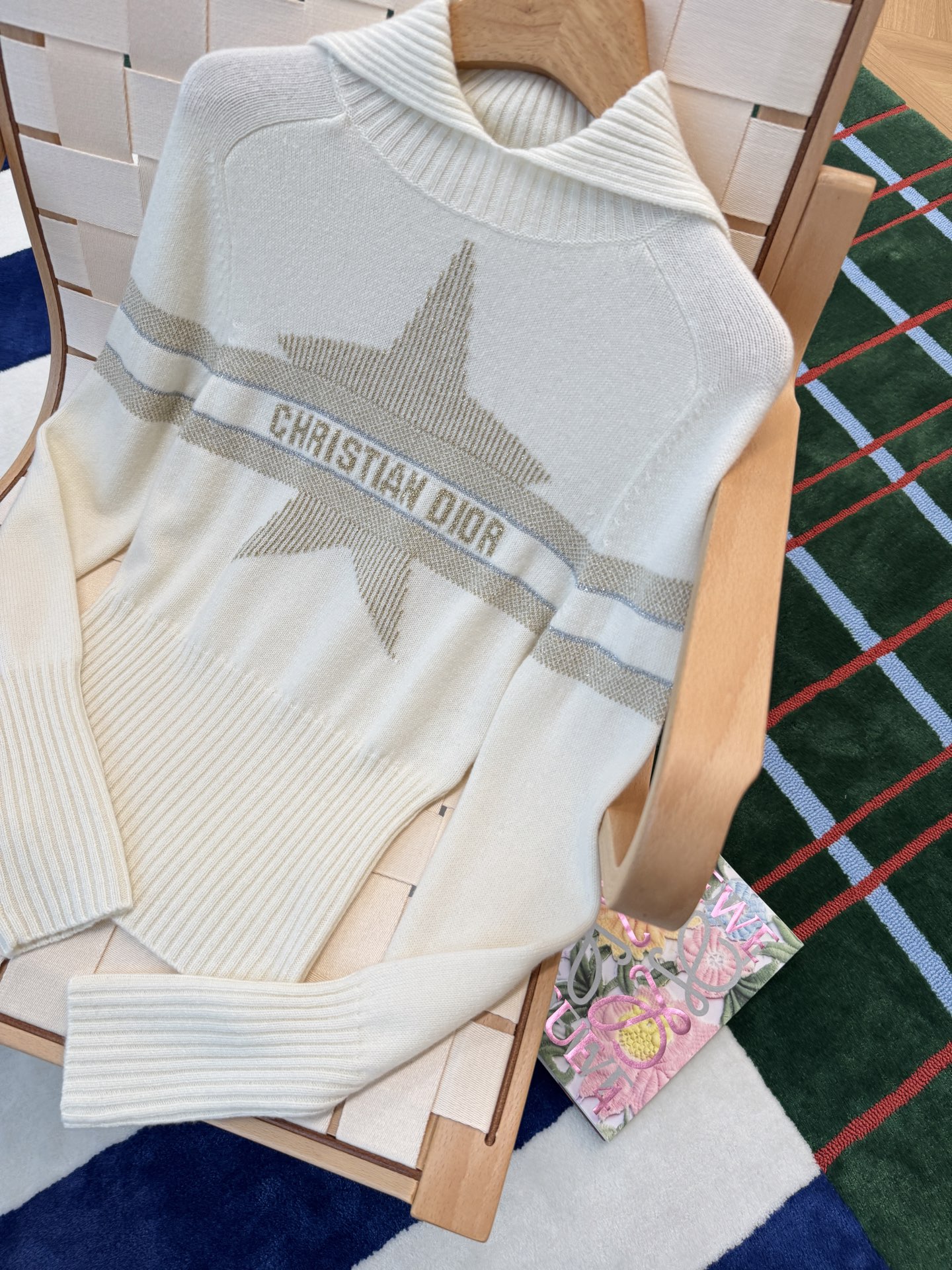 2025秋冬新品 Dior 滑雪系列小翻領五角星針織衫 精品, 時尚