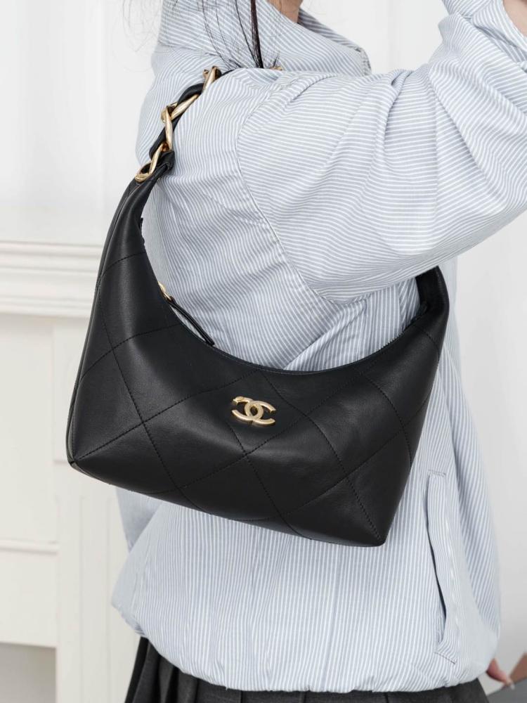 2025秋冬新品 Chanel 25k粗鏈條嬉皮𝐇𝐨𝐛𝐨腋下包 - 精品復刻