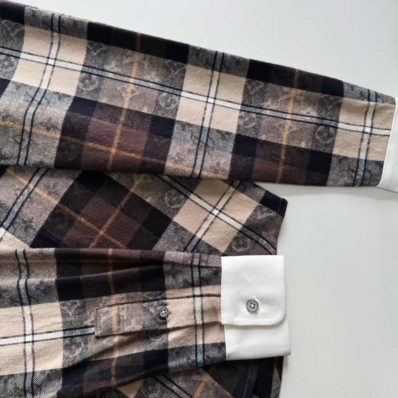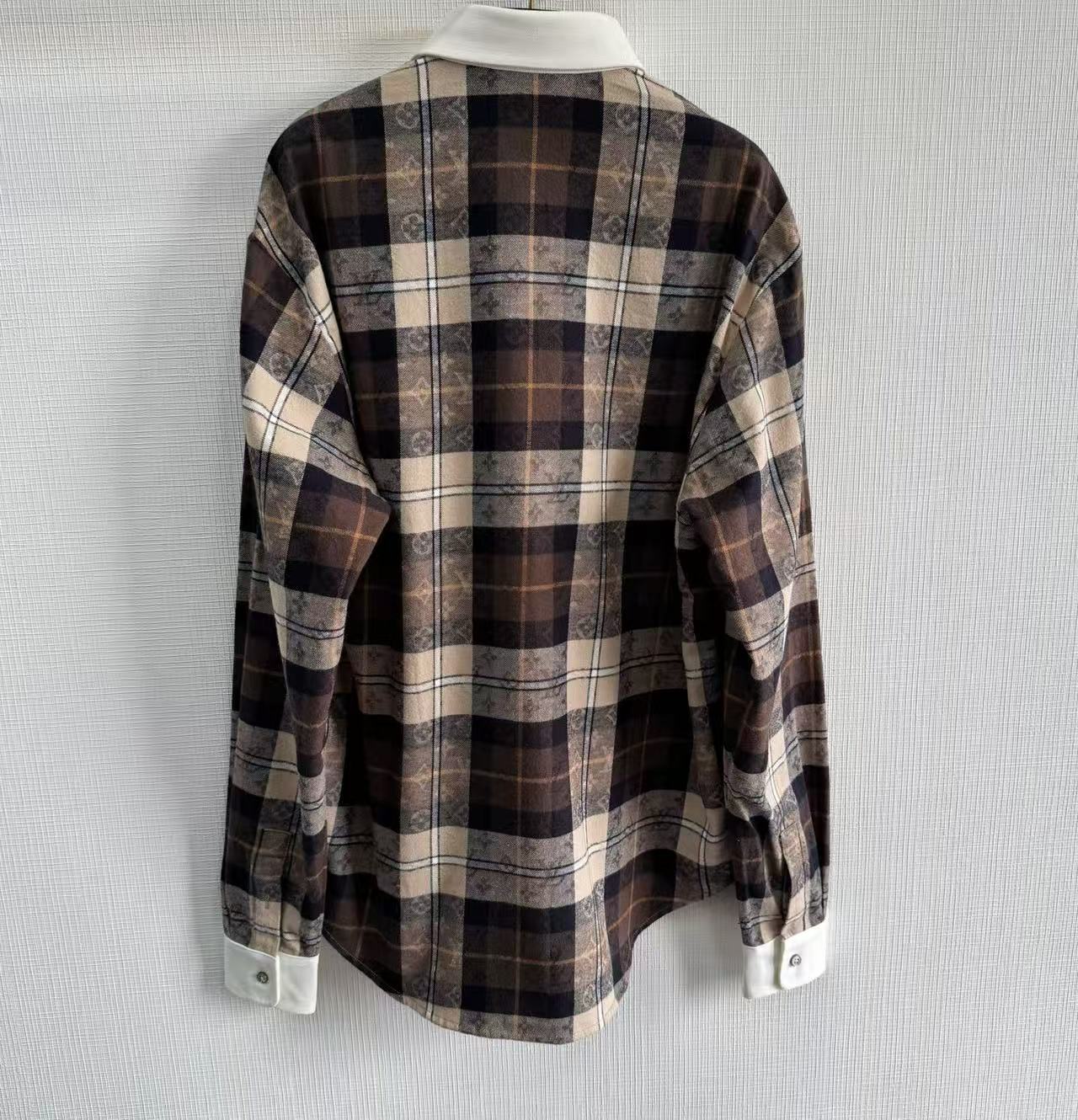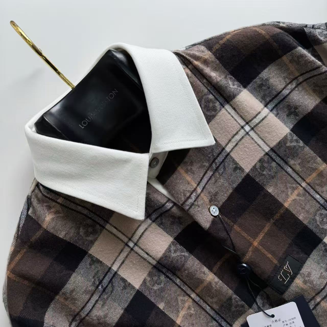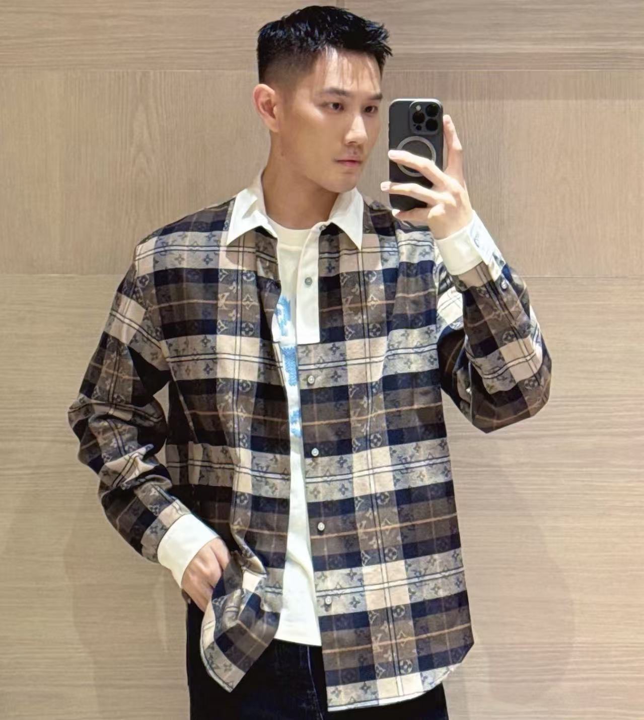 這款長袖襯衫以直筒翻領寬鬆版型為基調,線條俐落、結構感強,輕鬆修飾身形比例。此款襯衫不僅是奢侈品的象徵,也是高仿作品中的佼佼者,讓您在時尚圈中脫穎而出。Monogram格紋提花是最大亮點,全身對格對紋,紅外線激光定位+人工手工裁剪,每塊裁片嚴格對版,確保圖案精準無誤、層次分明。合金思孔包扣開模定制,開合間散發高級光澤。無論單穿還是內搭T恤,這件襯衫都能為你的造型注入滿滿的格紋層次風情!