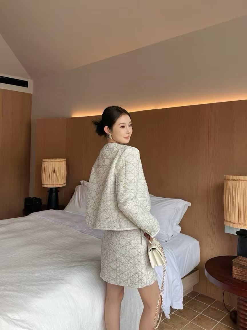 選用全定制的顆粒感粗花呢材質,紋理立體清晰,手感細緻有份量。立體剪裁精準對格,結合 D家招牌的工藝細節,每一處都完美到位。這種奢侈品的質感讓人不禁想起高仿甚至復刻版的精品。