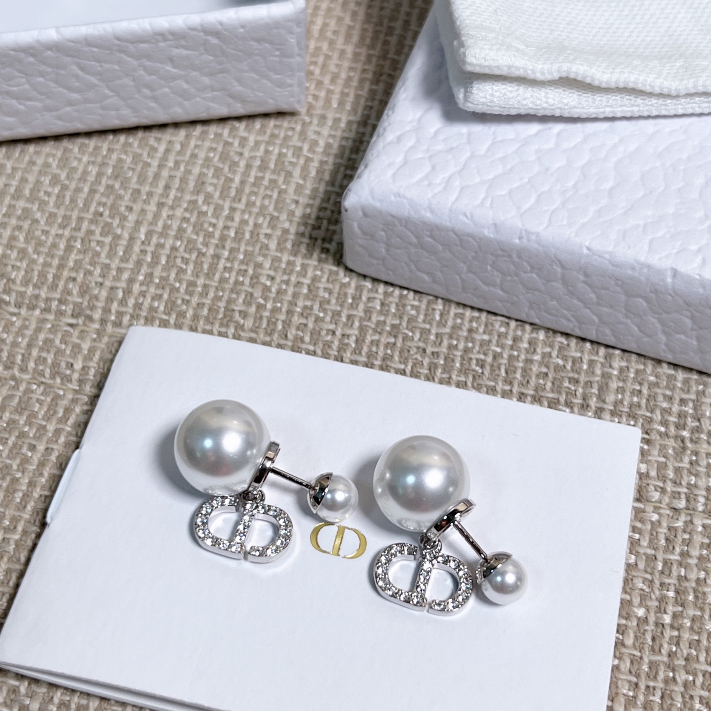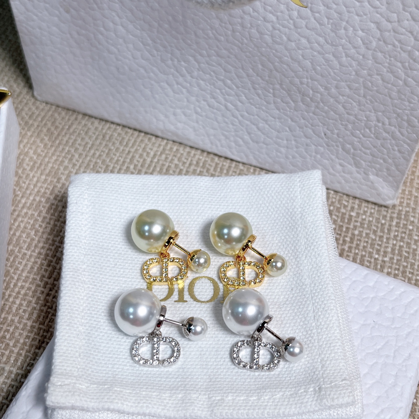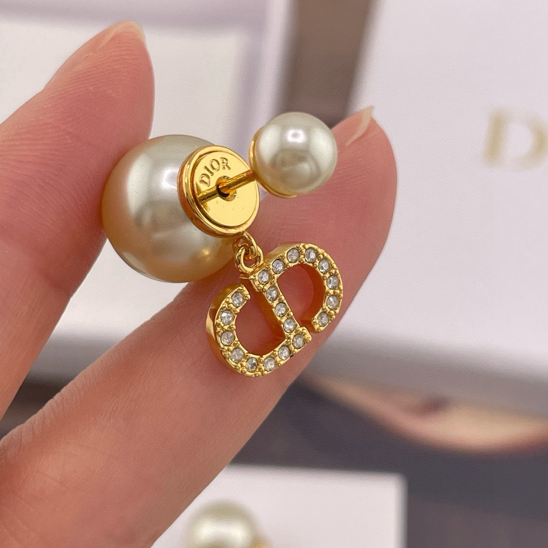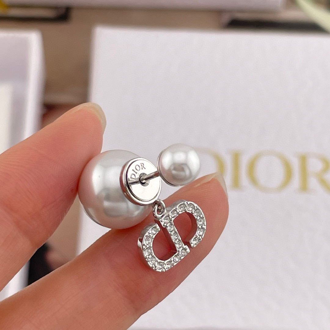 2025早秋新品 Dior mini橫向雙珠CD耳釘 (奢侈品, 超A)
