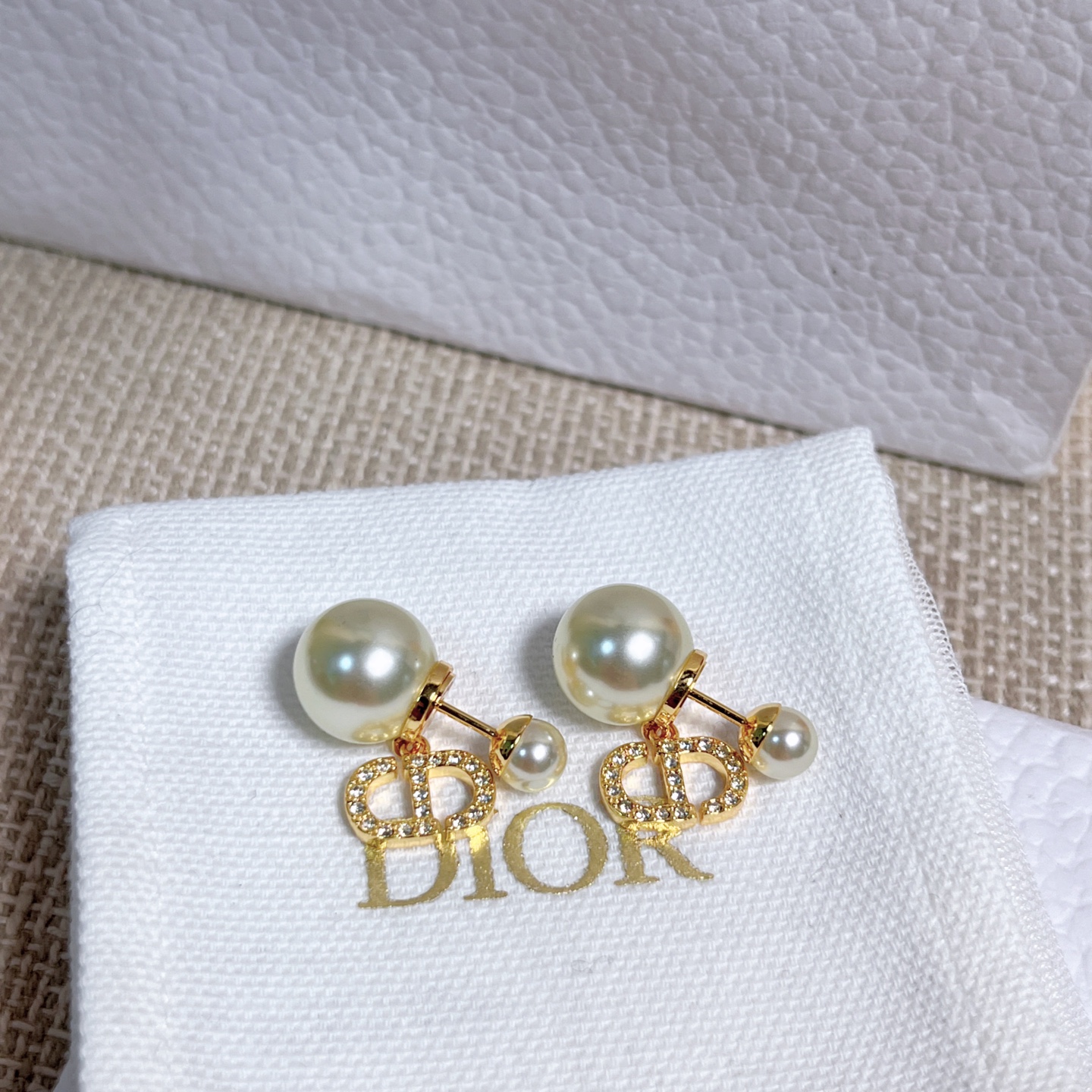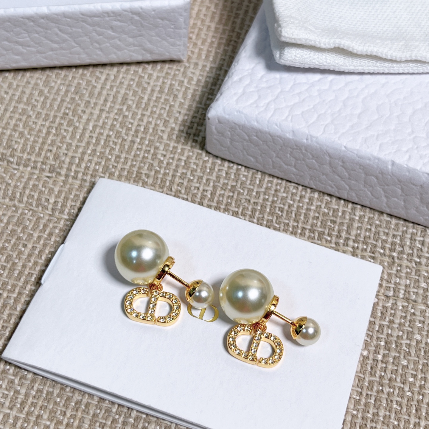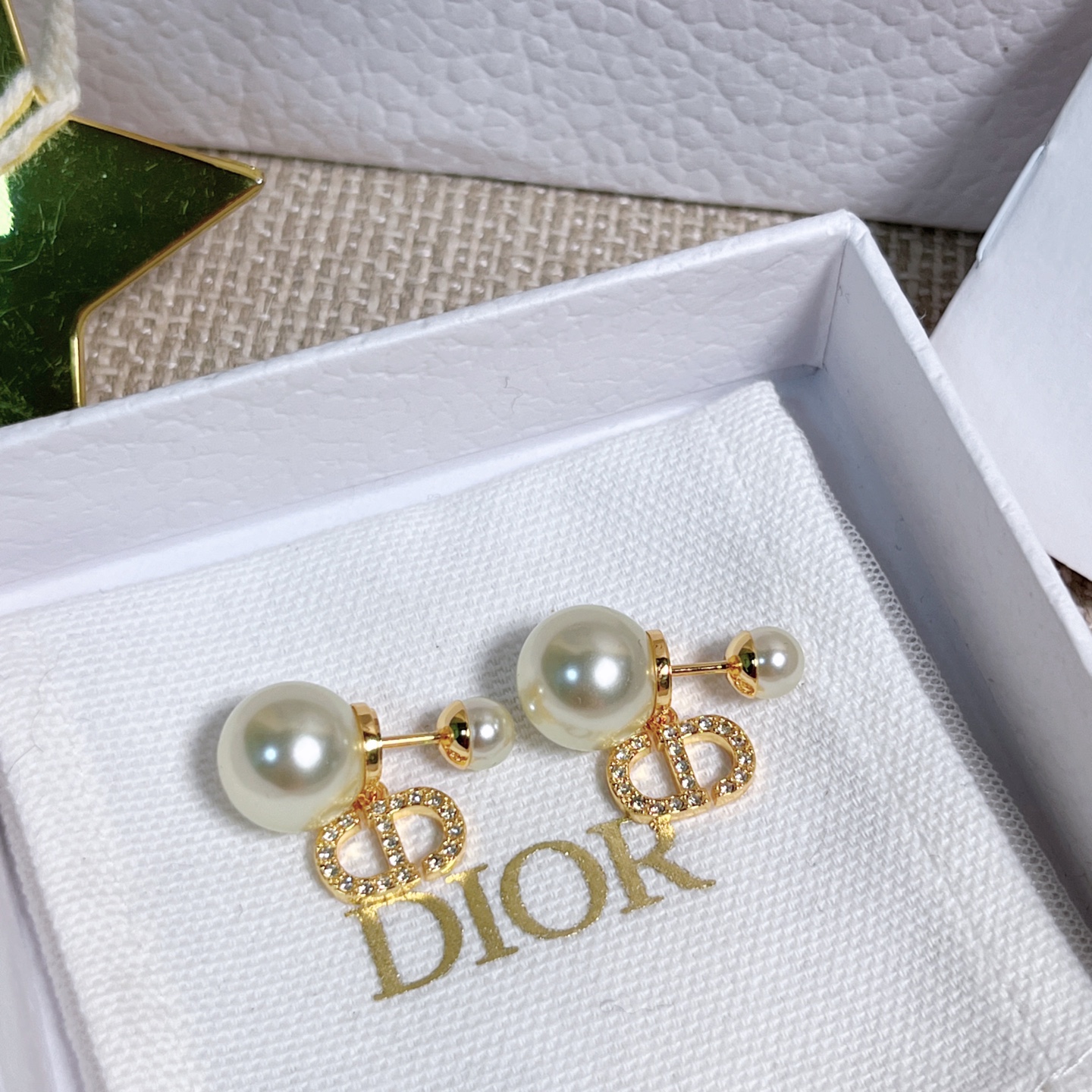 2025早秋新品 Dior mini橫向雙珠CD耳釘 (奢侈品, 超A)