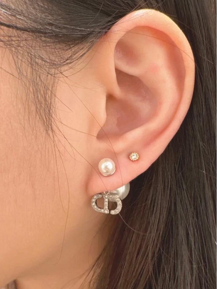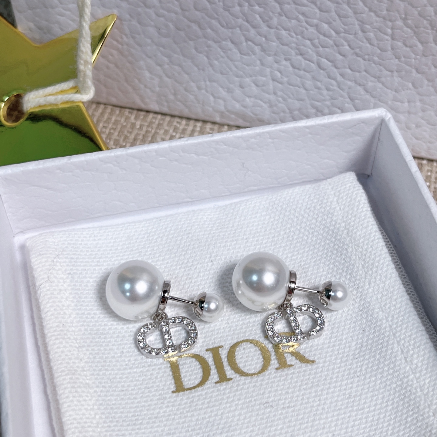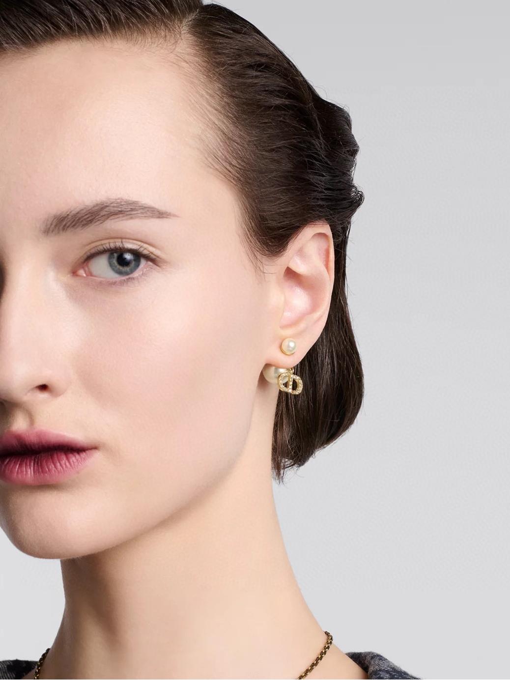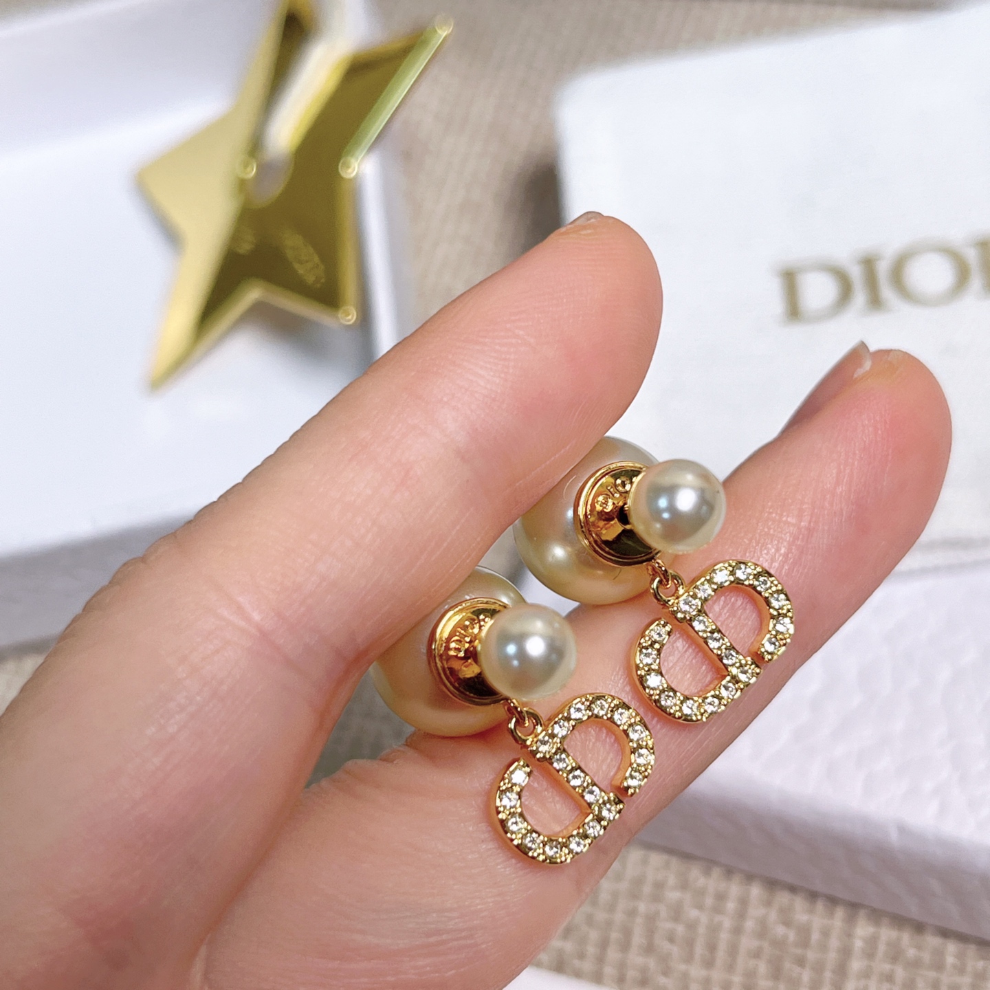 2025早秋新品 Dior mini橫向雙珠CD耳釘 (奢侈品, 超A)