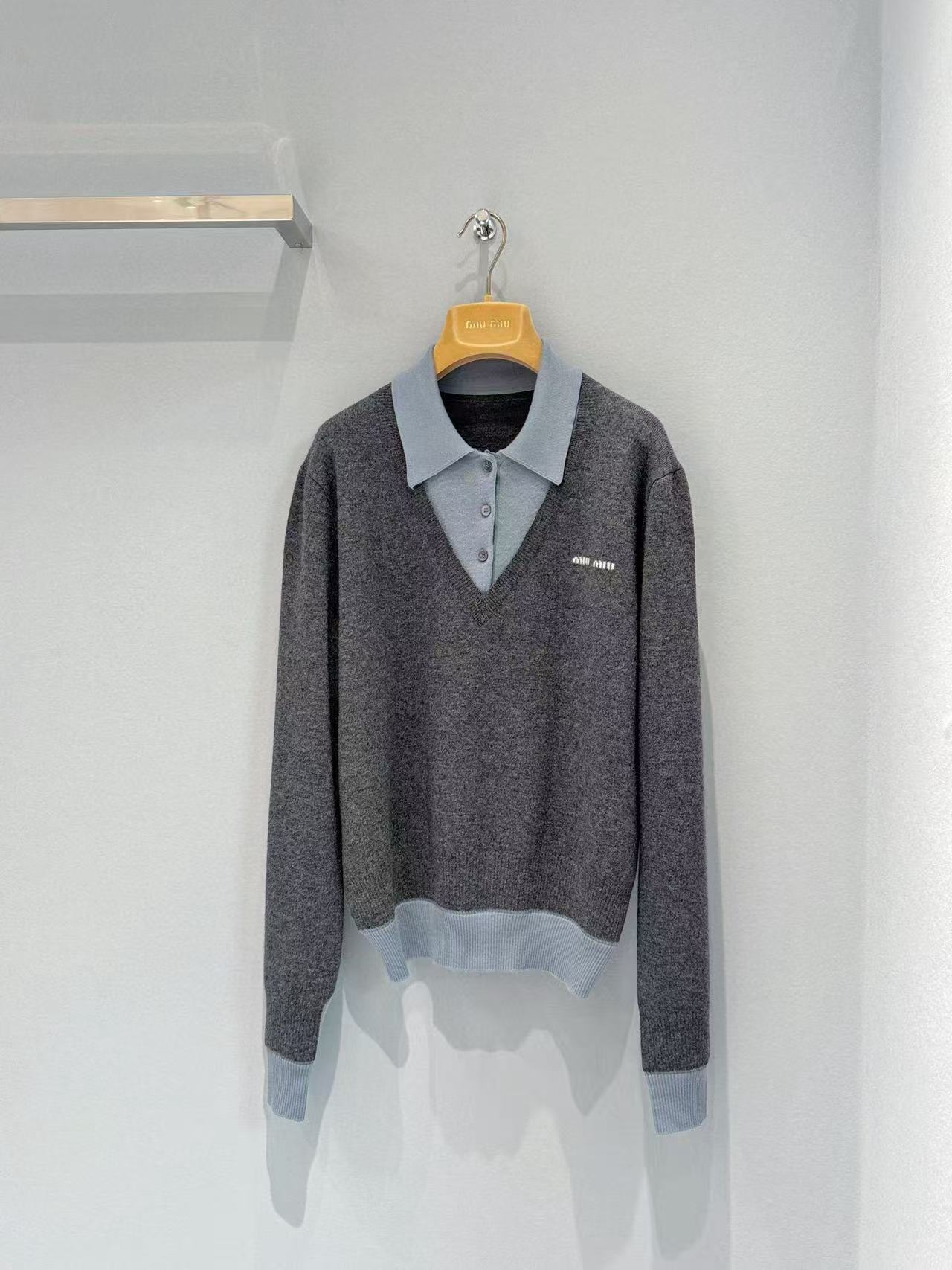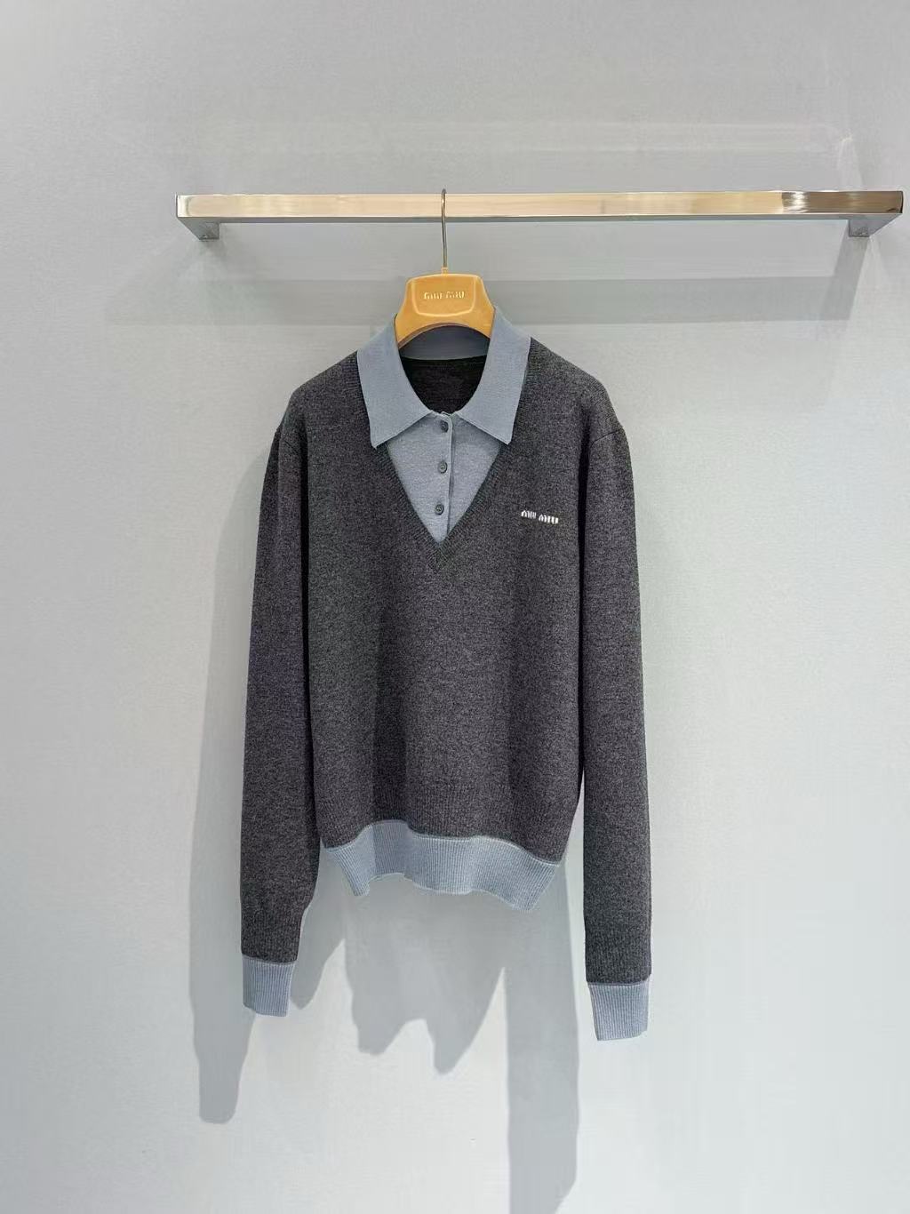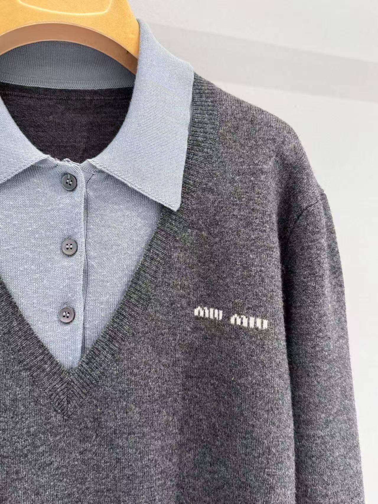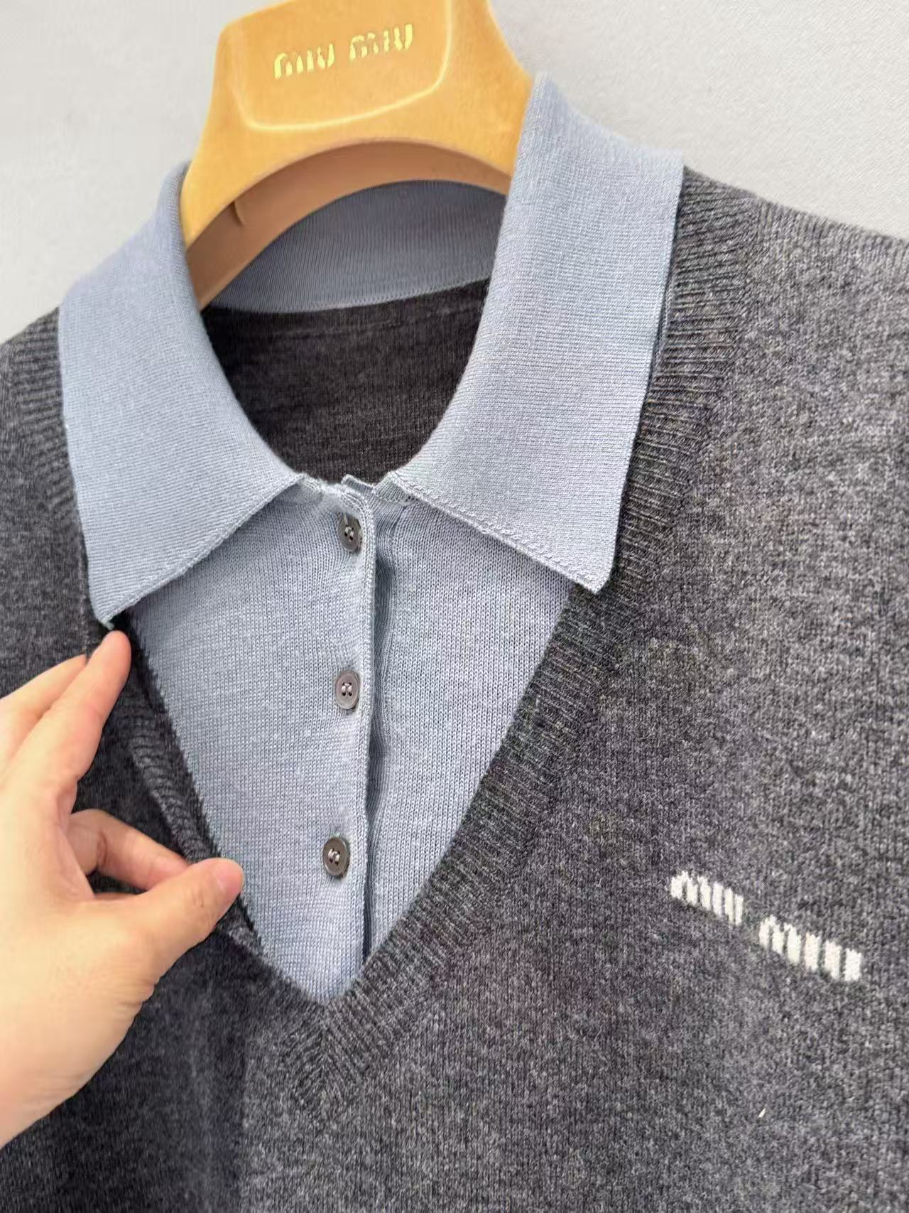 2025早秋 MIU MIU 假兩件撞色Polo針織衫 精品 時尚 | 慵懶時髦感!