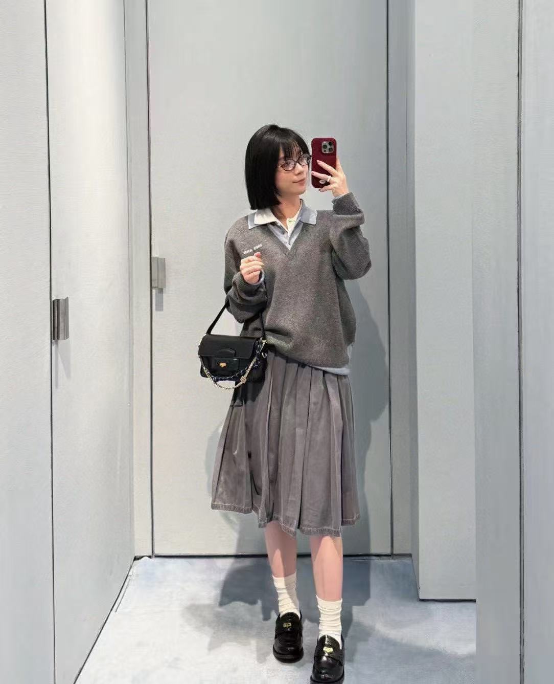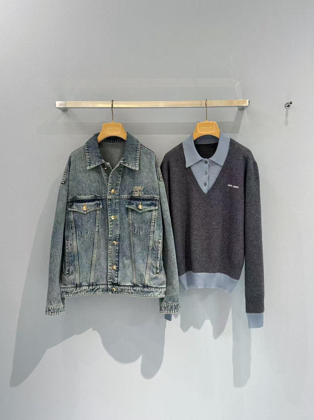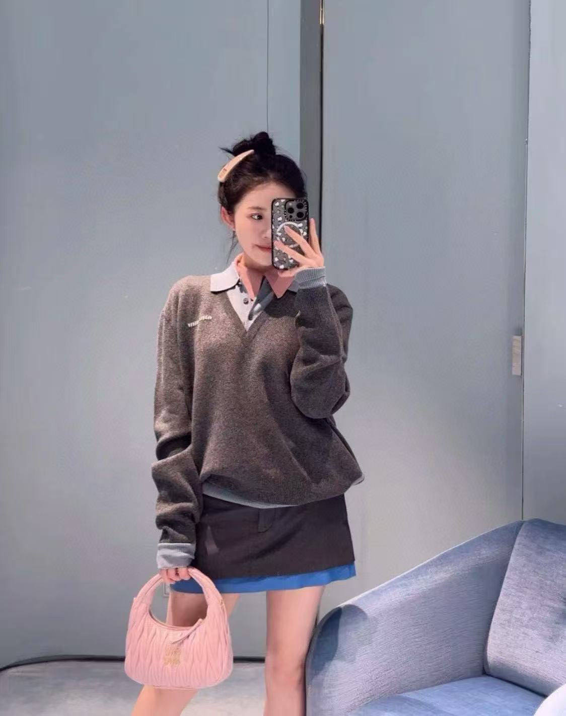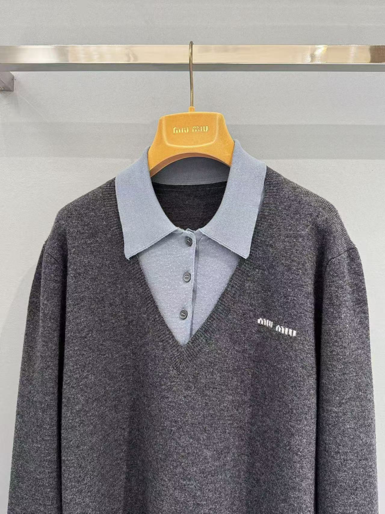 2025早秋 MIU MIU 假兩件撞色Polo針織衫 精品 時尚 | 慵懶時髦感!