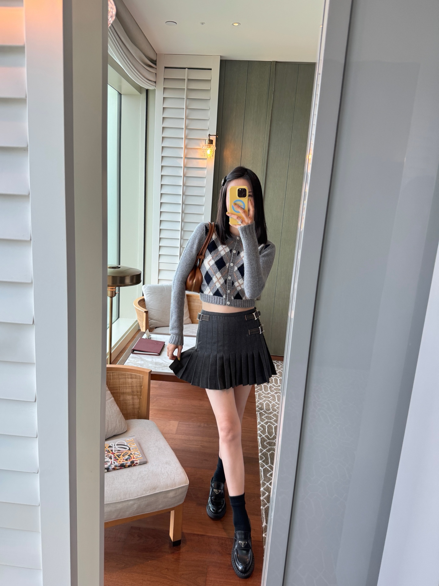 ✔︎ 冬天可搭針織衫與厚底鞋,保暖又時髦。這條短裙真的是奢侈品與高仿的完美平衡。