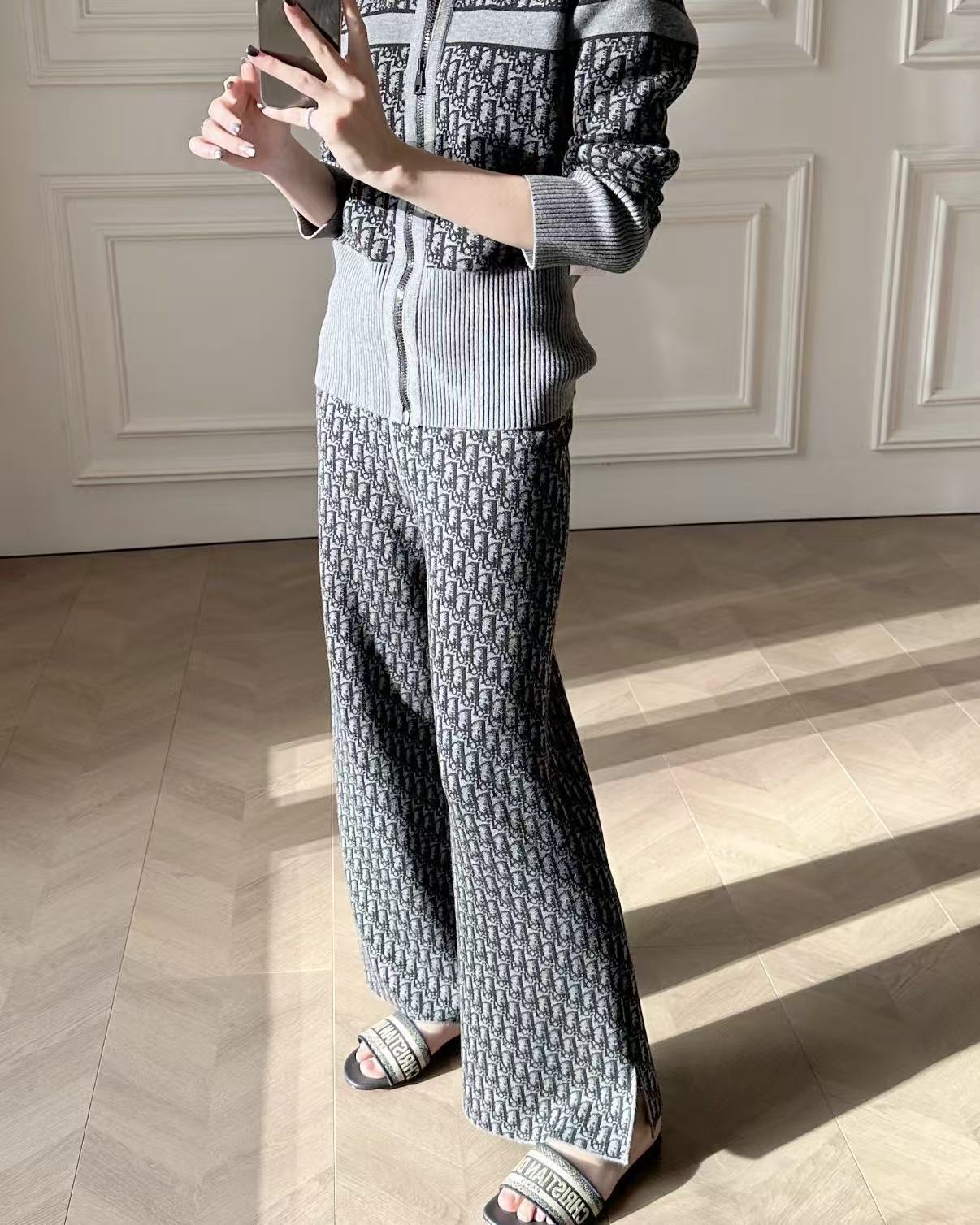 2025早秋新品 Dior 老花雙面穿開衩休閒褲 高仿 精品