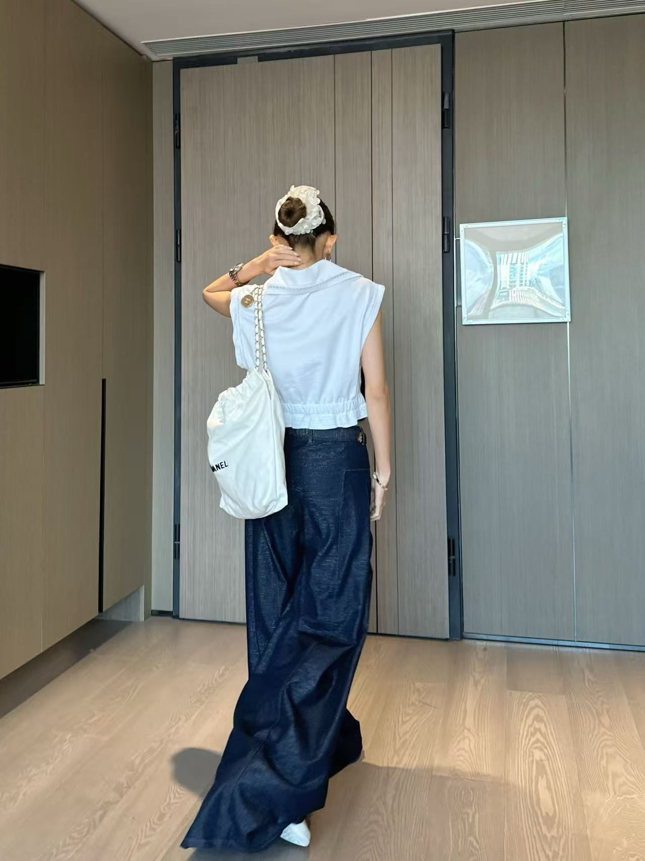 這件無袖上衣簡直是為了優雅而生!無論是搭配輕薄的長裙去海邊散步,或是搭配短褲去享受夏日午後,它都能讓你輕鬆穿出那種優雅又慵懶的氛圍。