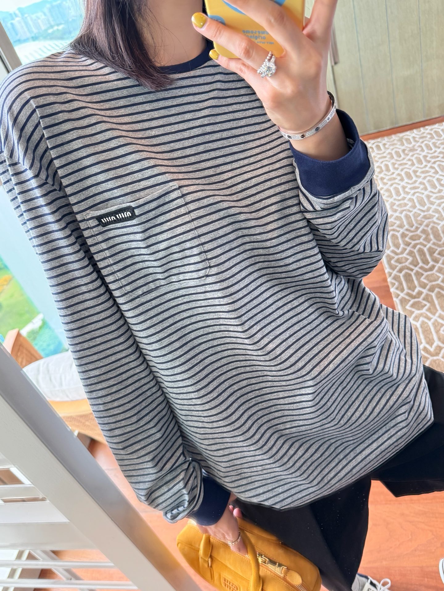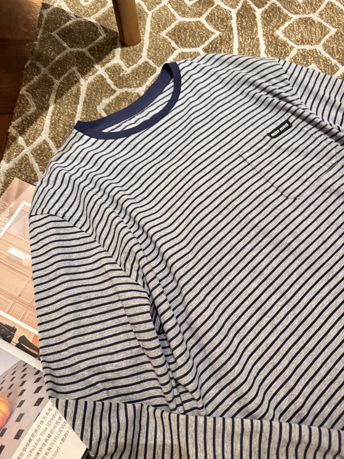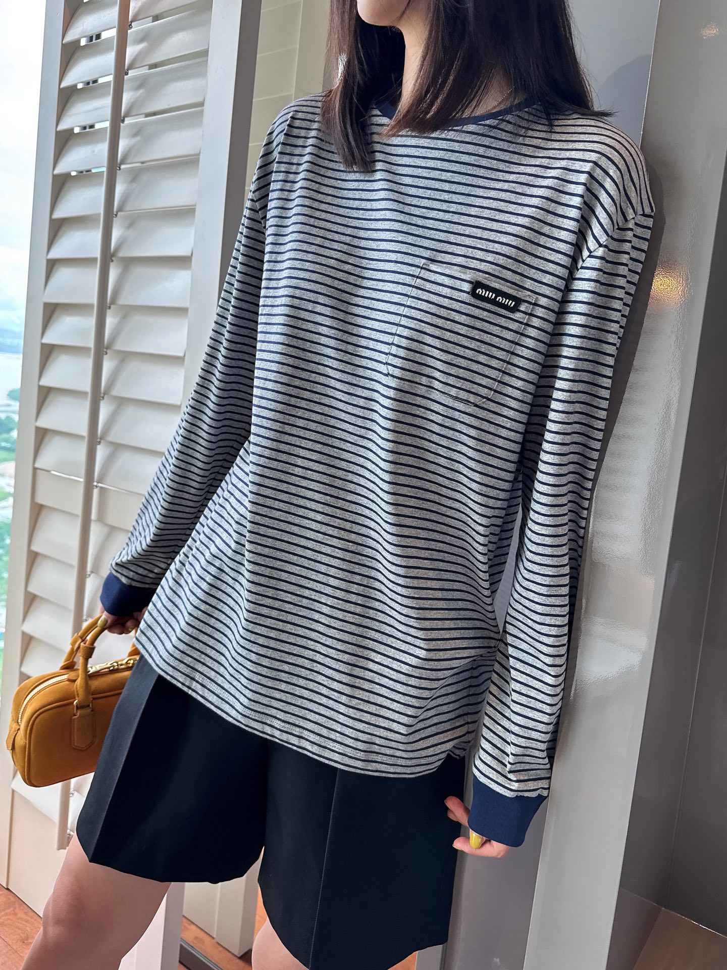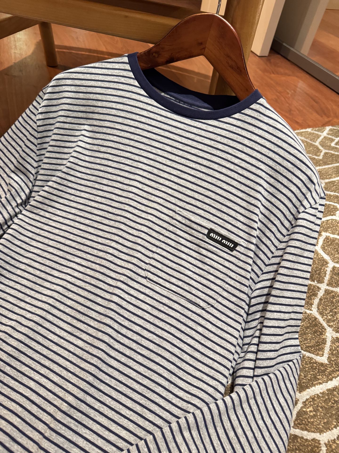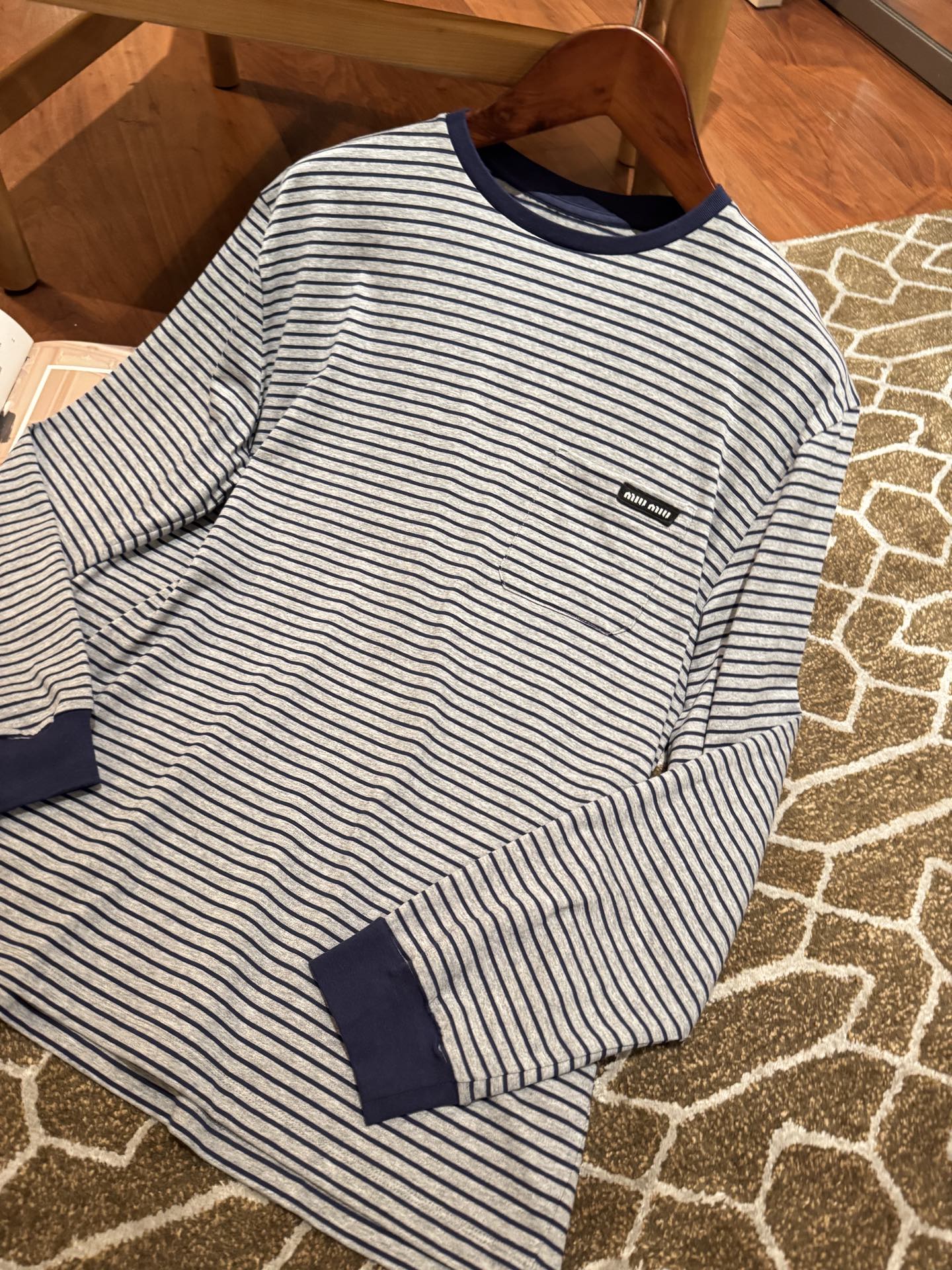 2025秋冬新品 MIU MIU 藍灰色限定款條紋長袖 精品 時尚