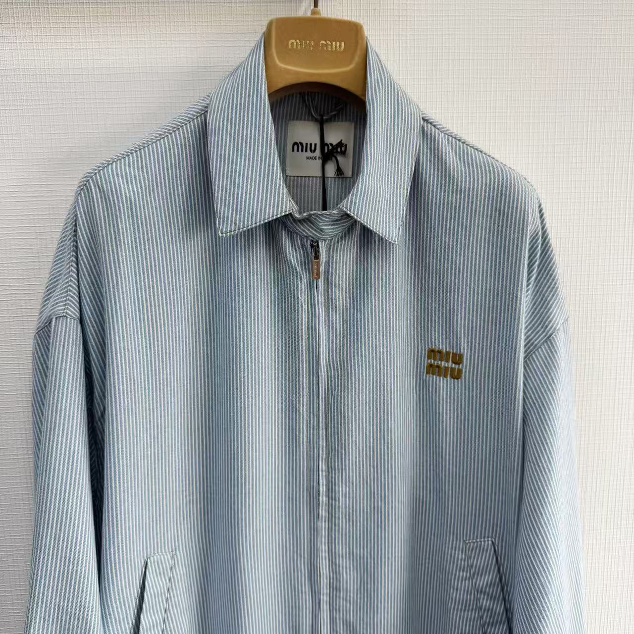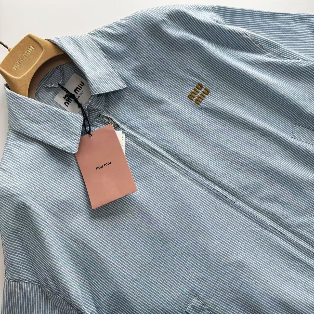 2025早秋新品 MIU MIU 豎條紋翻領夾克 精品 時尚