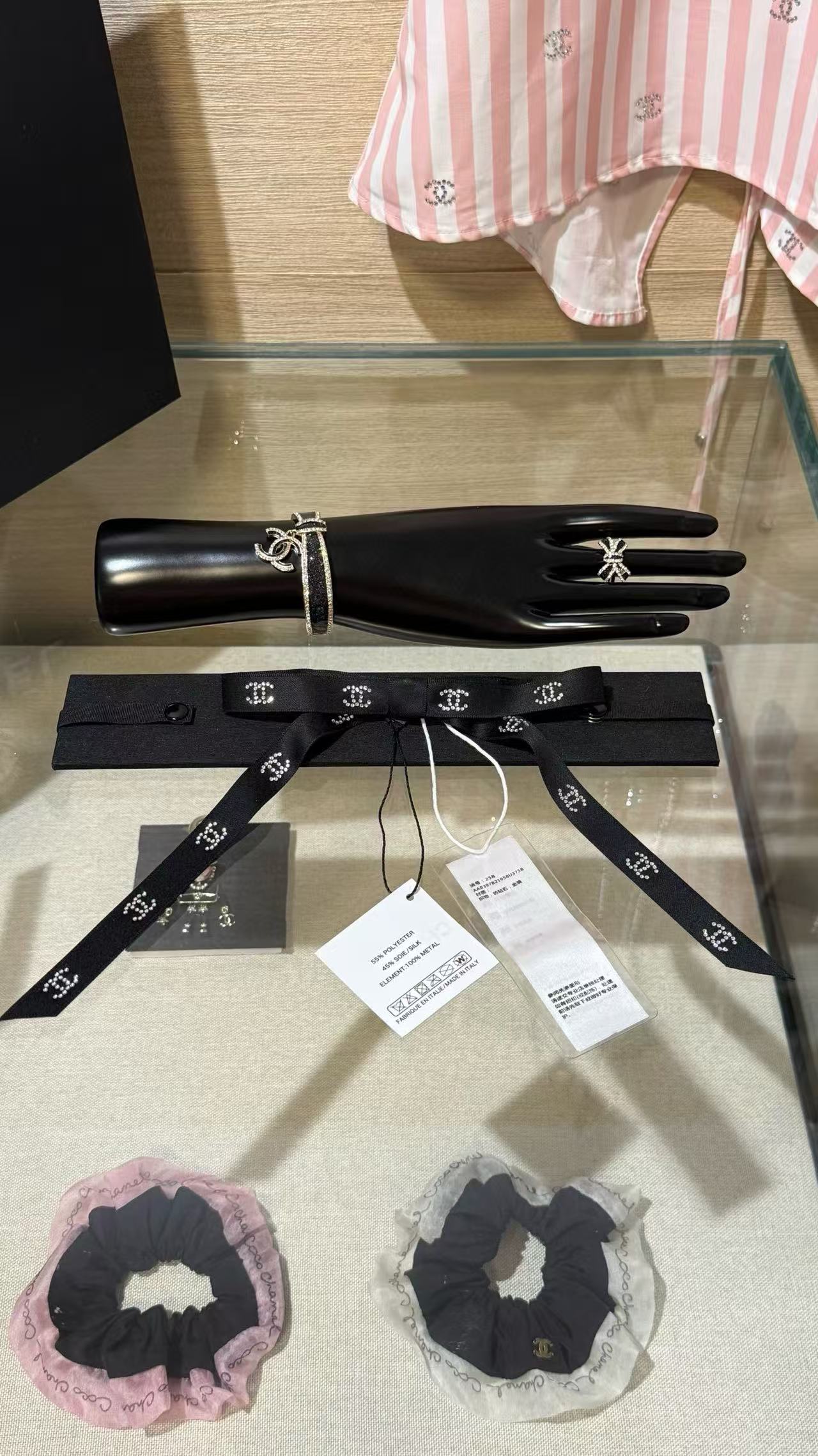 2025早秋 Chanel 滿鑽小雙C緞帶蝴蝶結髮夾 高仿 精工