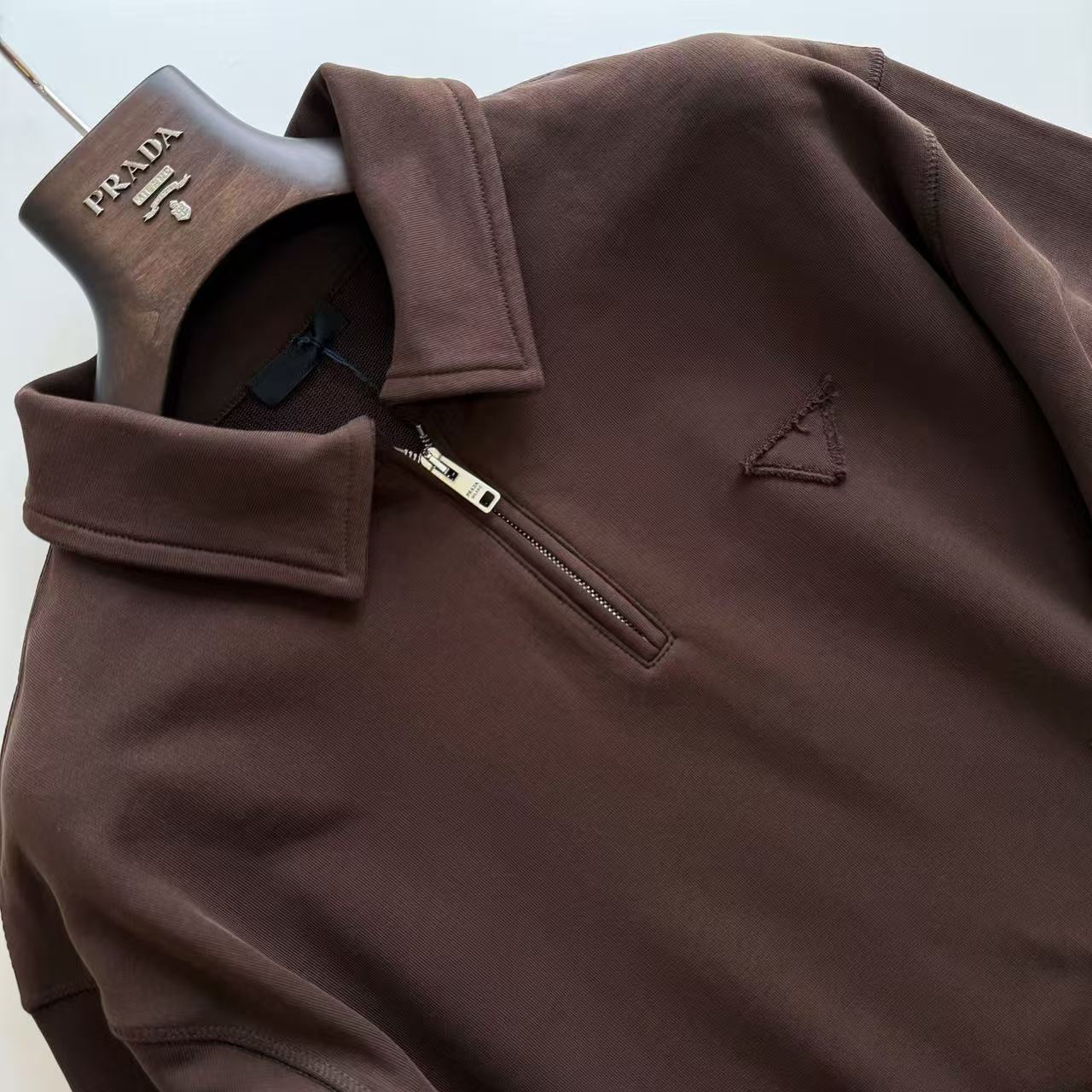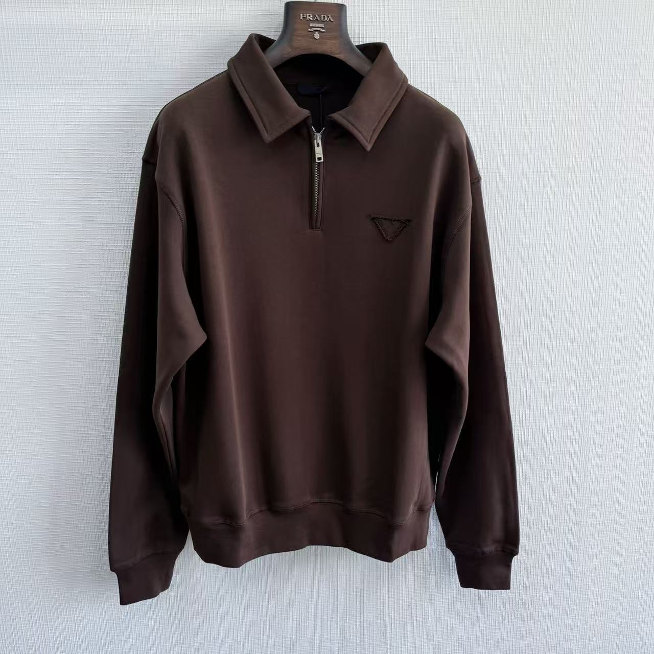 2025早秋新品 Prada 三角徽標半拉鍊翻領衛衣 精品 高仿